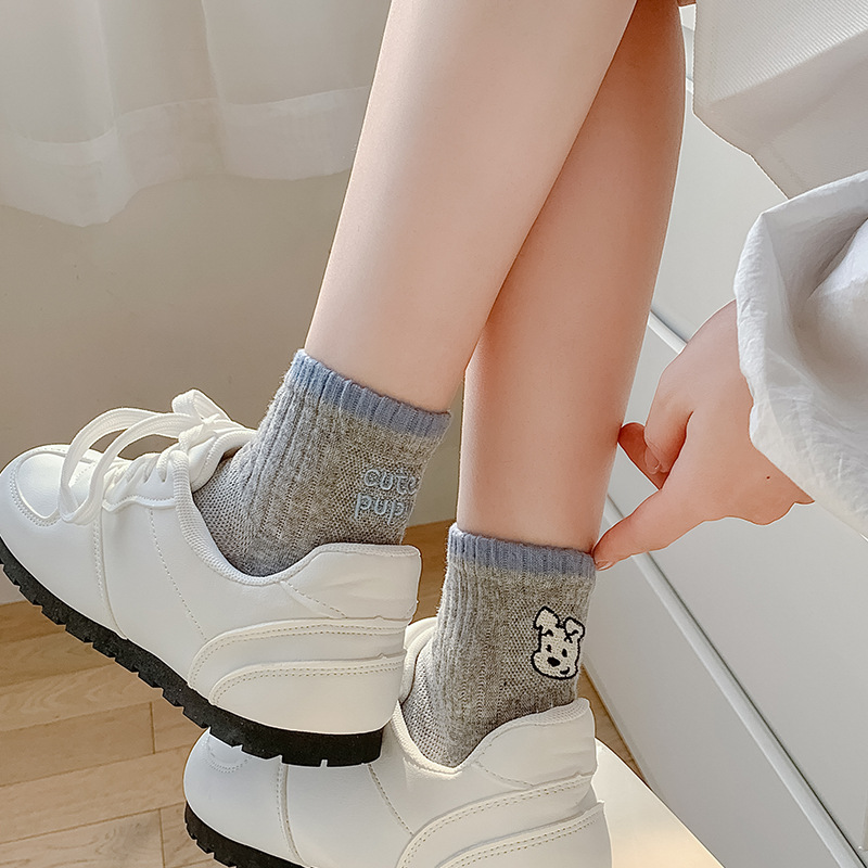봄과 여름 양말 메쉬 통기성 땀 흡수 여성 양말 일본 자수 강아지 편지 AB 튜브 양말 학술 스타일 면 양말스토어 가기