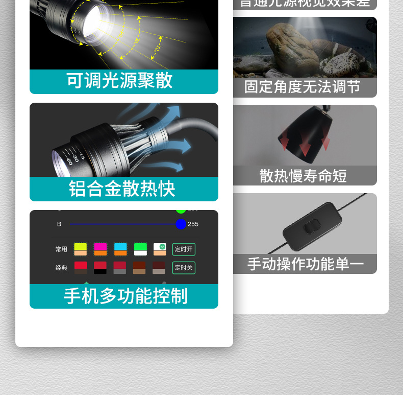 물고기 탱크 램프 줌 램프 남미 스포트라이트 네이티브 탱크 수족관 장식 램프 지능형 조명 led 스플래시 워터 잔디 램프