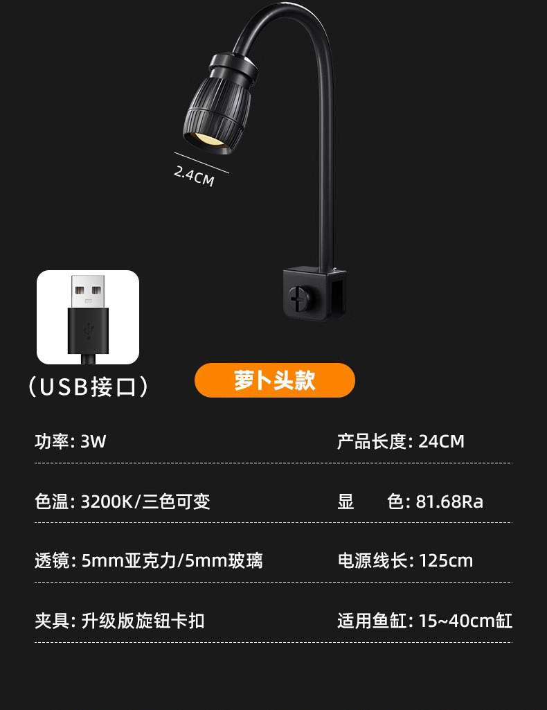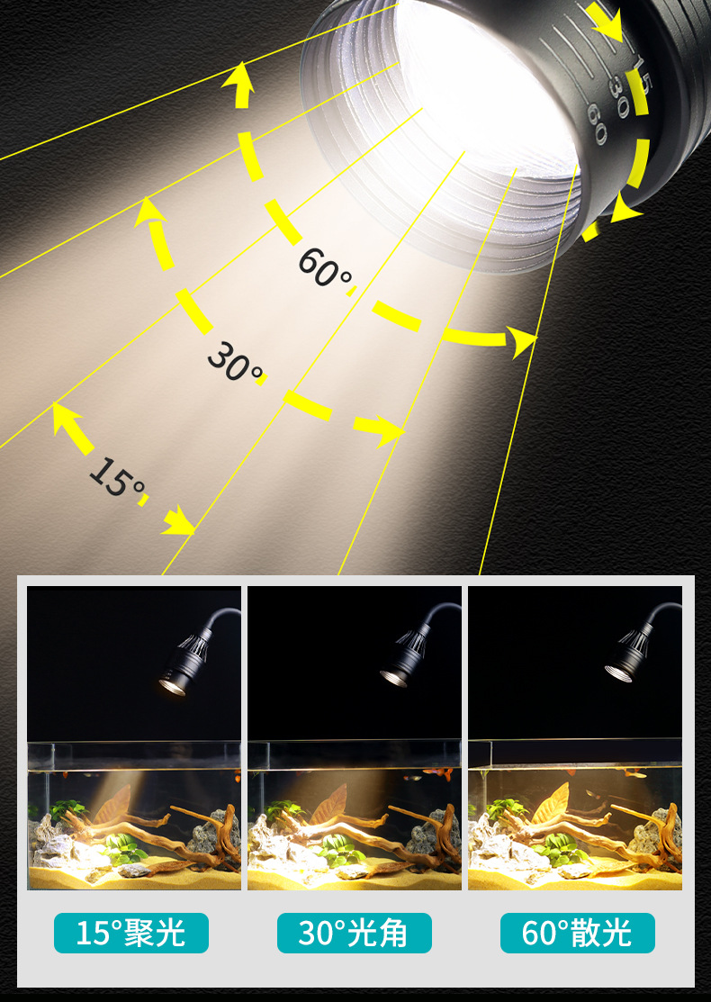 • [조정 가능한 초점] 작은 탱크에 적합한 3W 따뜻한 노란색 조명