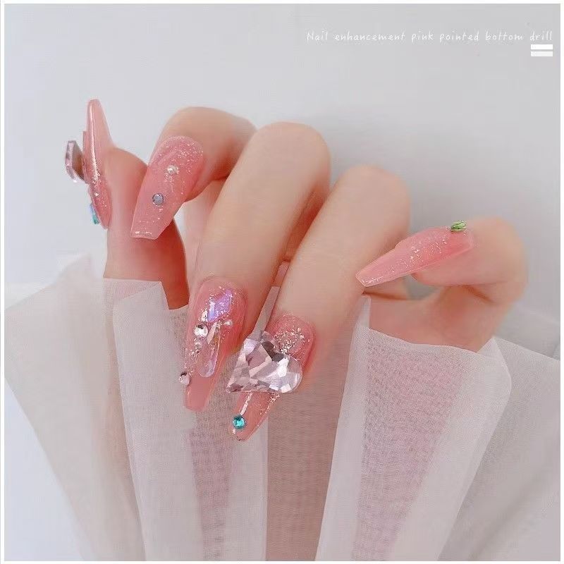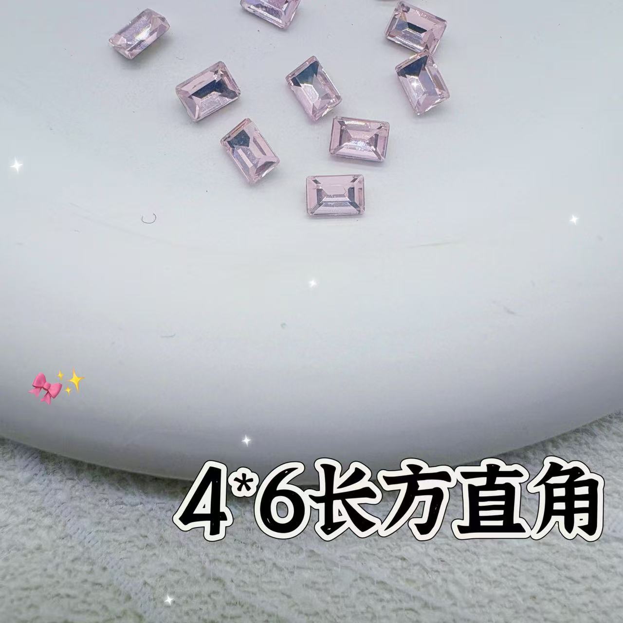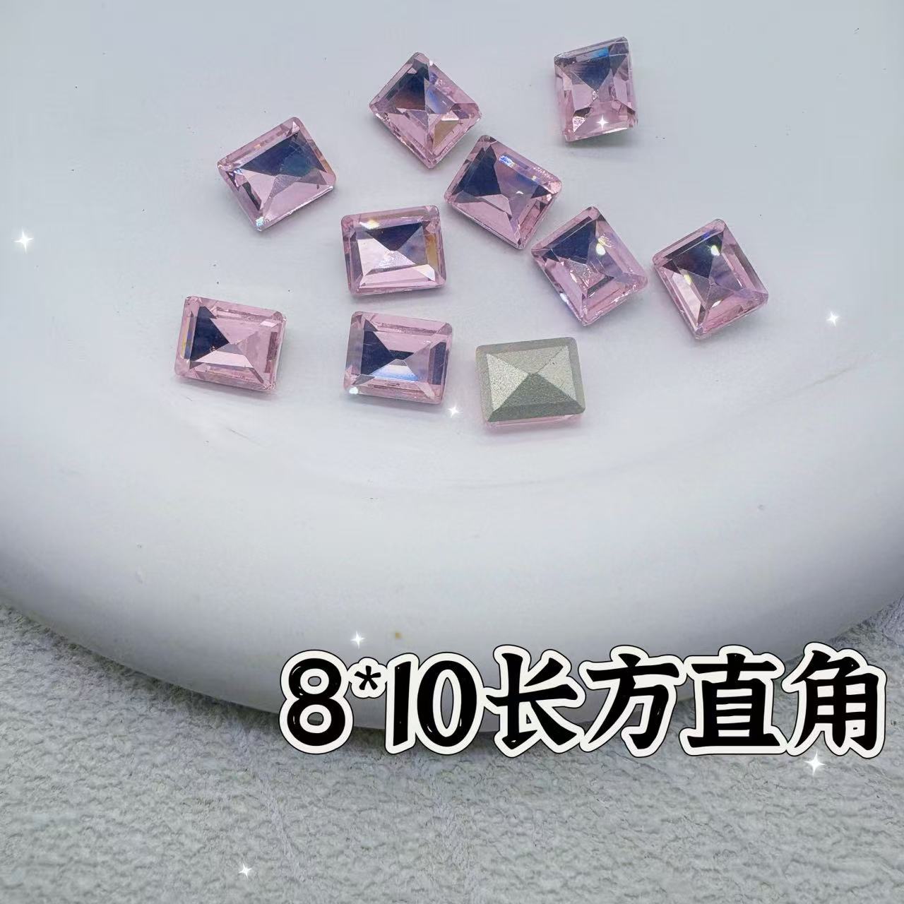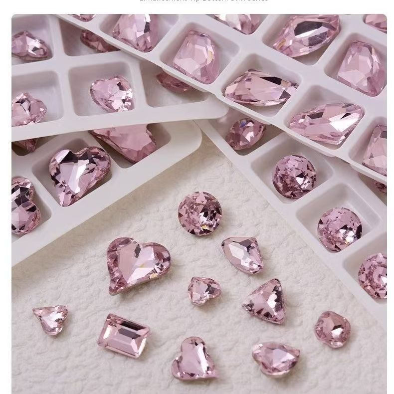 인기 있는 네일 아트 액세서리, 고품질 뾰족한 벚꽃 핑크, 매우 반짝이는 핑크색 편심 직사각형 네일 스티커 도매스토어 가기
