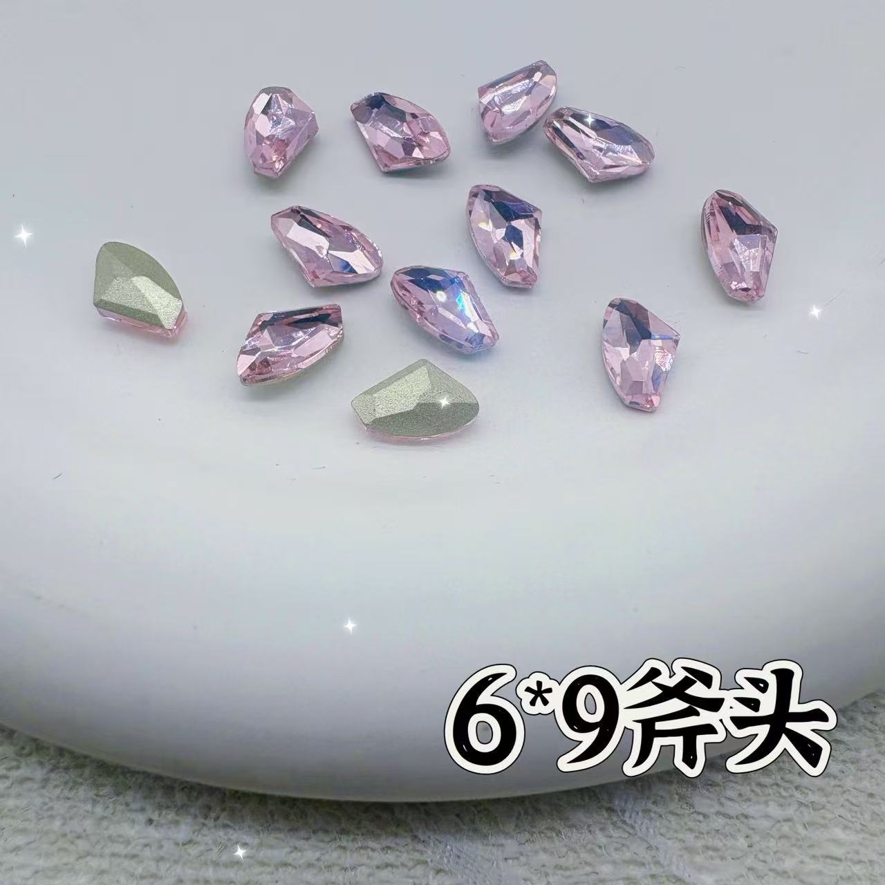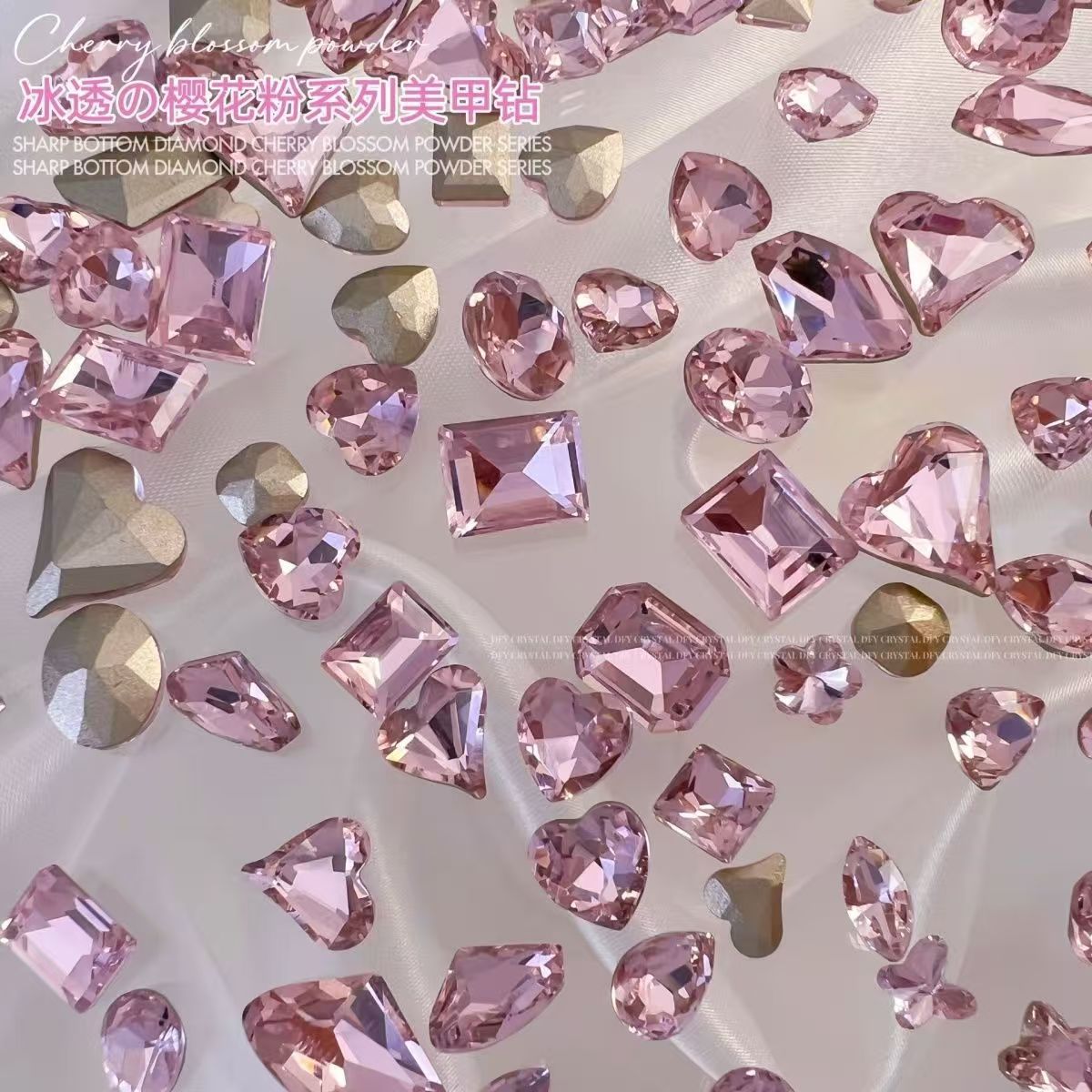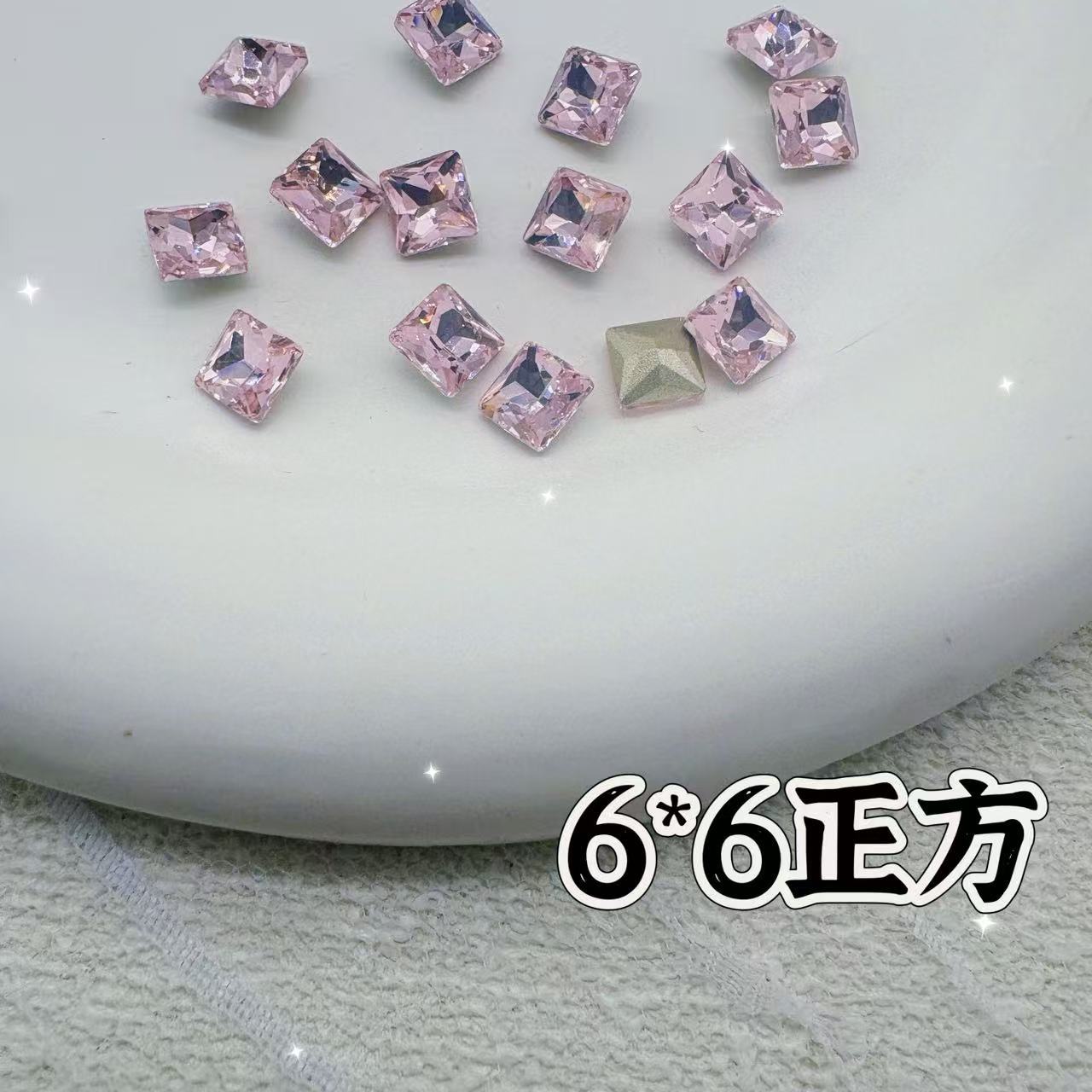 인기 있는 네일 아트 액세서리, 고품질 뾰족한 벚꽃 핑크, 매우 반짝이는 핑크색 편심 직사각형 네일 스티커 도매스토어 가기
