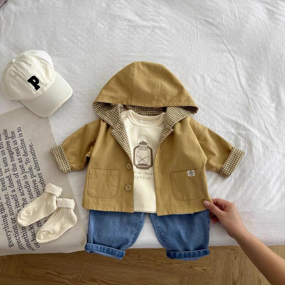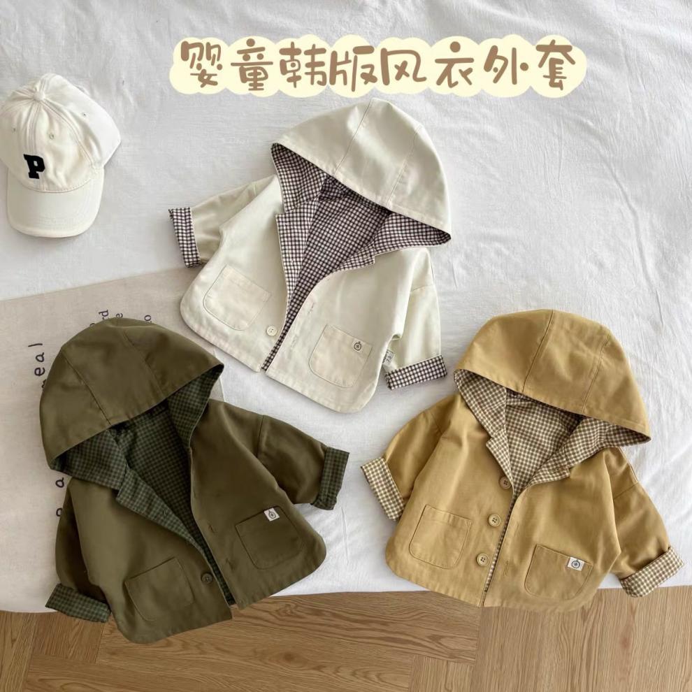 男宝宝连帽风衣外套男童洋气韩版上衣春秋装婴幼儿童百搭卫衣开衫