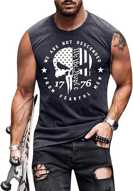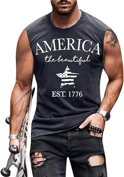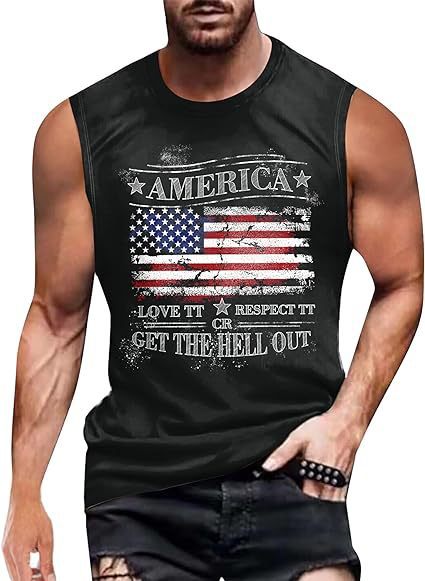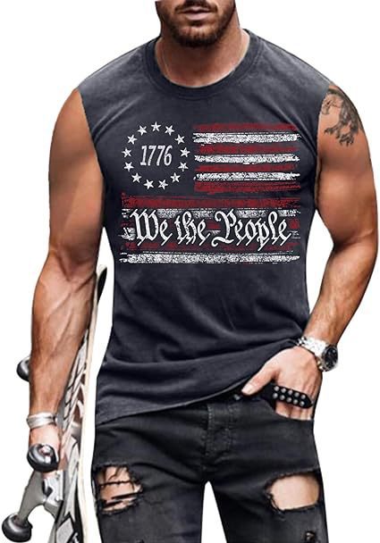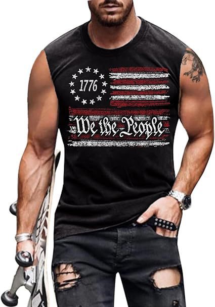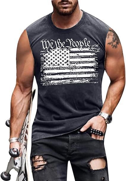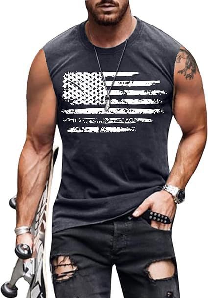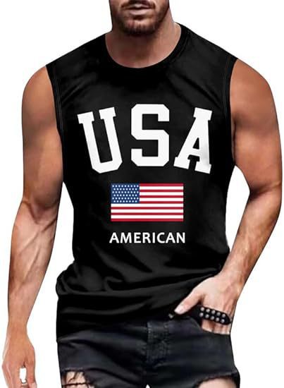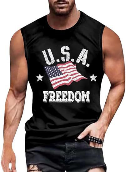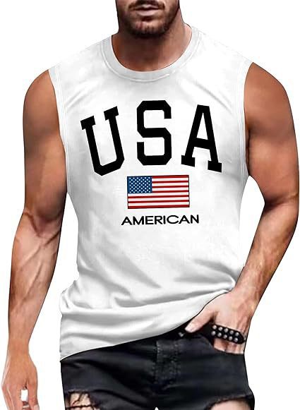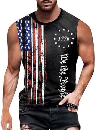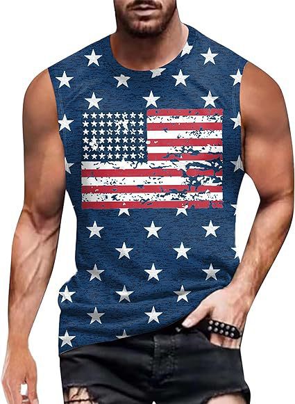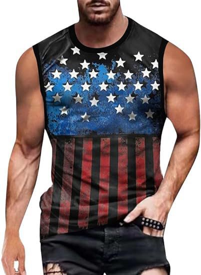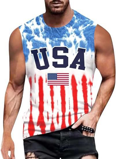 크로스보더 속달배송 아마존 3D 프린팅 독립기념일 티셔츠 민소매 라운드넥 남성용 POD 원피스 맞춤 제작스토어 가기