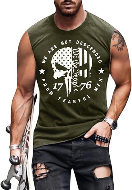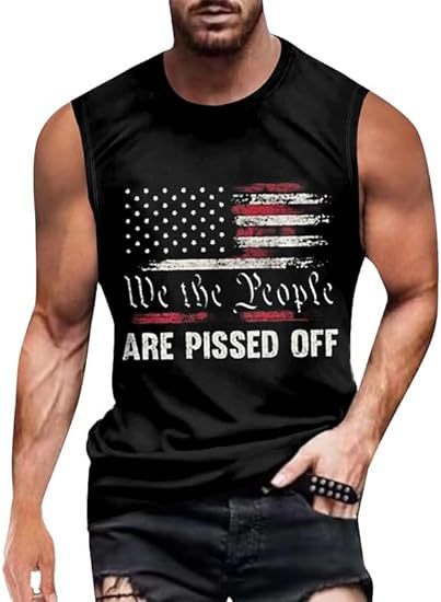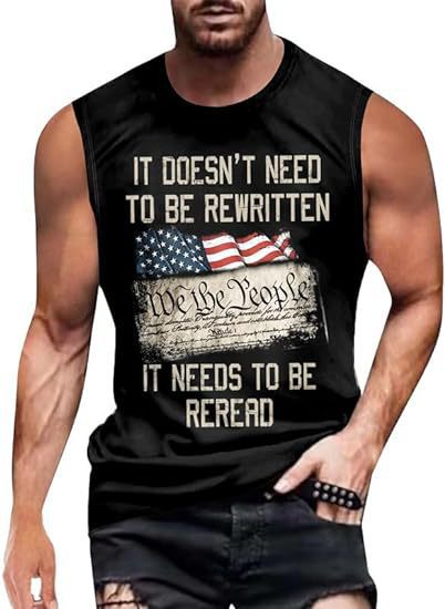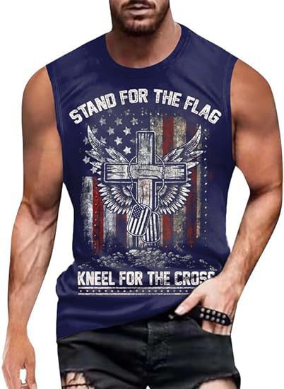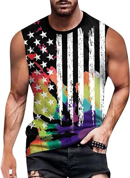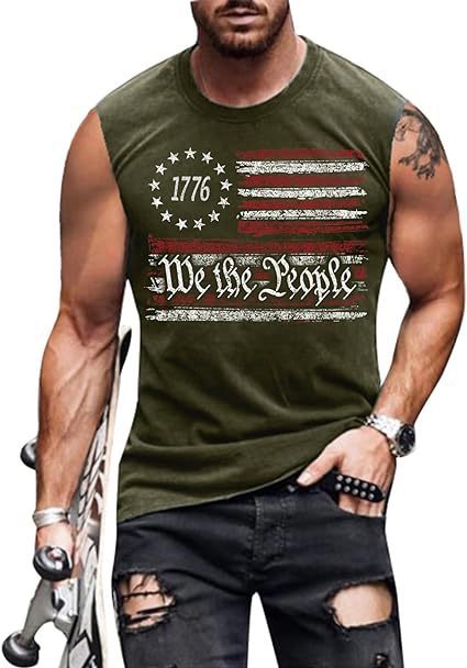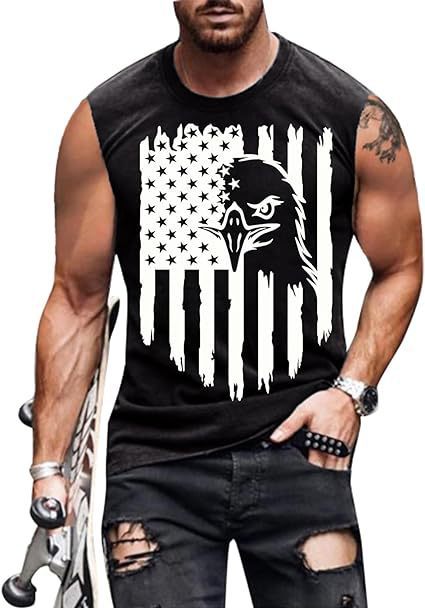 크로스보더 속달배송 아마존 3D 프린팅 독립기념일 티셔츠 민소매 라운드넥 남성용 POD 원피스 맞춤 제작