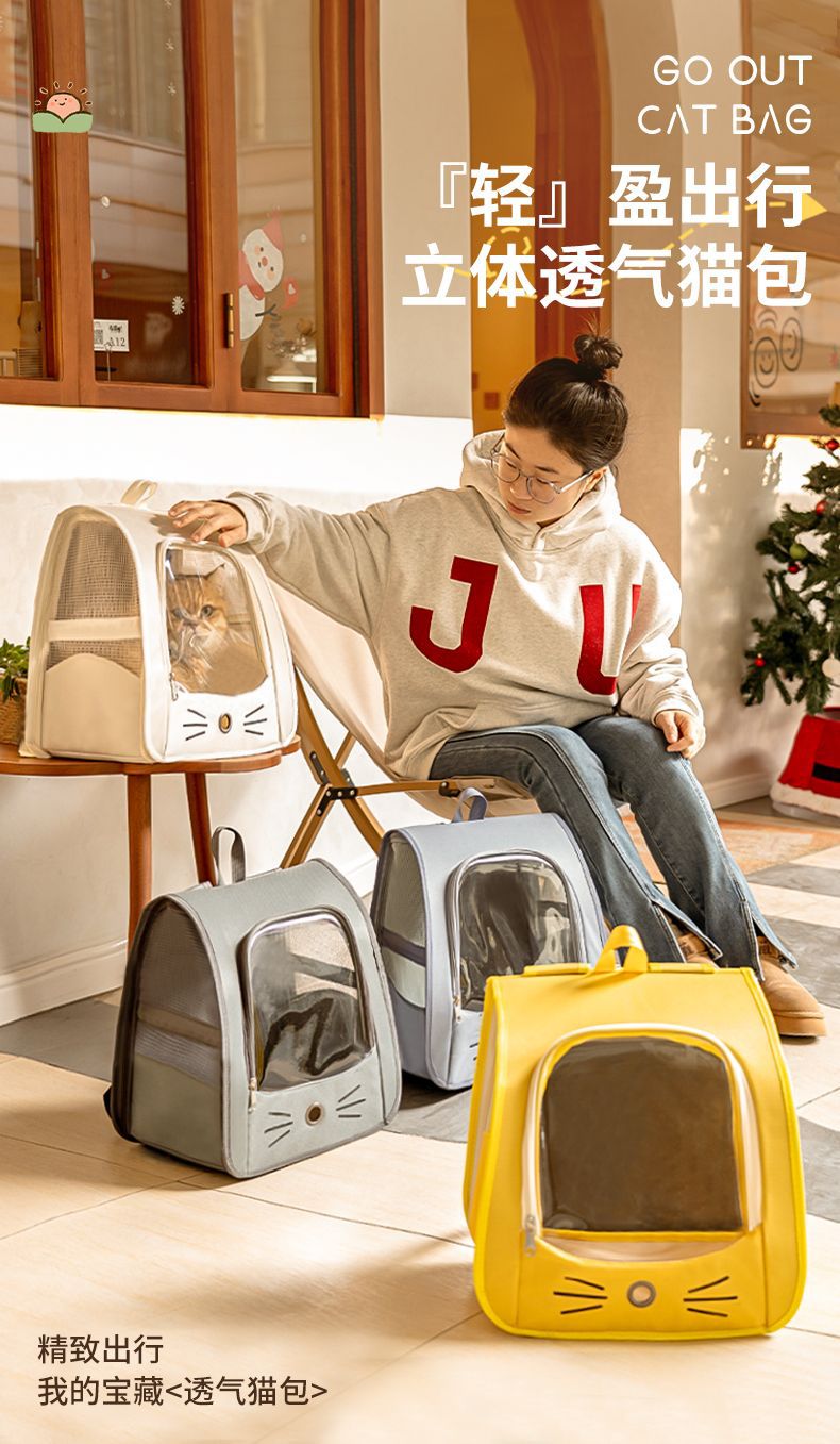 고양이 가방, 애완동물 백팩, 고양이 가방형 케이지, 다기능 가방, 차량용, 접이식, 안심, 긁힘 방지, 통기성, 휴대용스토어 가기