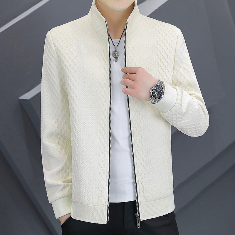 봄과 가을 재킷 남자 2025 새로운 패션 브랜드 니트 칼라 옷 모든 경기 캐주얼 두꺼운 재킷 남성복