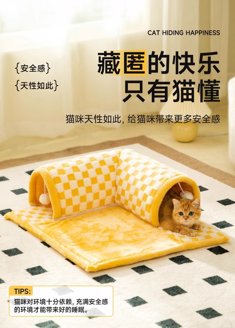 고양이 둥지 고양이 터널 재미 놀이 및 수면 통합 가을과 겨울 따뜻한 둥지 고양이 회피 하우스 사계절 유니버설 겨울 고양이 동굴스토어 가기