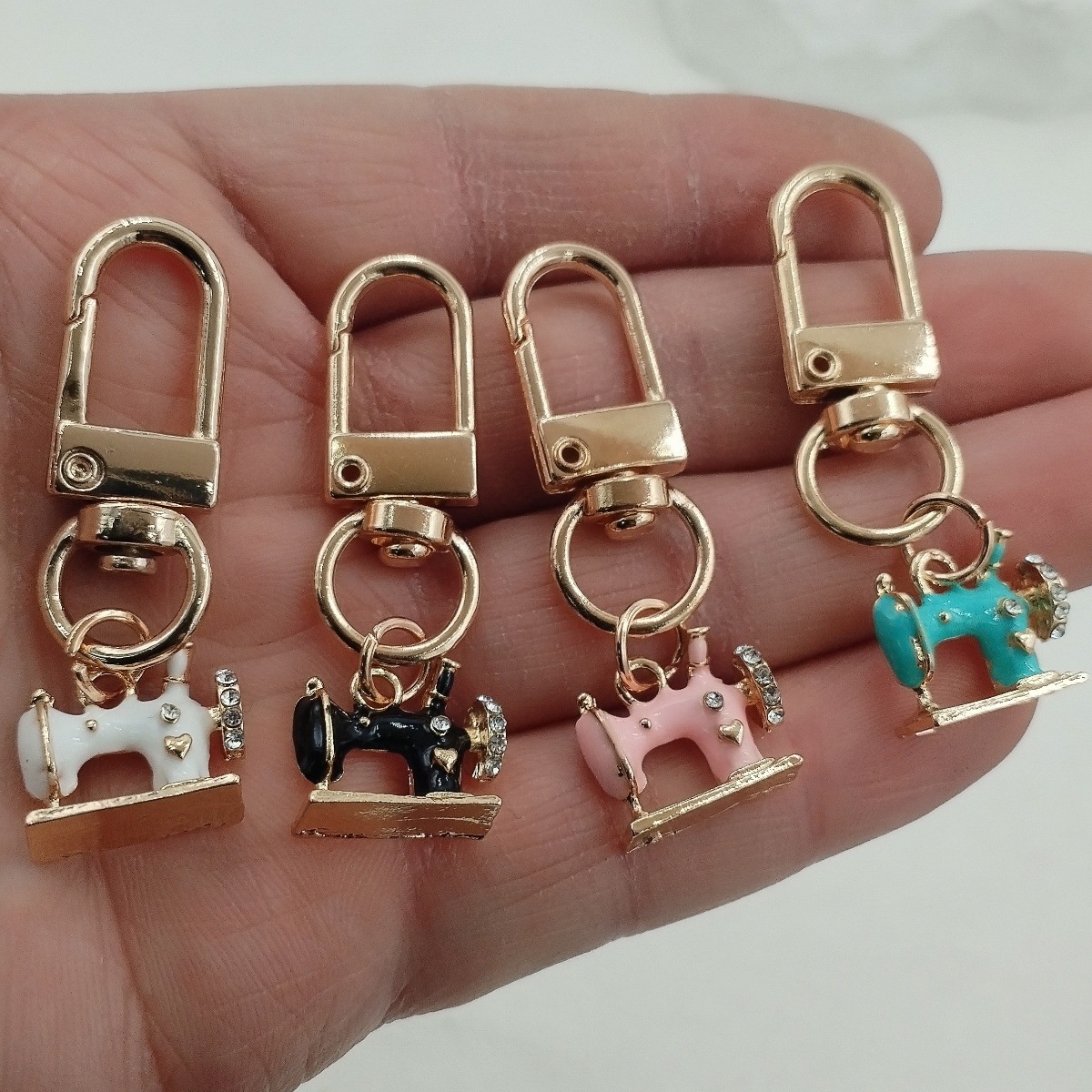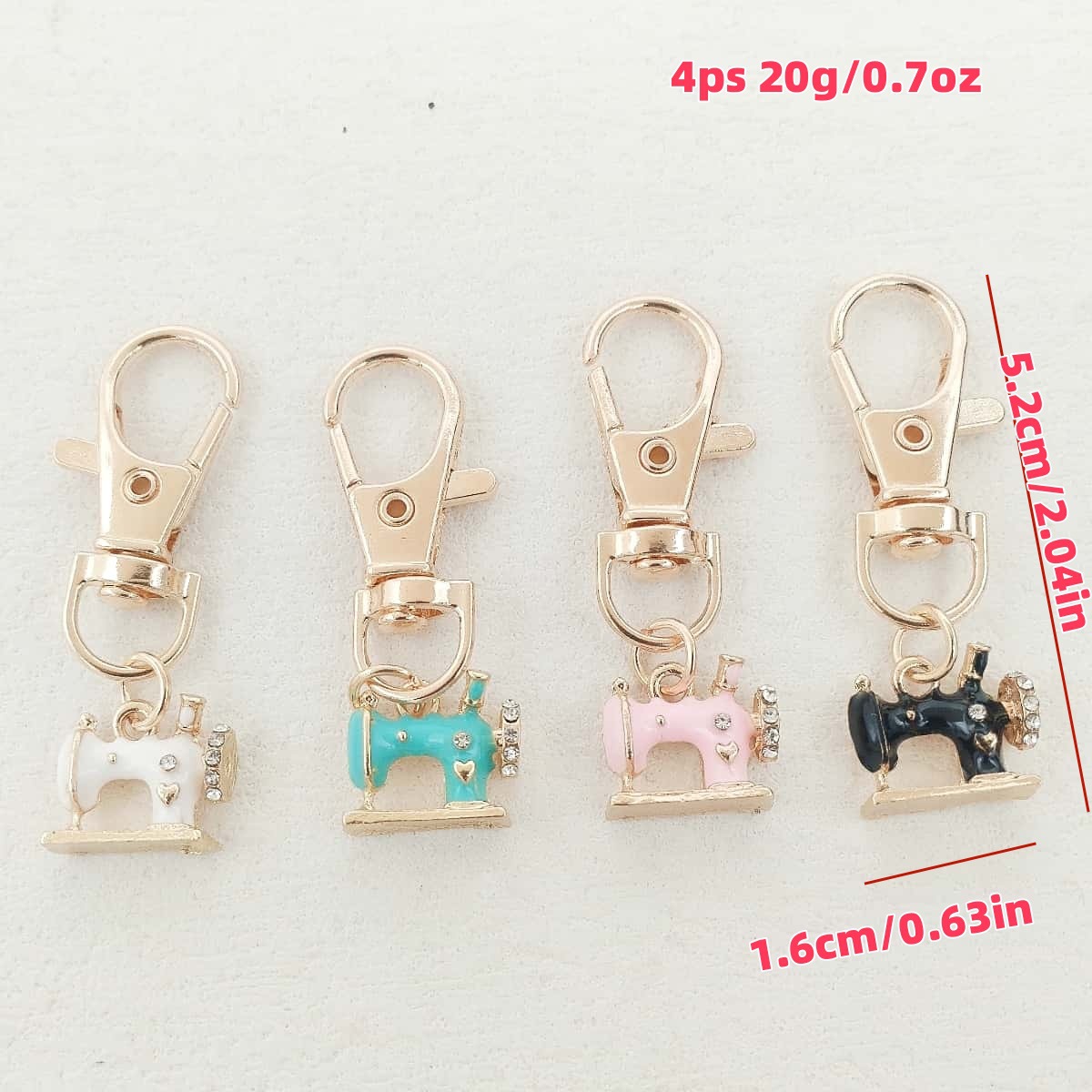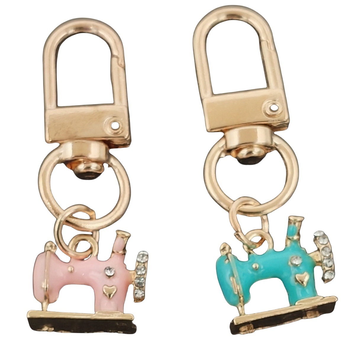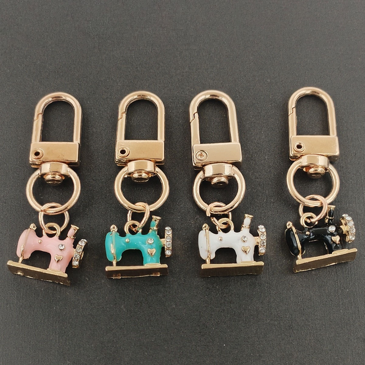 아마존 신제품 4개 세트 아연 합금 반짝이는 라인스톤 재봉틀 키체인 여성용 핸드백 장식
