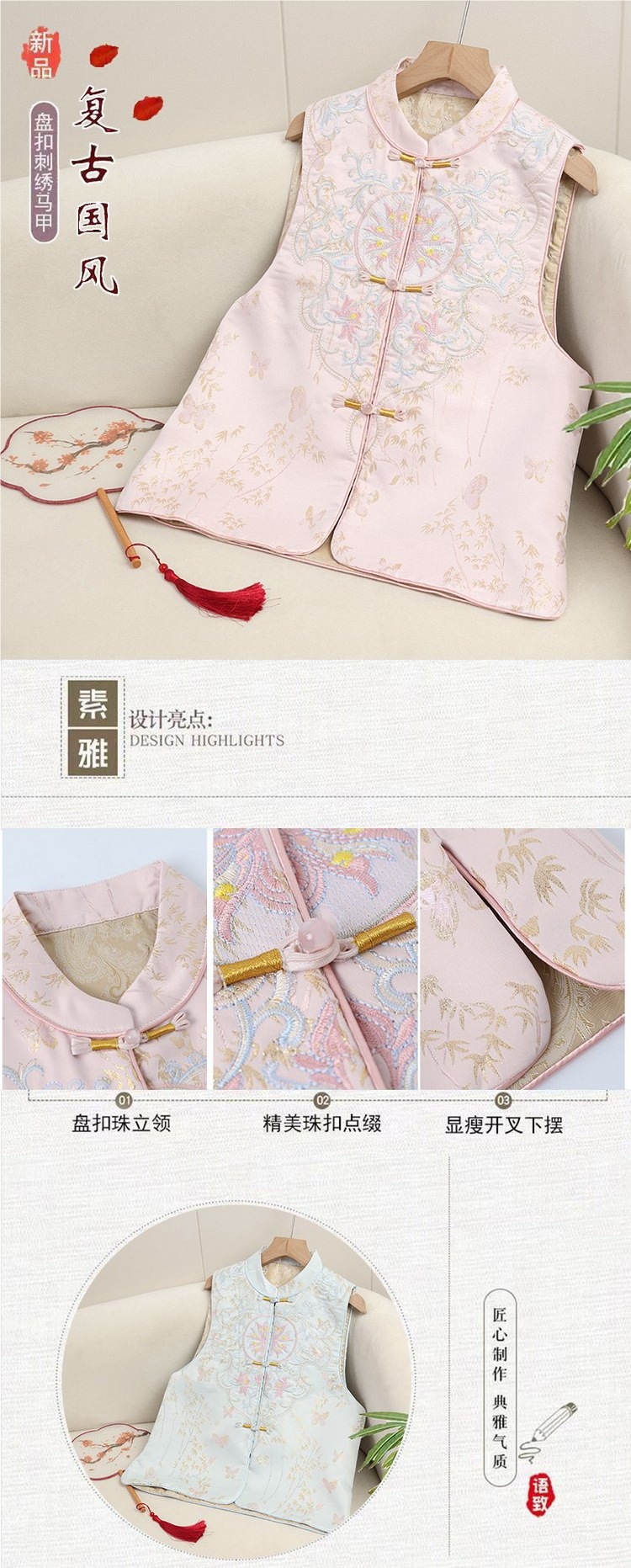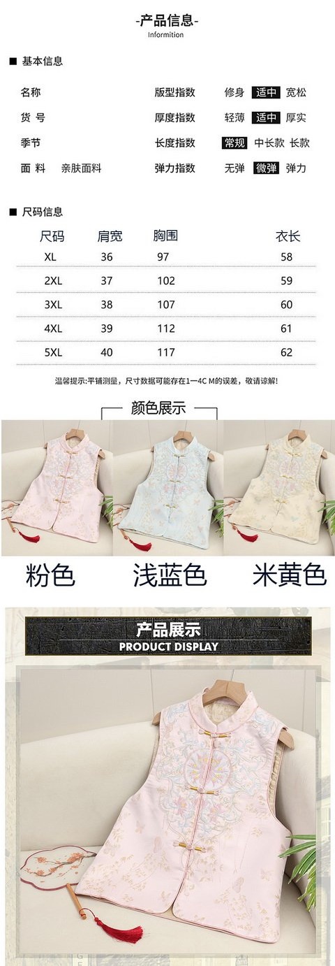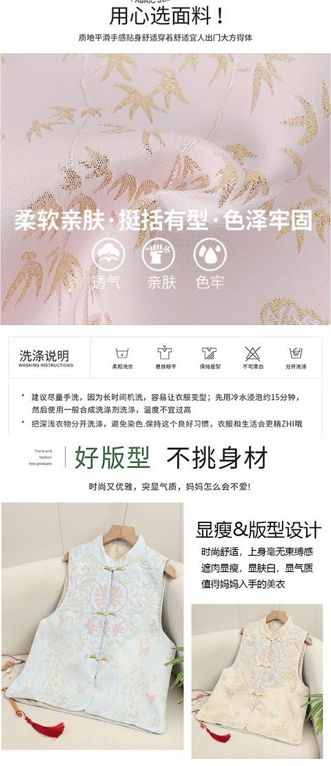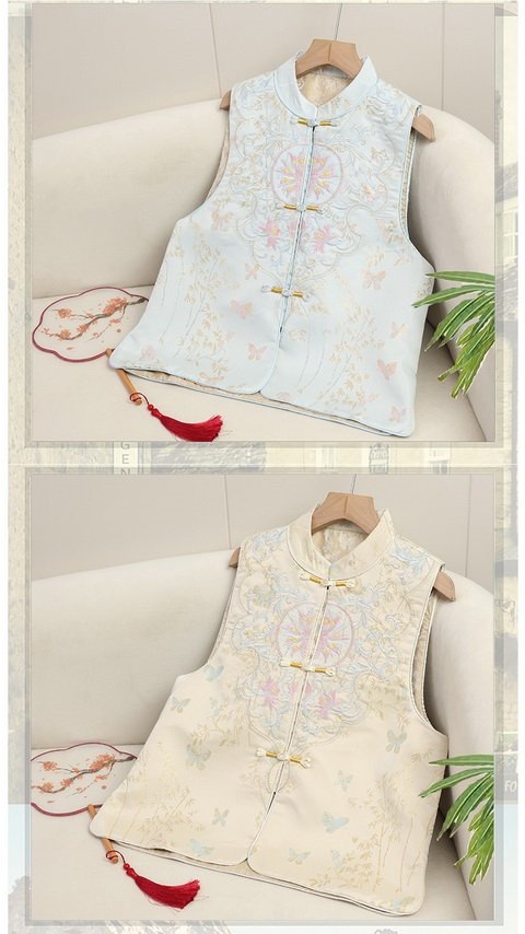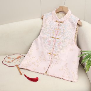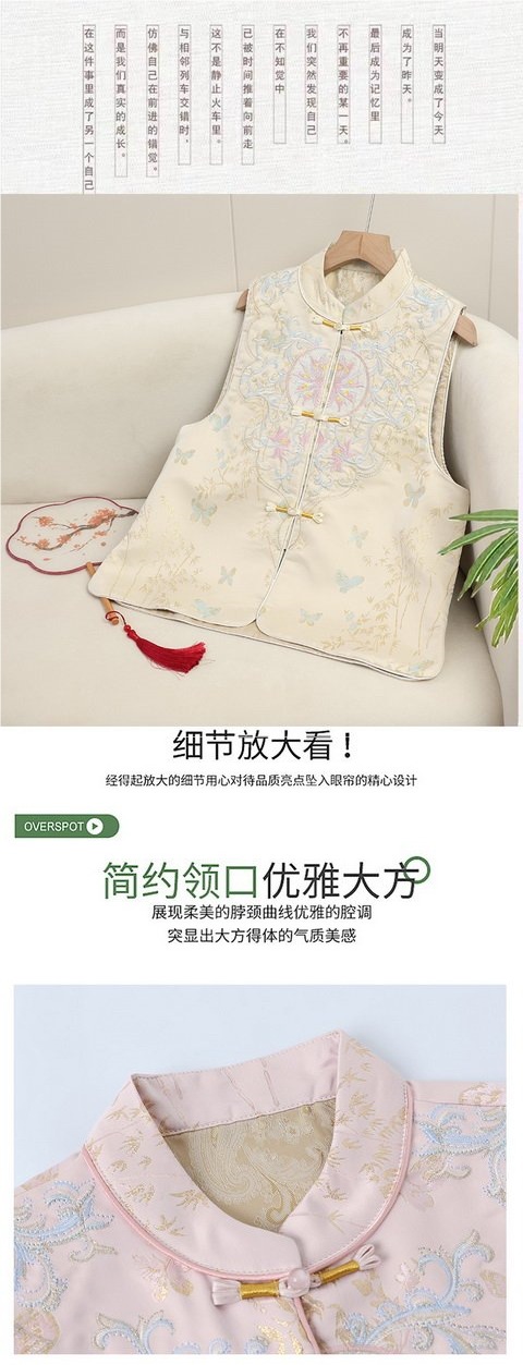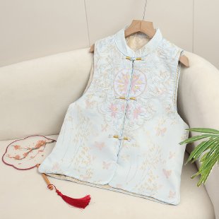 2025 새로운 중국 조끼 버클 웨이스트 코트 여성의 봄과 가을 의상 하이 엔드 내셔널 스타일 자카드 조끼 탑스토어 가기