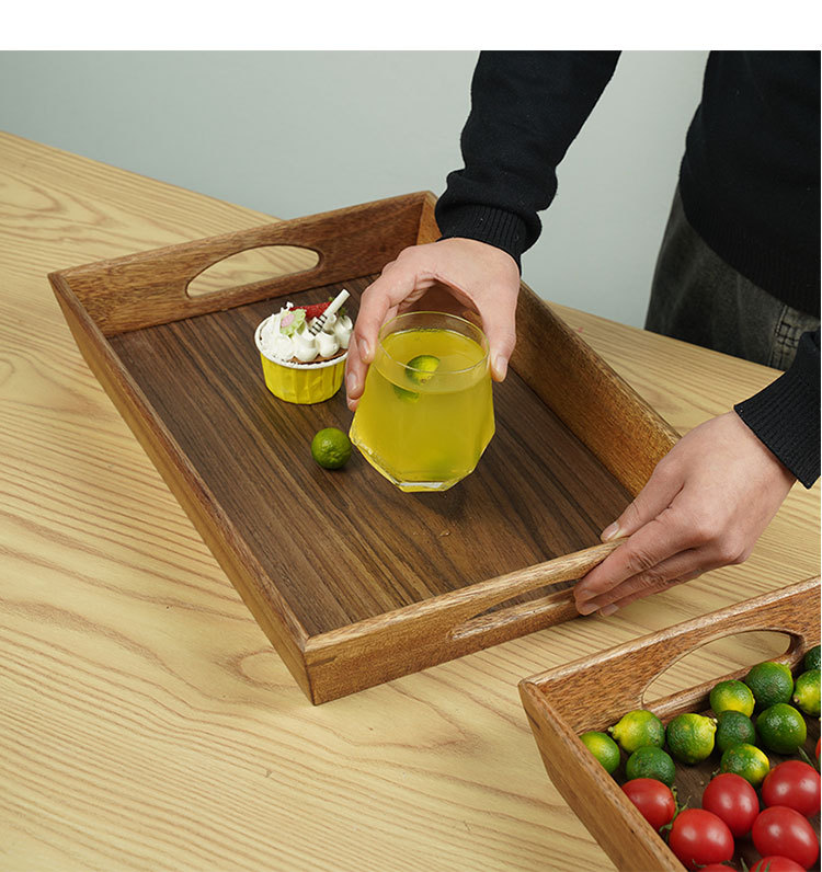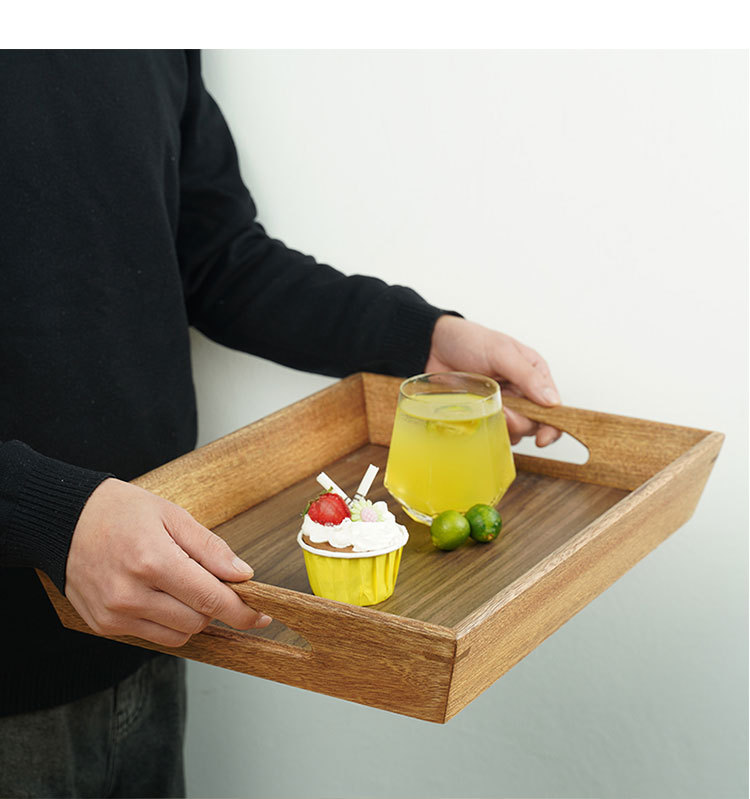 솔리드 우드 다이닝 스퀘어 티 트레이 가정용 과일 트레이 휴대용 디너 플레이트 빵 케이크 워터 컵 트레이 Ins 일본 스타일