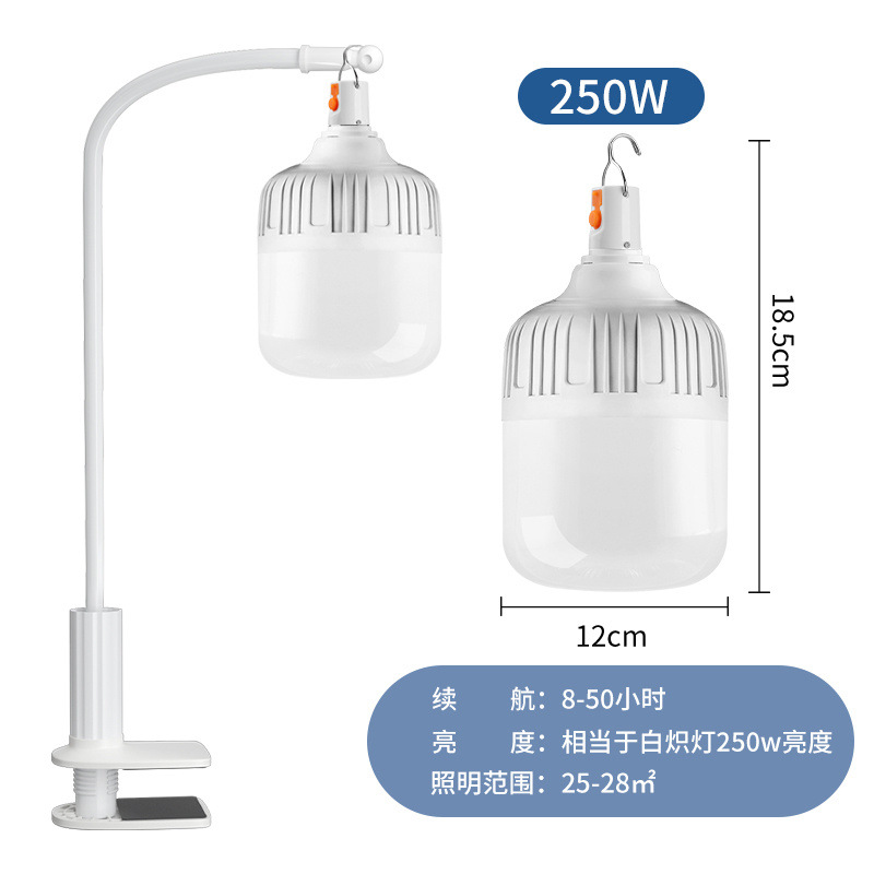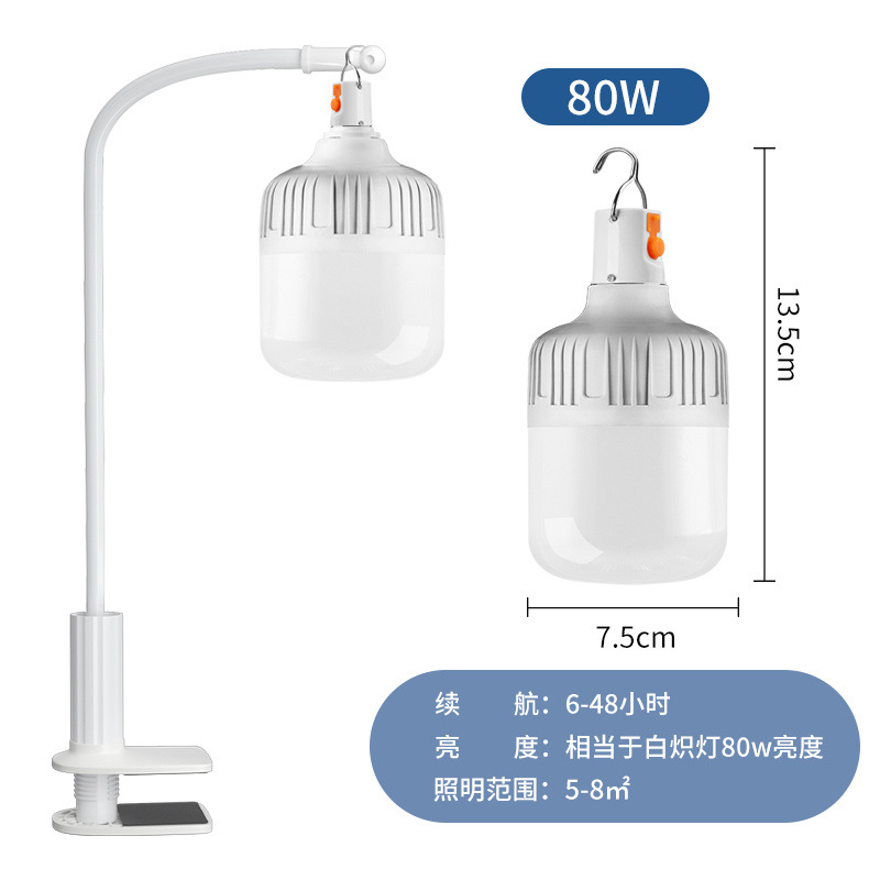 야외 조명 led 충전식 전구 슈퍼 밝은 밤 시장 스톨 데스크탑 클립 램프 브래킷 야외 캠핑