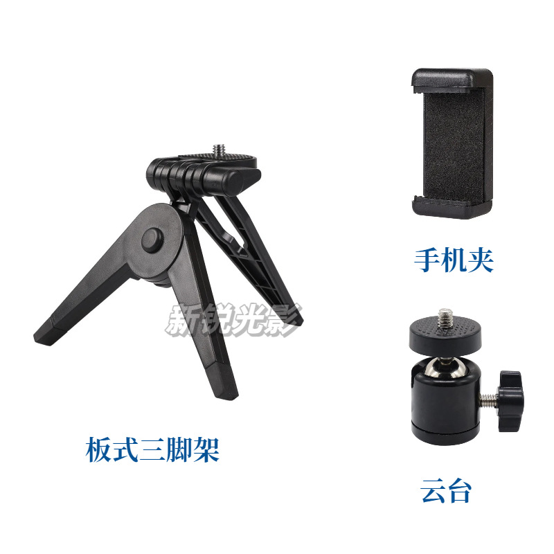• 두꺼운 손잡이 삼각대 + 팬/틸트 + 휴대폰 클립