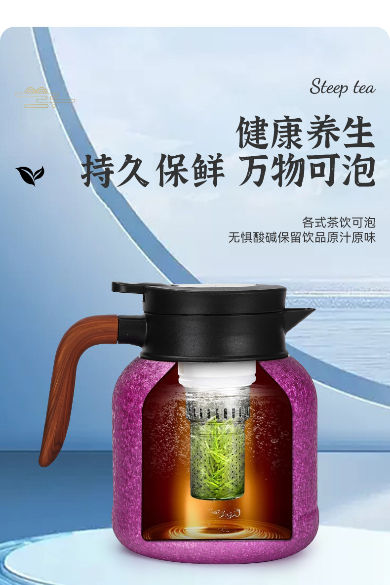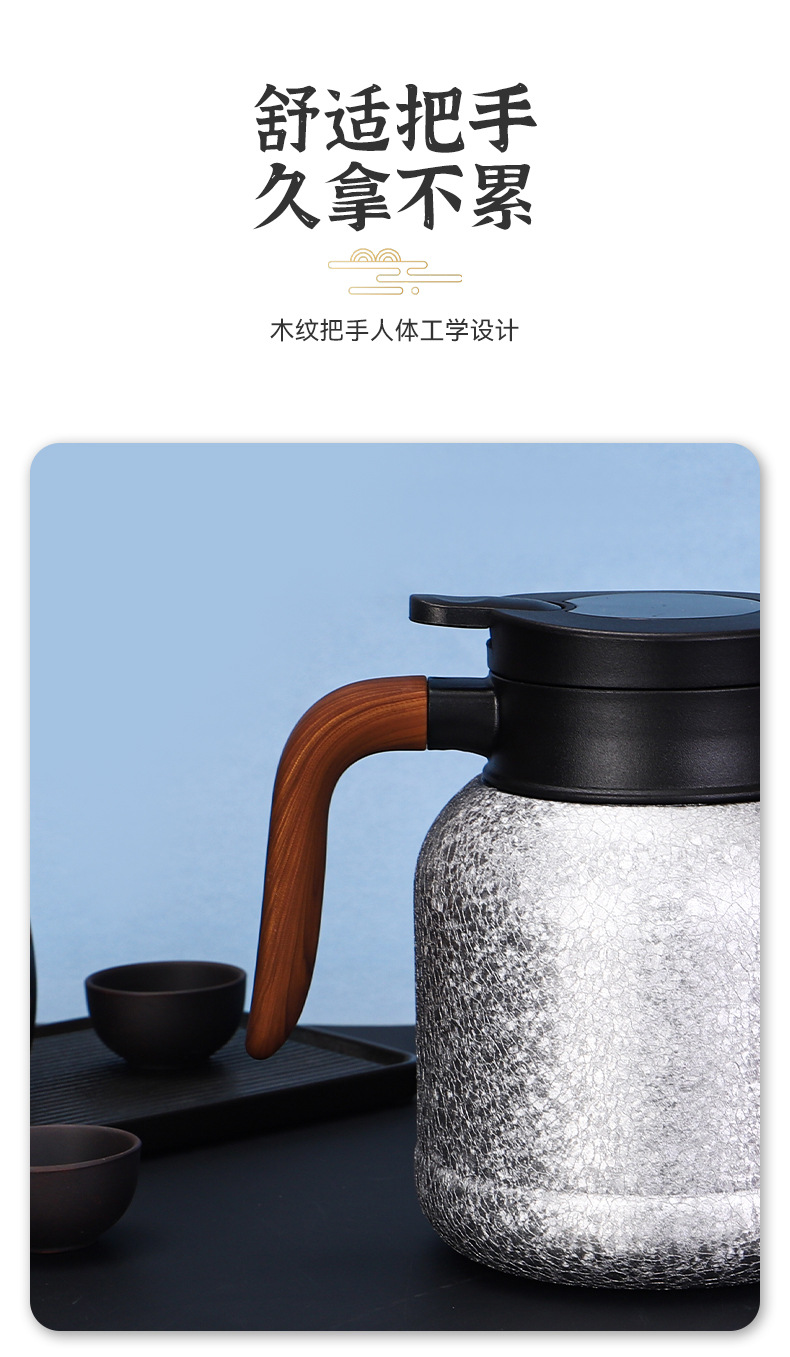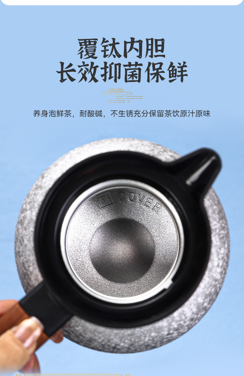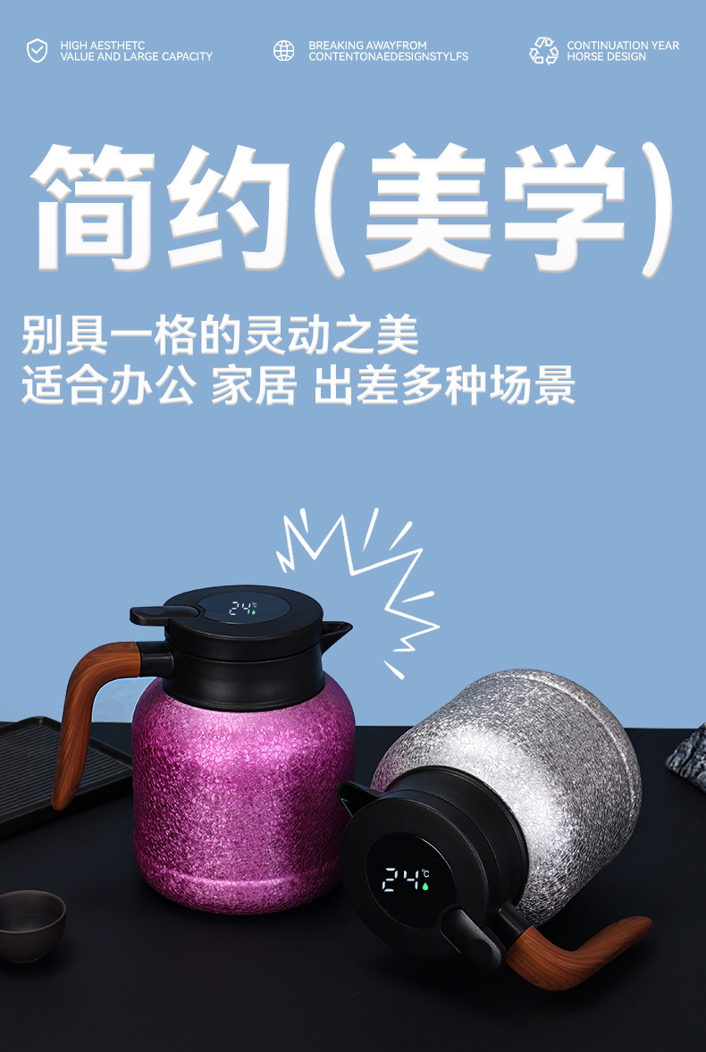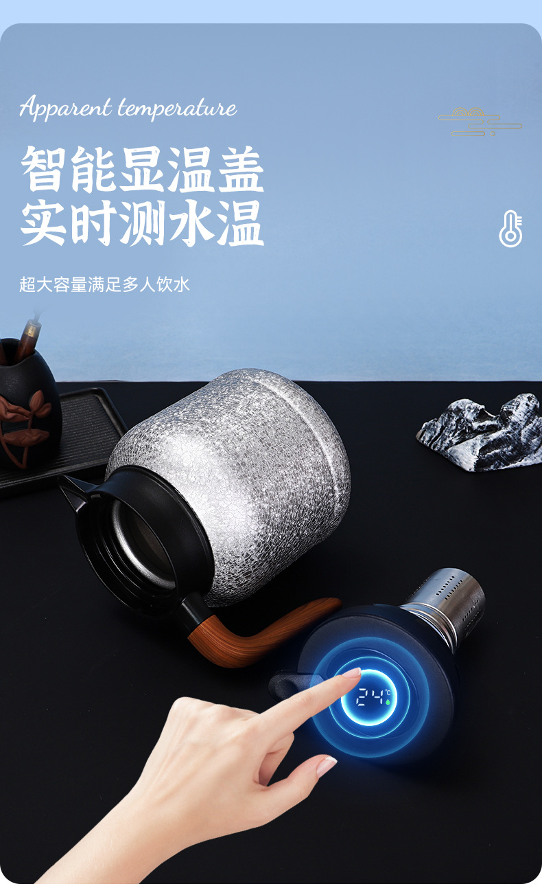 손잡이가 있는 티타늄 코팅 찻주전자, 가정용 단열 및 건강 유지 찻주전자, 대용량 지능형 온도 표시 단열 주전자