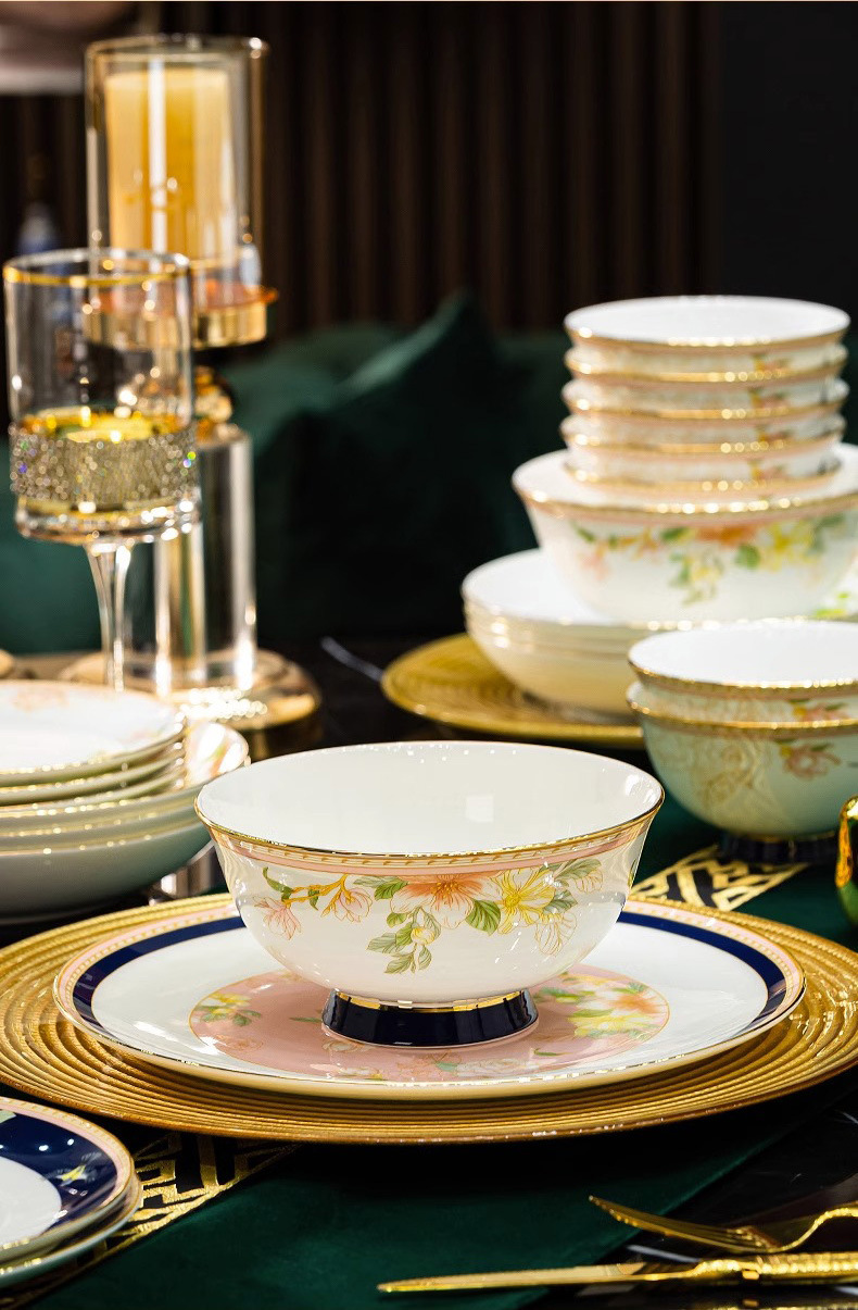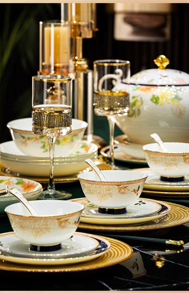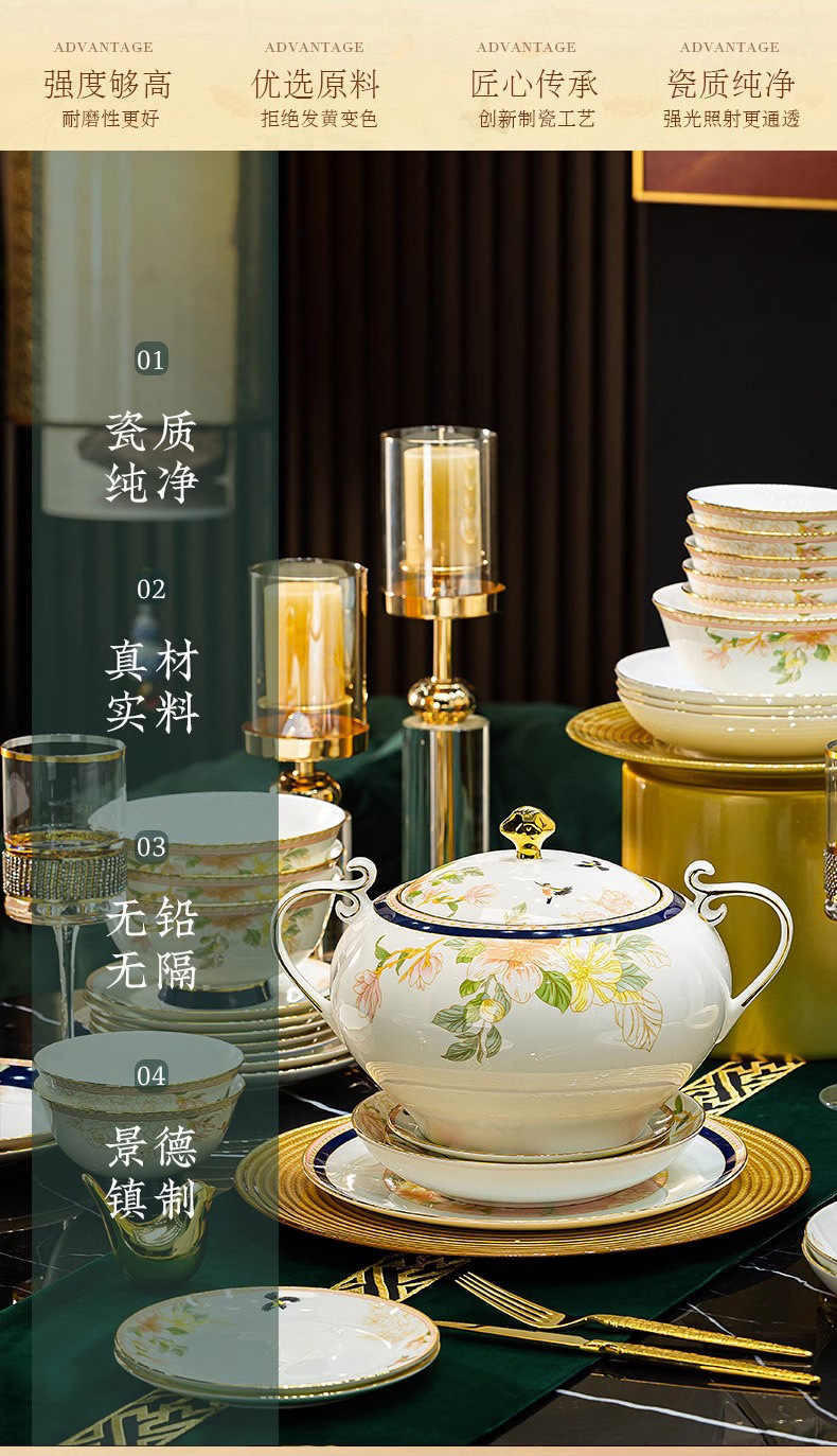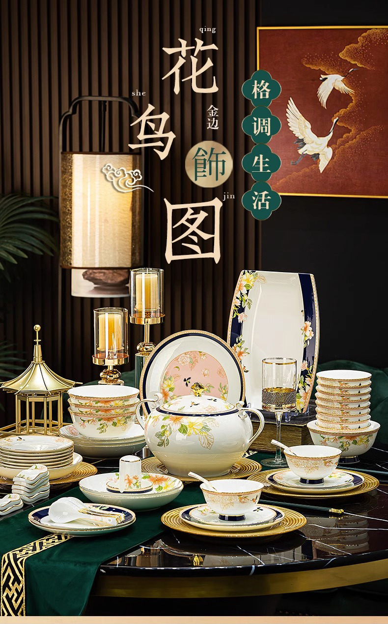 Jingdezhen 2025 새로운 고급 뼈 중국 식기 새로운 중국 빛 럭셔리 식기 요리 세트 집들이 선물스토어 가기