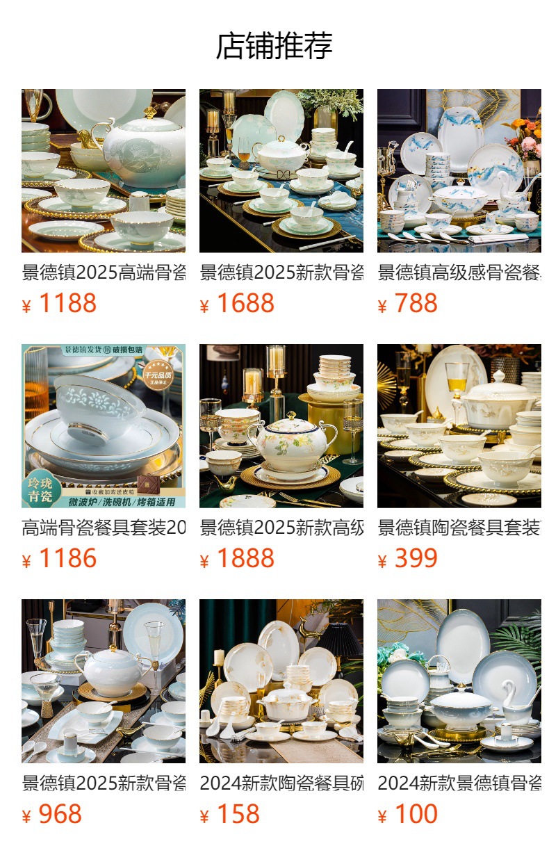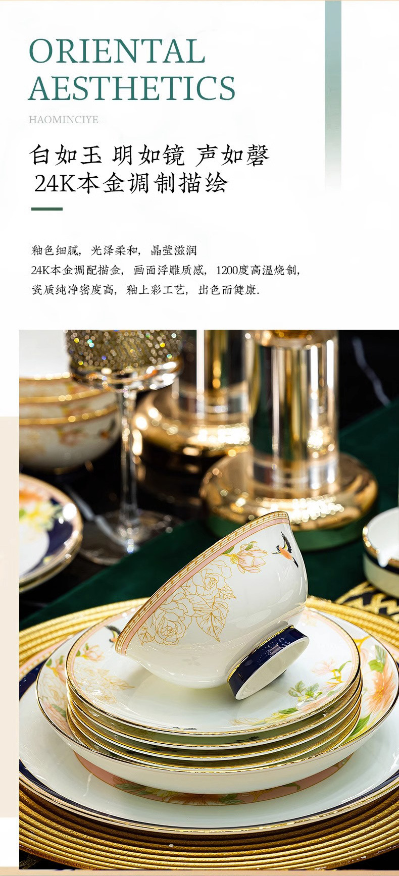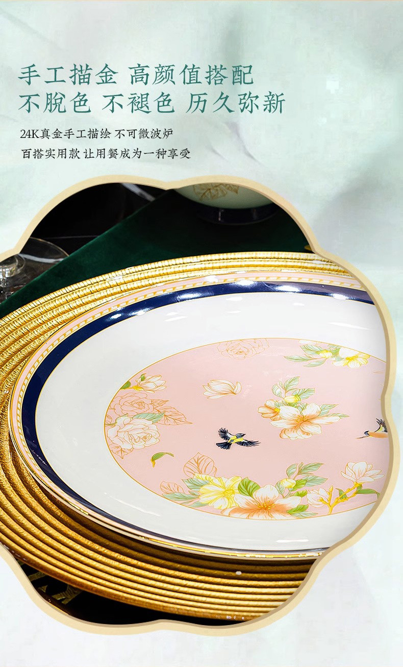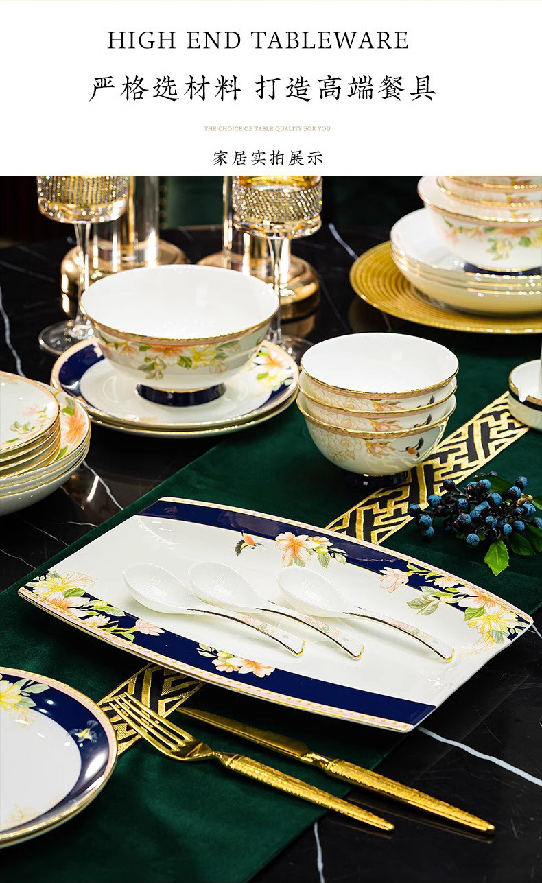 Jingdezhen 2025 새로운 고급 뼈 중국 식기 새로운 중국 빛 럭셔리 식기 요리 세트 집들이 선물스토어 가기