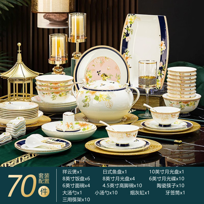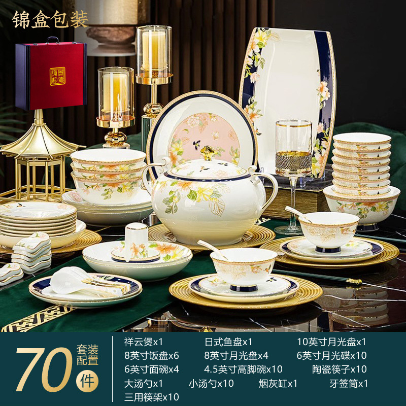 Jingdezhen 2025 새로운 고급 뼈 중국 식기 새로운 중국 빛 럭셔리 식기 요리 세트 집들이 선물