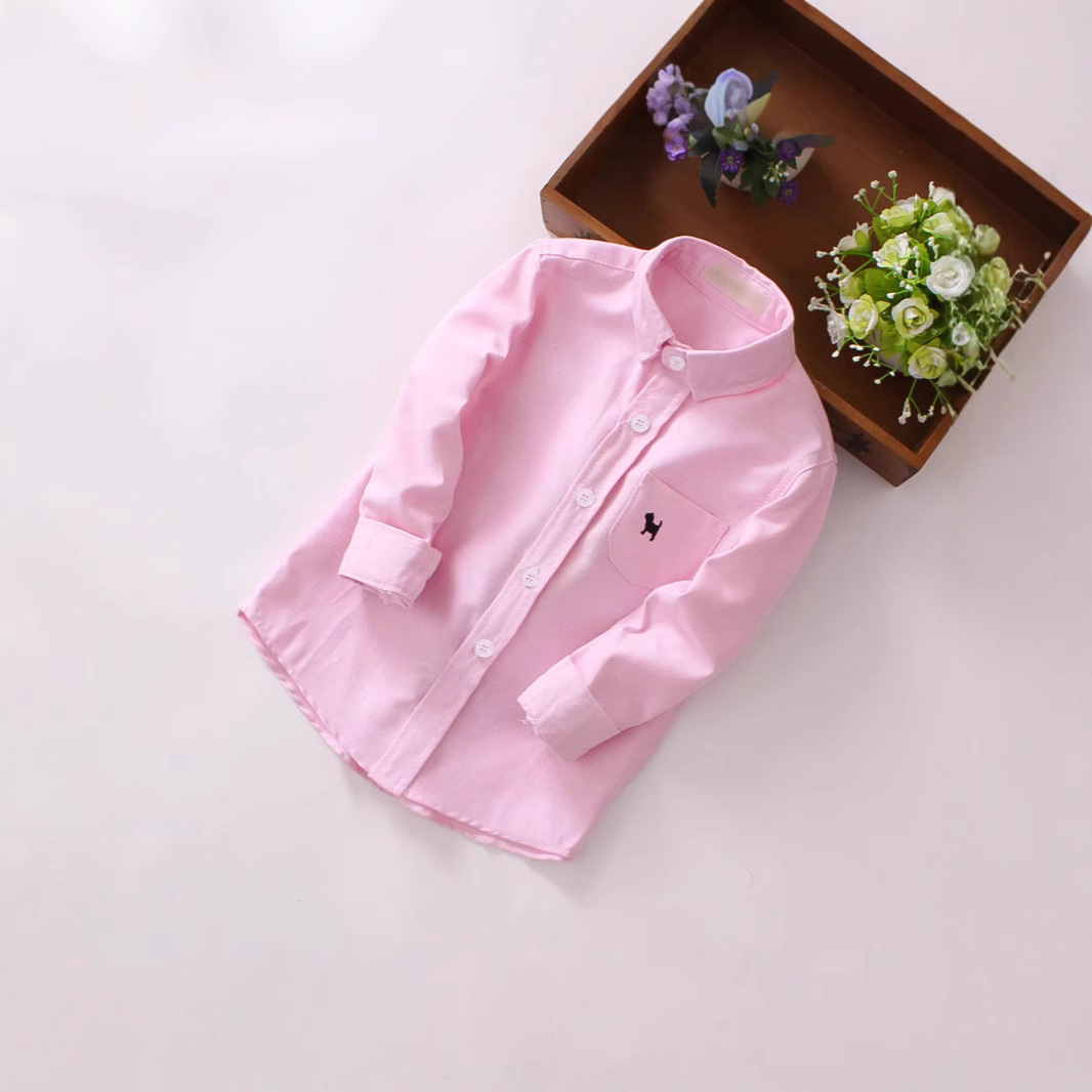 새로운 어린이 긴팔 셔츠 소년의 옥스포드 회전 얇은 재킷 중대형 어린이 캐주얼 만화 셔츠 봄과 가을 칼라 플립 패션