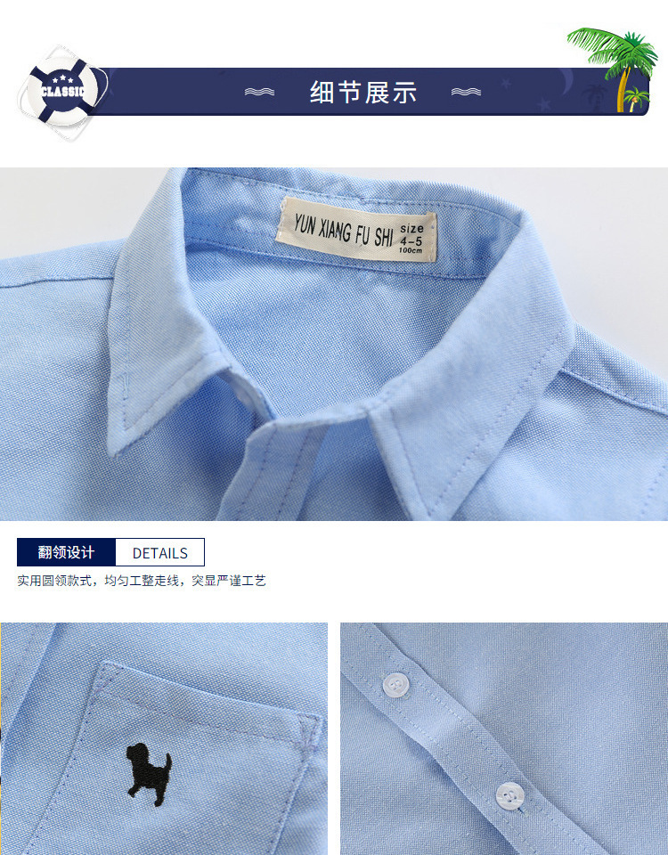 새로운 어린이 긴팔 셔츠 소년의 옥스포드 회전 얇은 재킷 중대형 어린이 캐주얼 만화 셔츠 봄과 가을 칼라 플립 패션스토어 가기