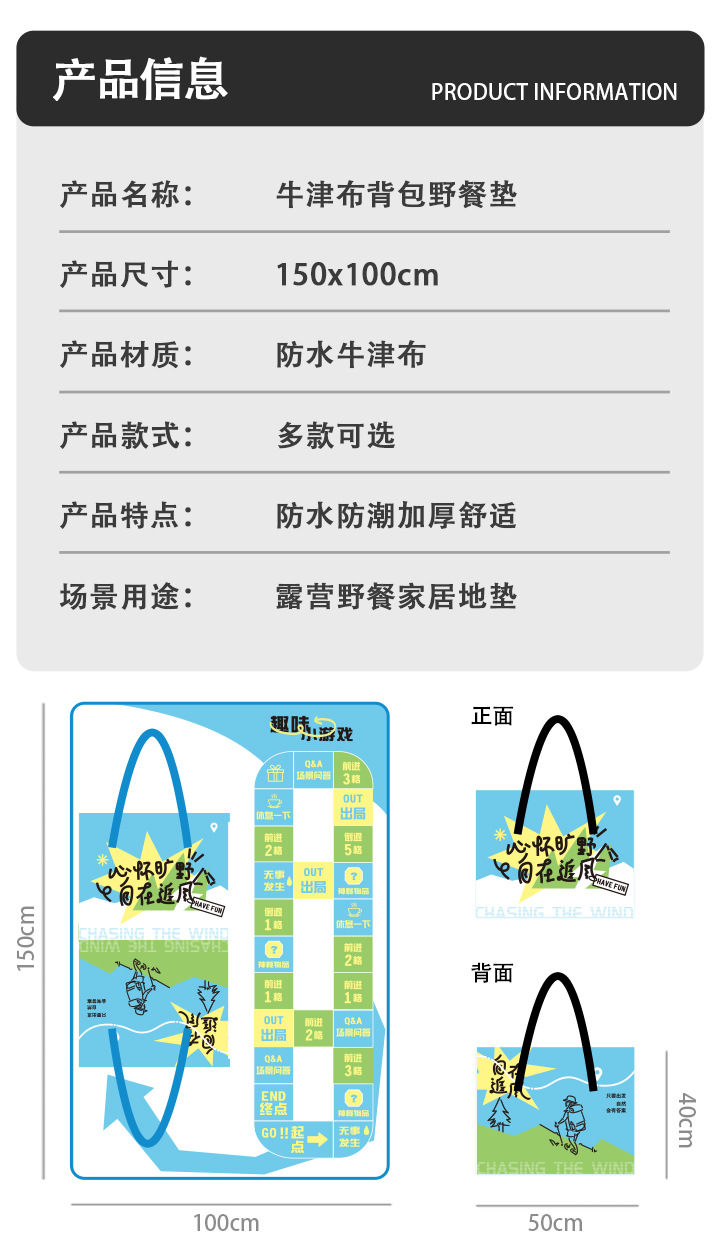 옥스포드 천 야외 다기능 피크닉 매트 캠핑 두꺼운 휴대용 습기 방지 피크닉 매트 휴대용 점심 가방