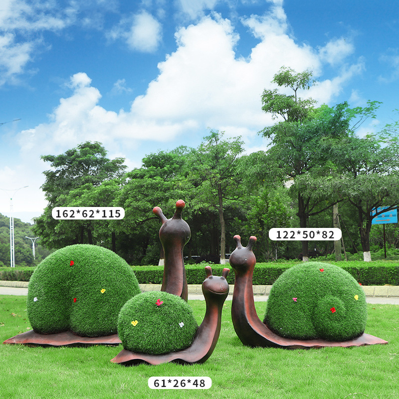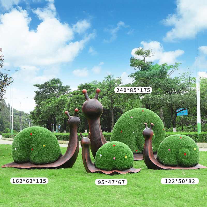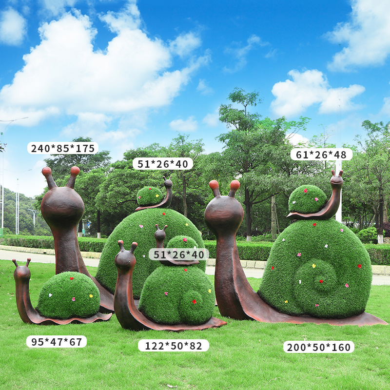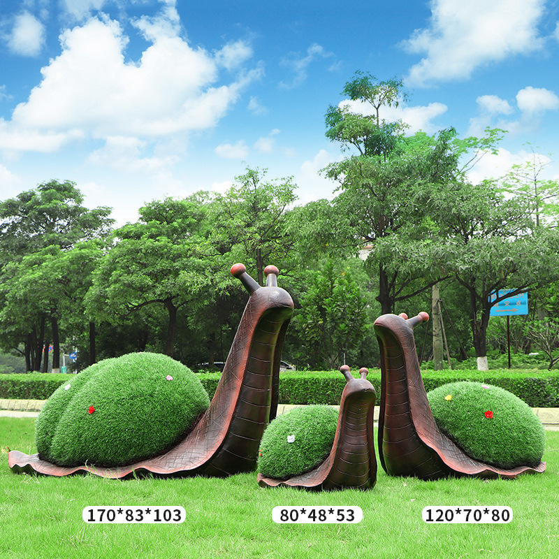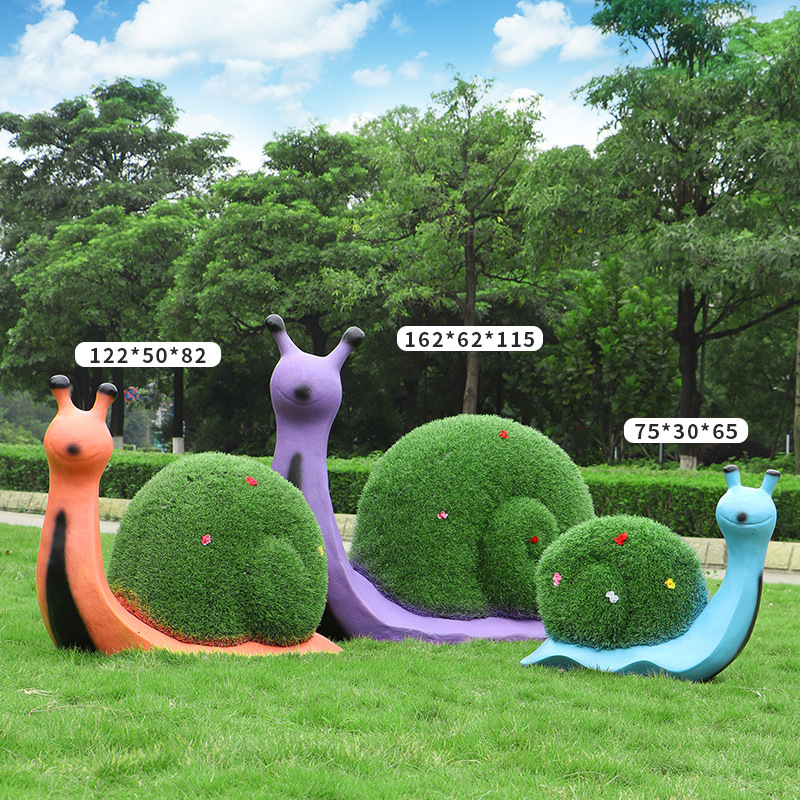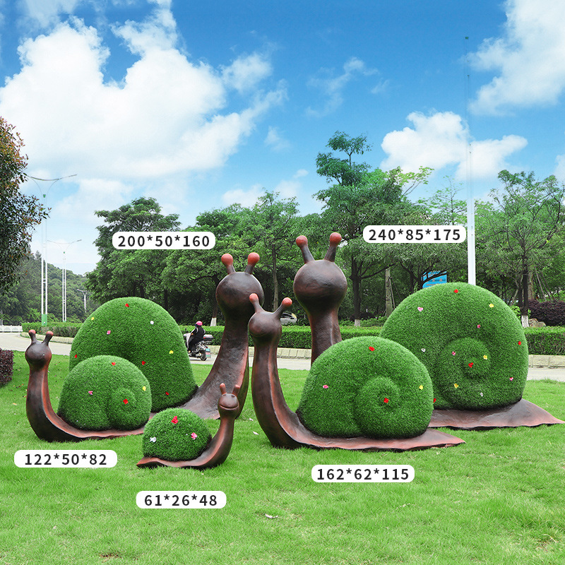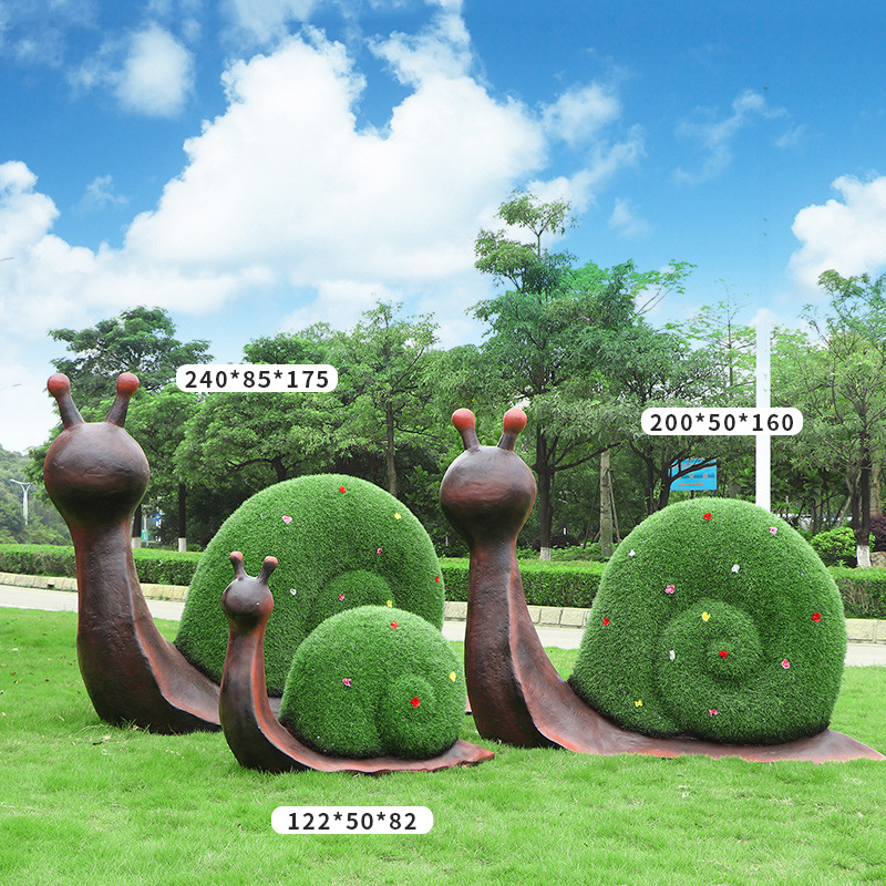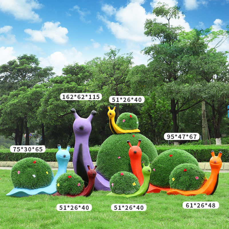야외 녹색 심기 코끼리 달팽이 조각 유리 섬유 강화 플라스틱 잔디 심기 기린 팬더 장식품 판매 부서 멋진 장소 장식스토어 가기