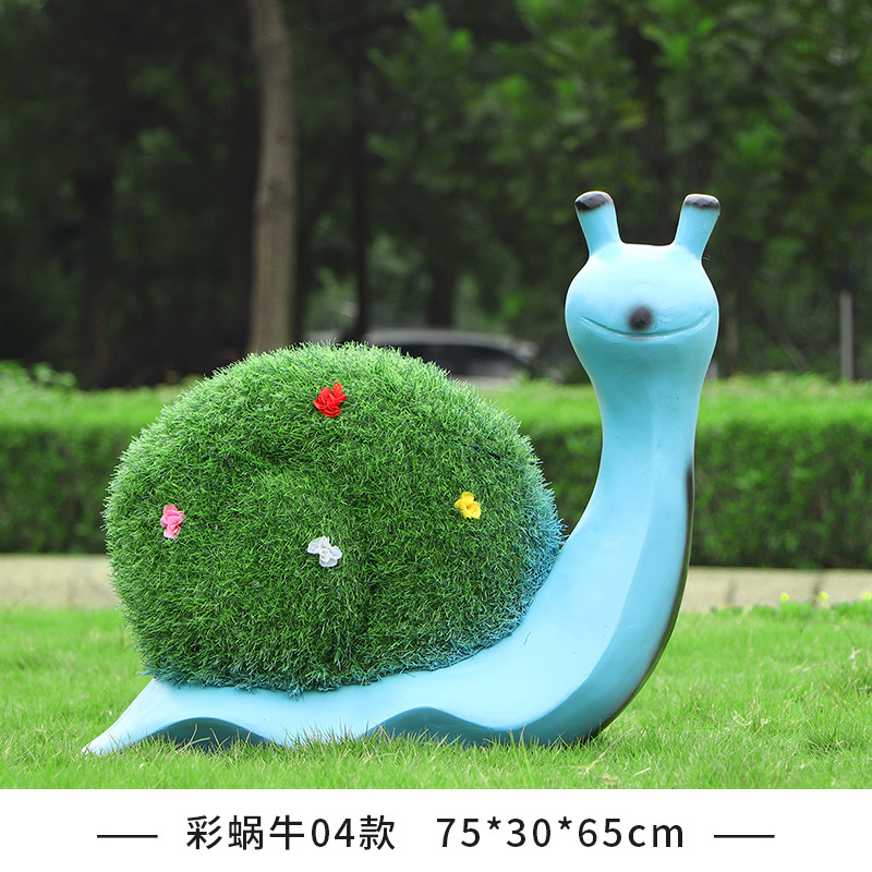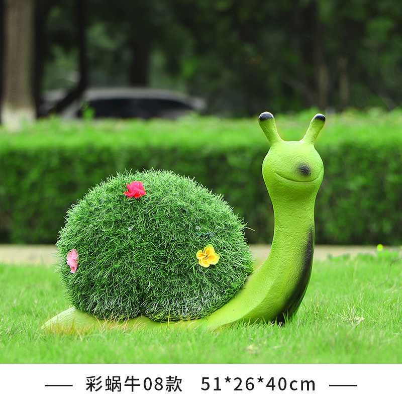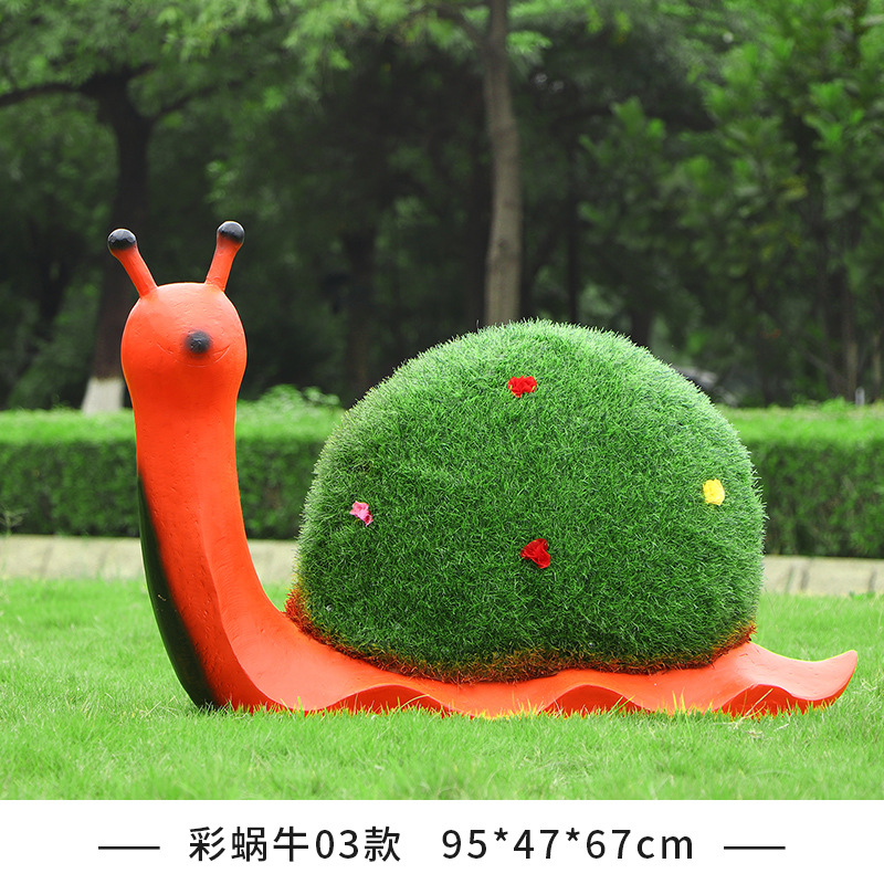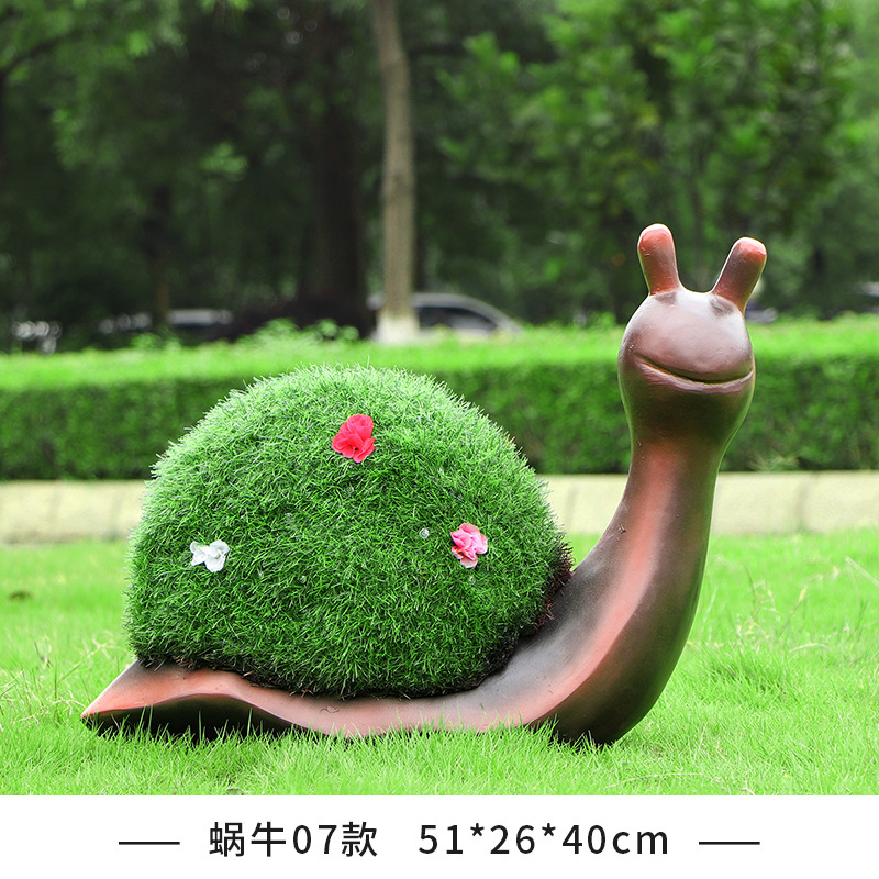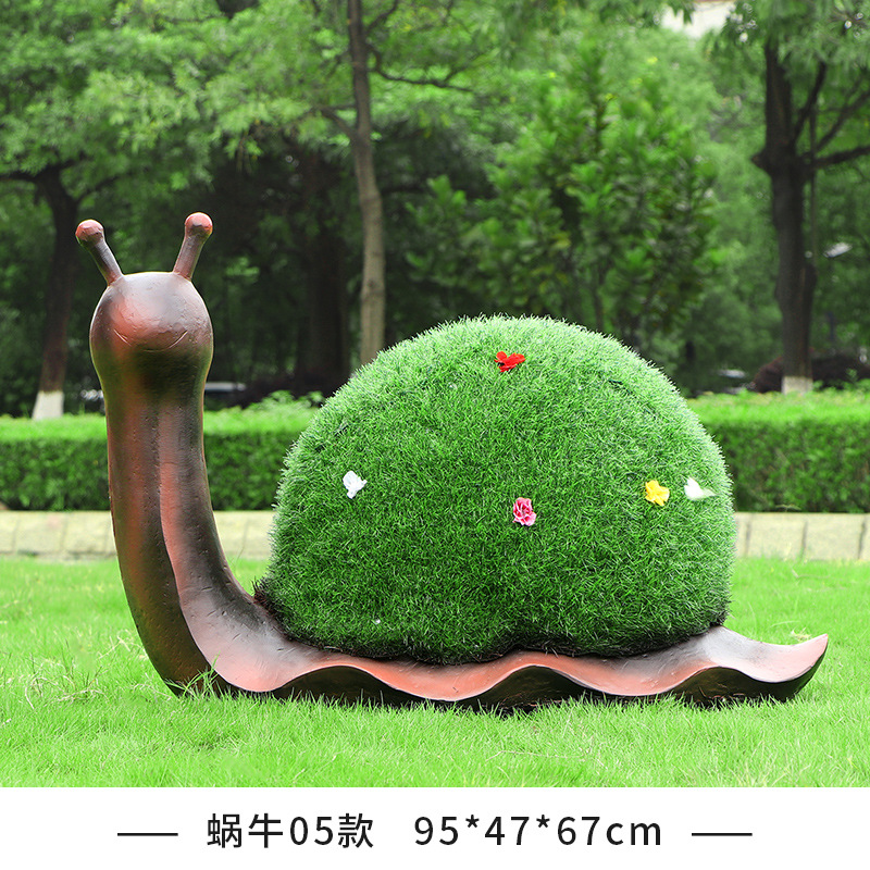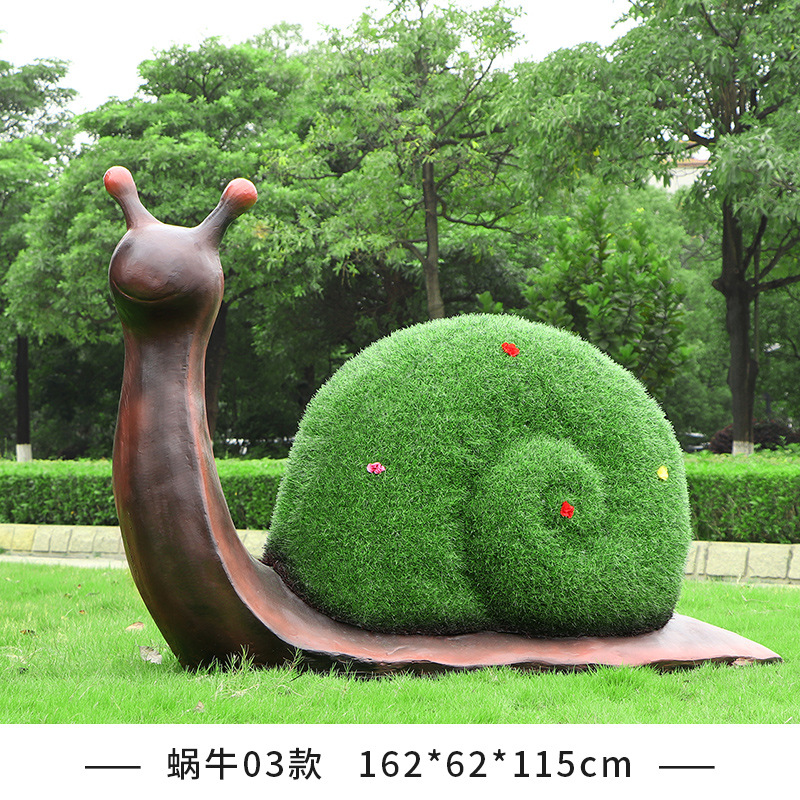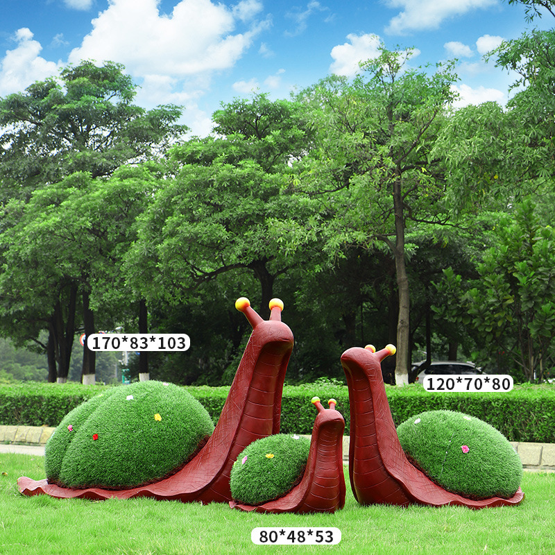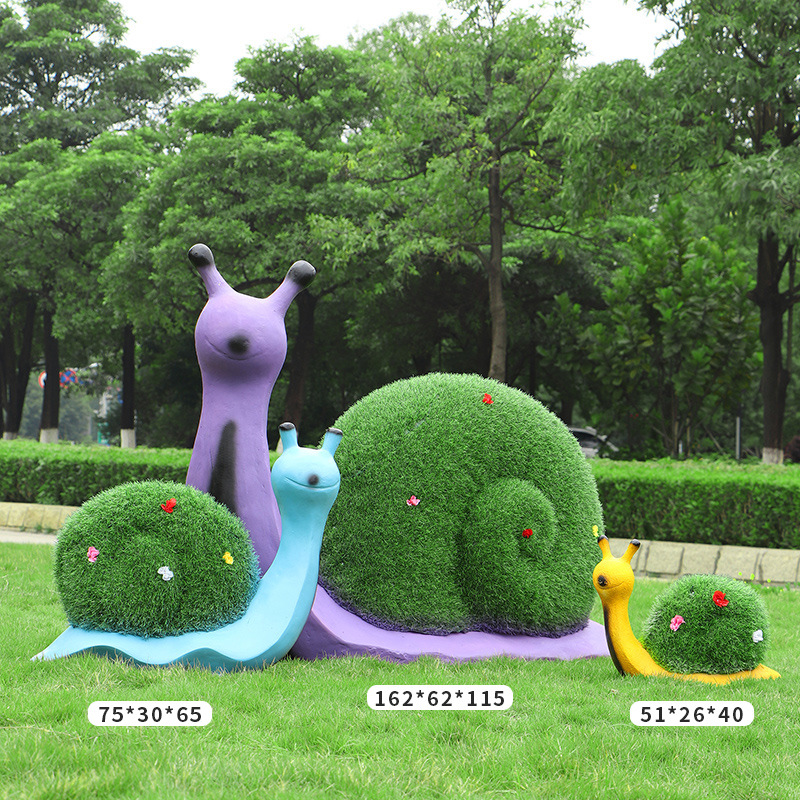 야외 녹색 심기 코끼리 달팽이 조각 유리 섬유 강화 플라스틱 잔디 심기 기린 팬더 장식품 판매 부서 멋진 장소 장식스토어 가기