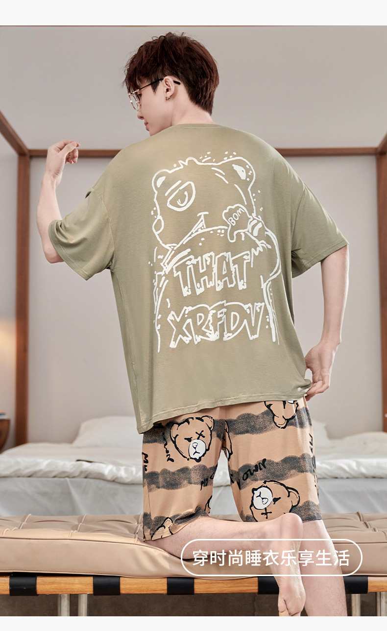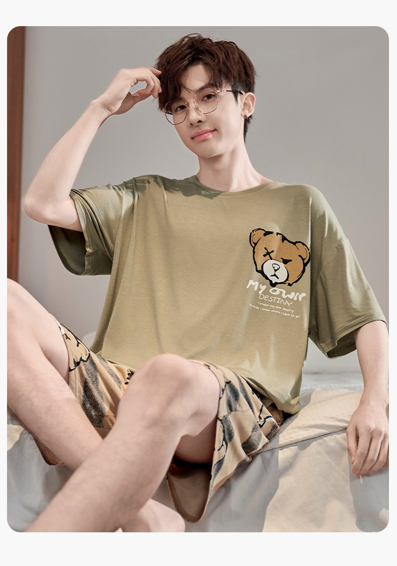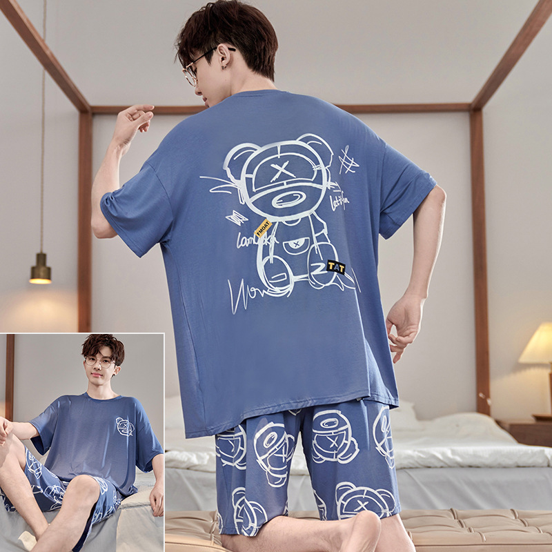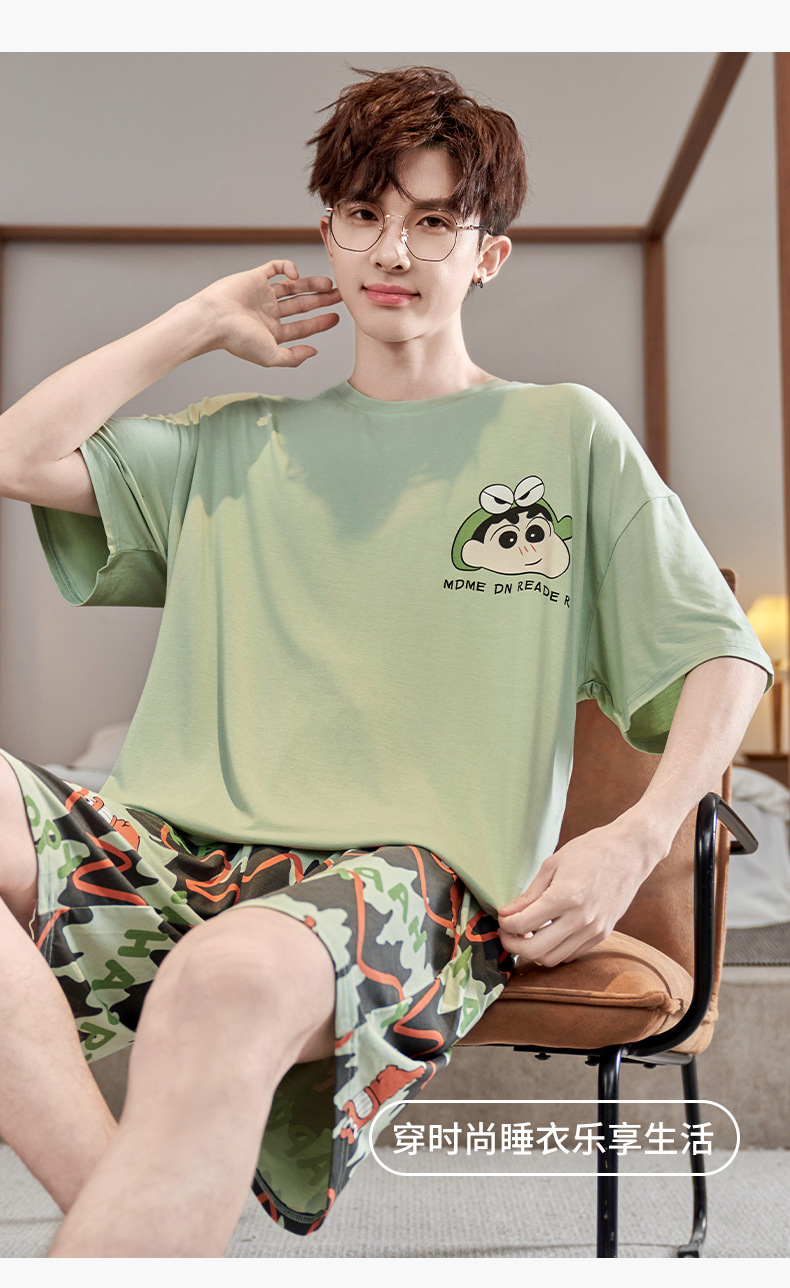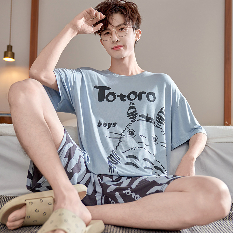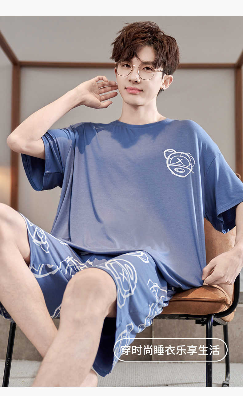 남자 잠옷 남자 여름 반팔 모달 2025 새 여름 청소년 쿨 홈 의류 반바지 세트