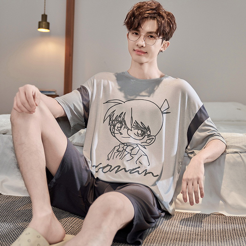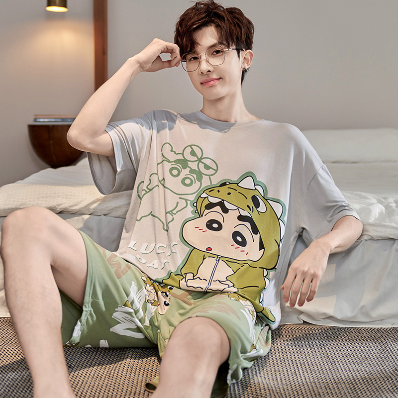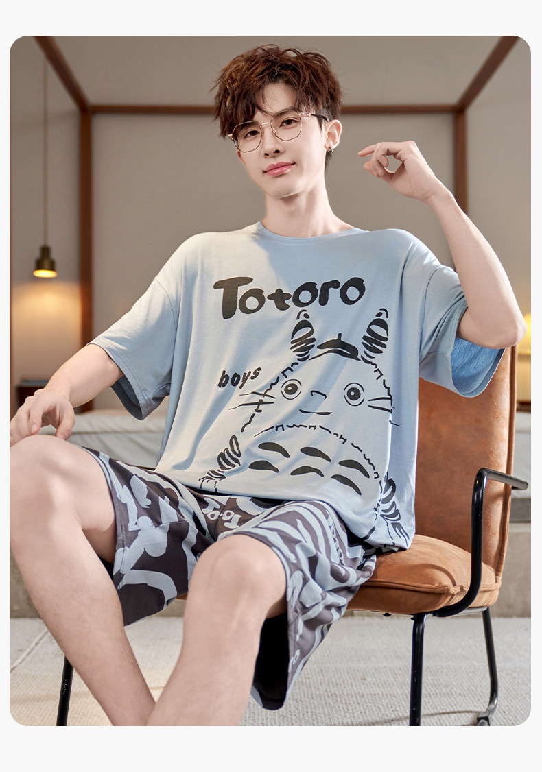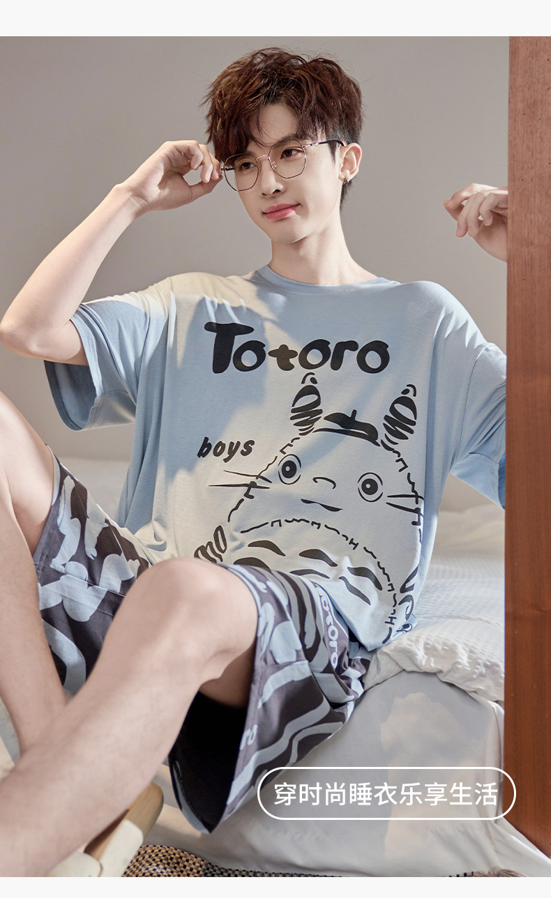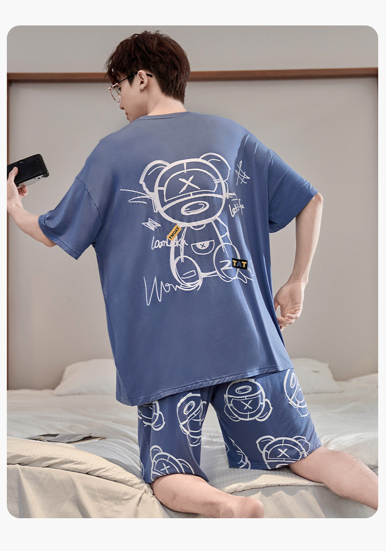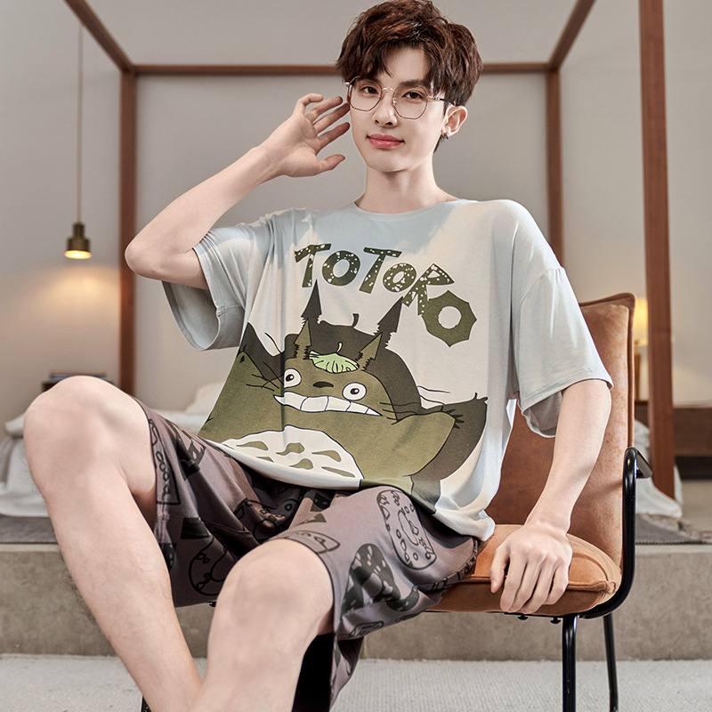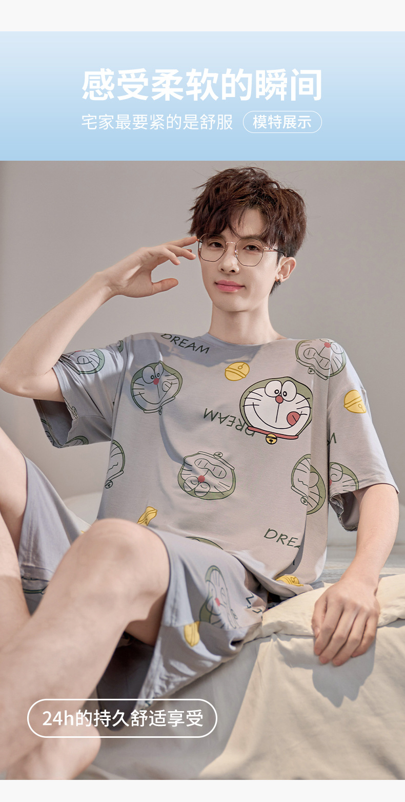 남자 잠옷 남자 여름 반팔 모달 2025 새 여름 청소년 쿨 홈 의류 반바지 세트