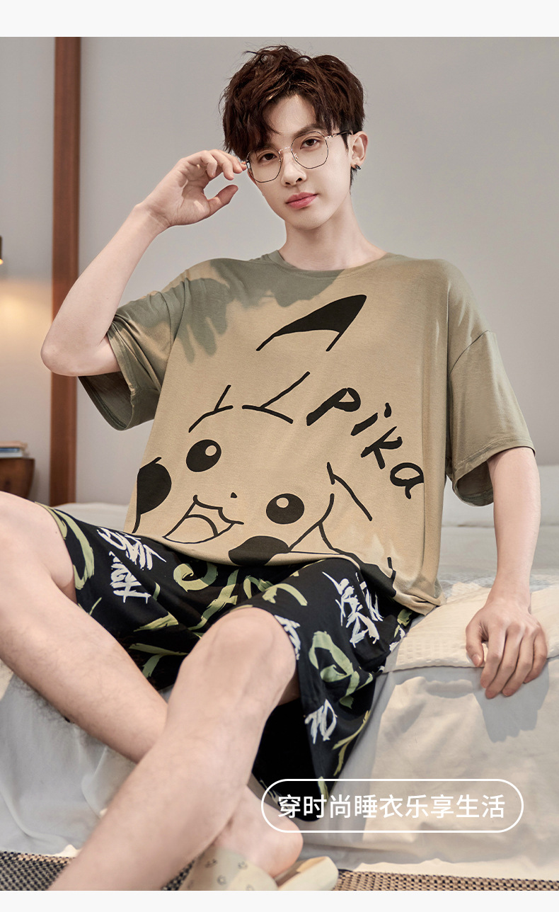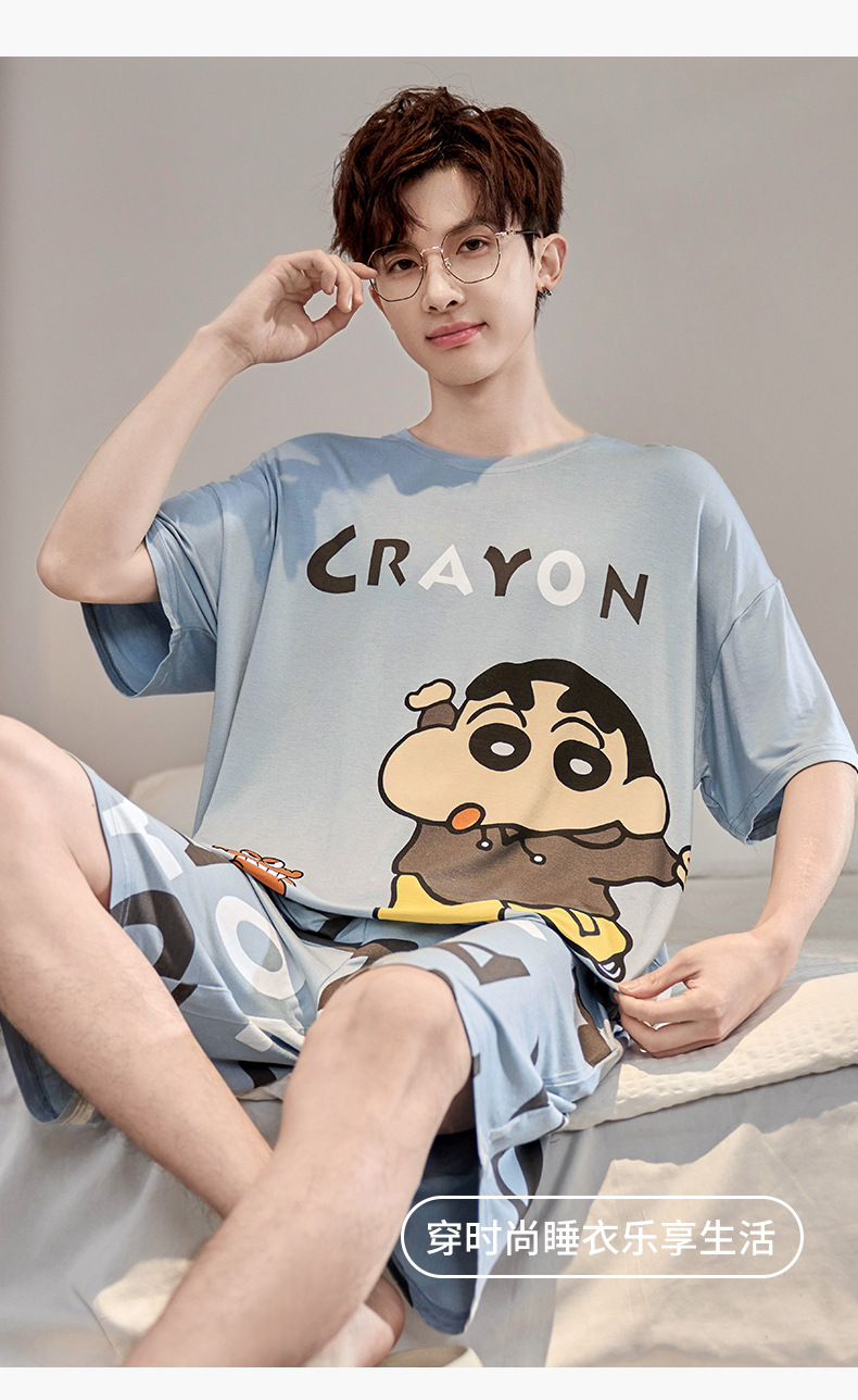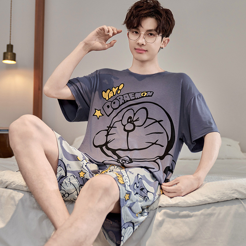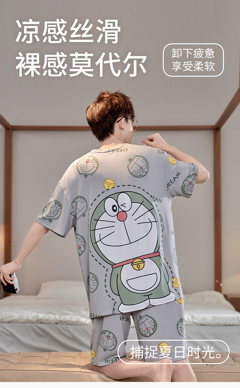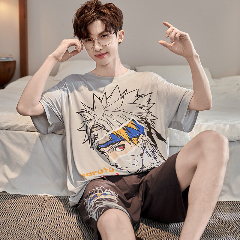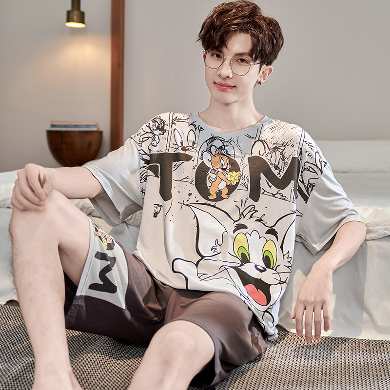 남자 잠옷 남자 여름 반팔 모달 2025 새 여름 청소년 쿨 홈 의류 반바지 세트