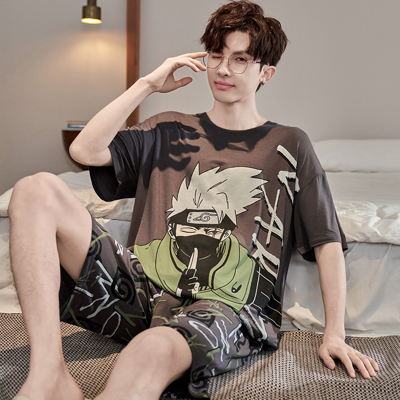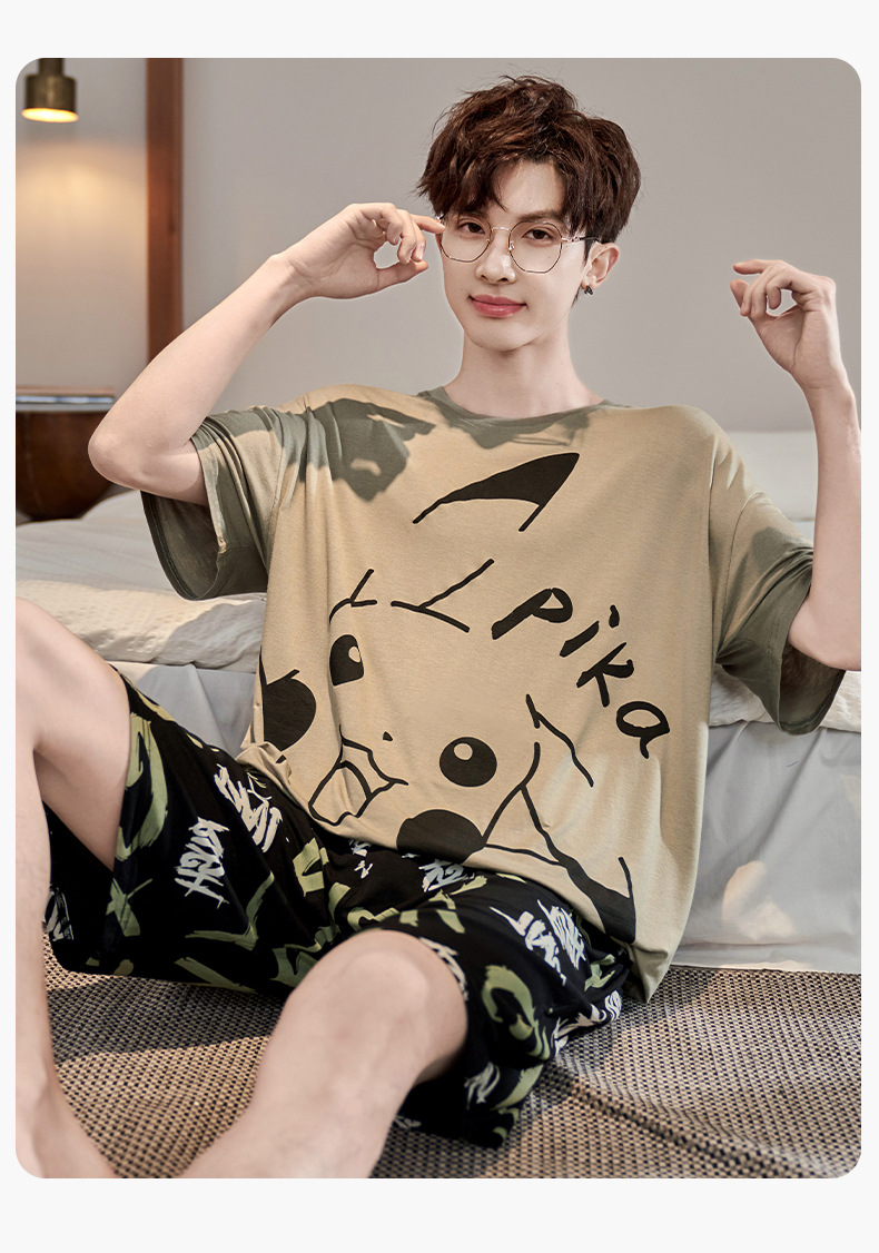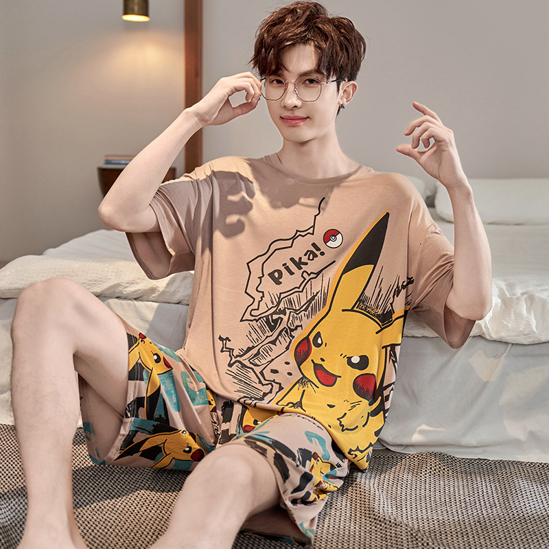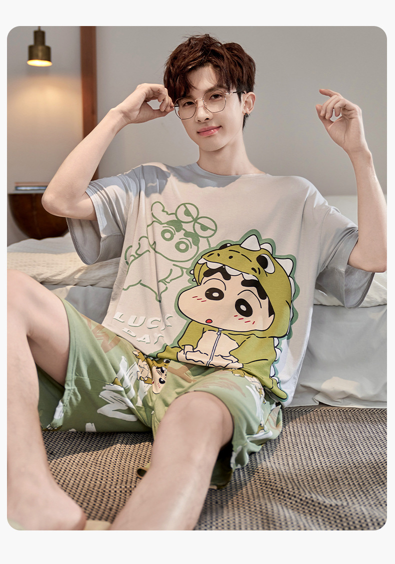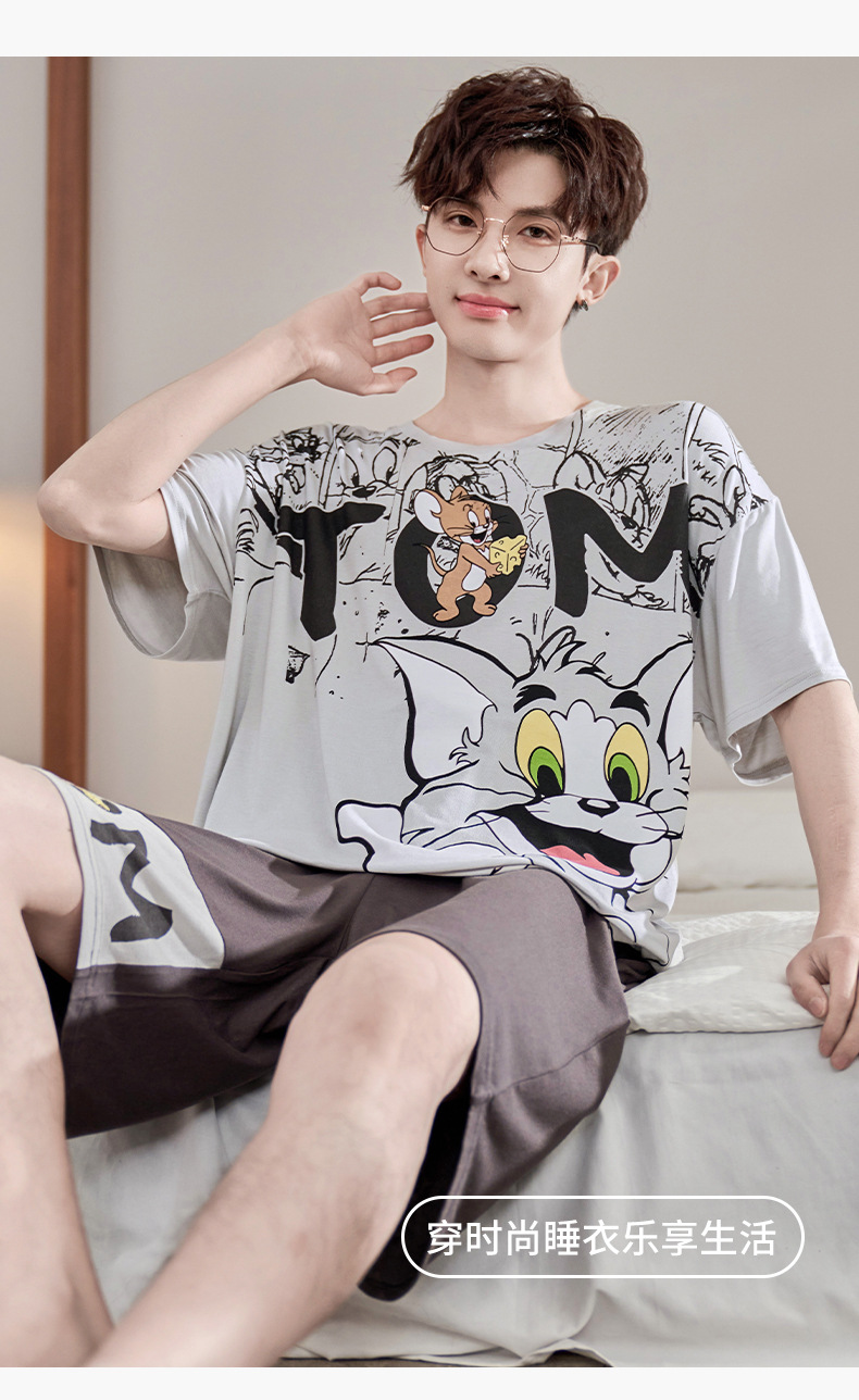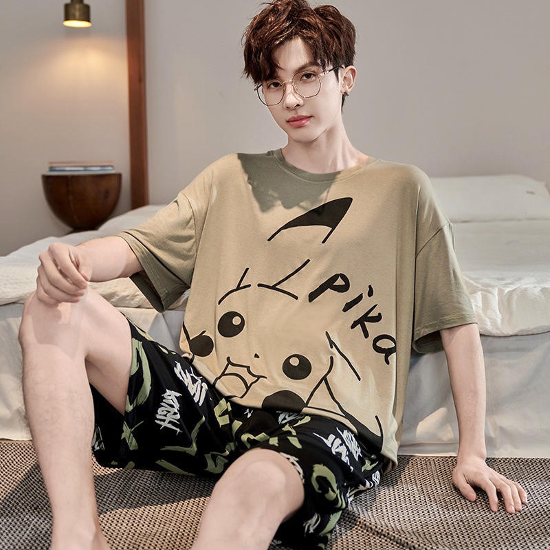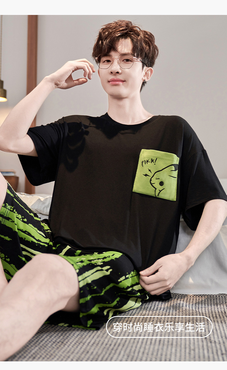남자 잠옷 남자 여름 반팔 모달 2025 새 여름 청소년 쿨 홈 의류 반바지 세트