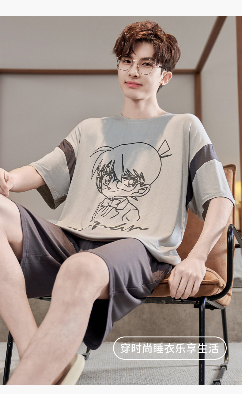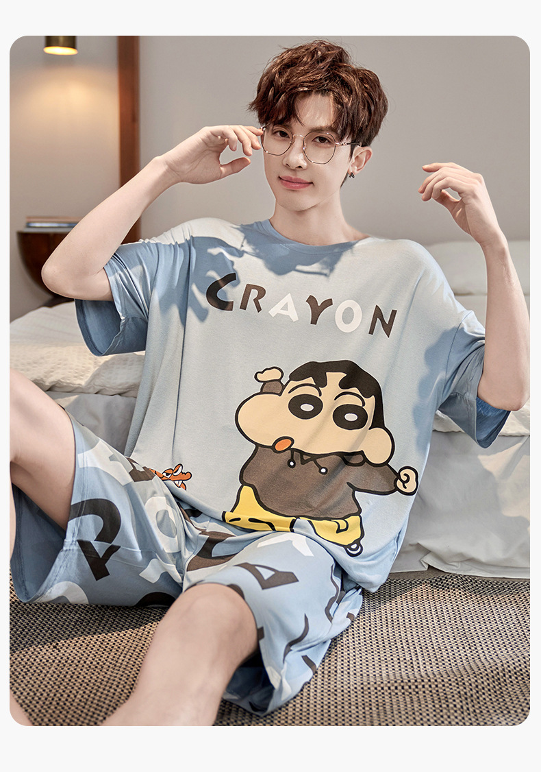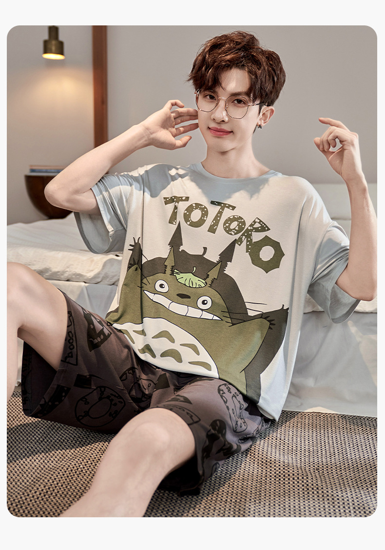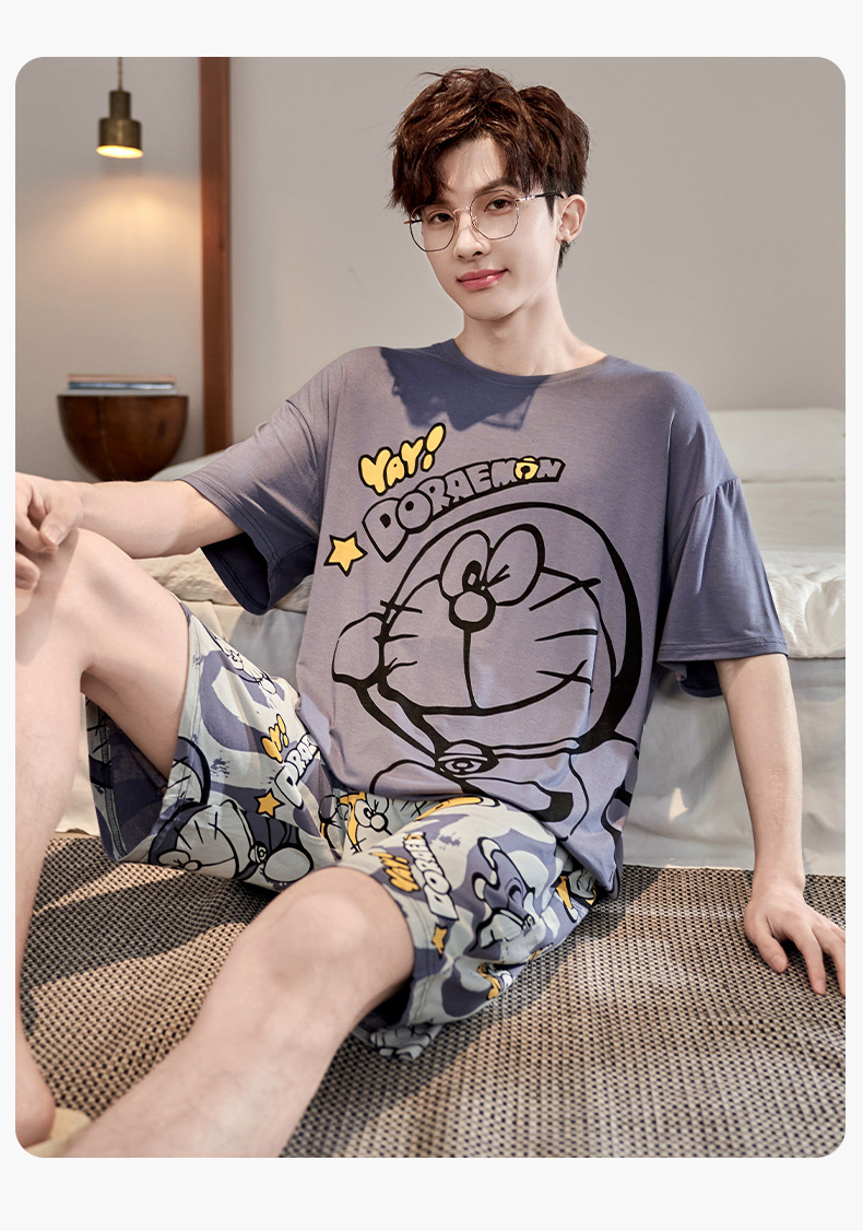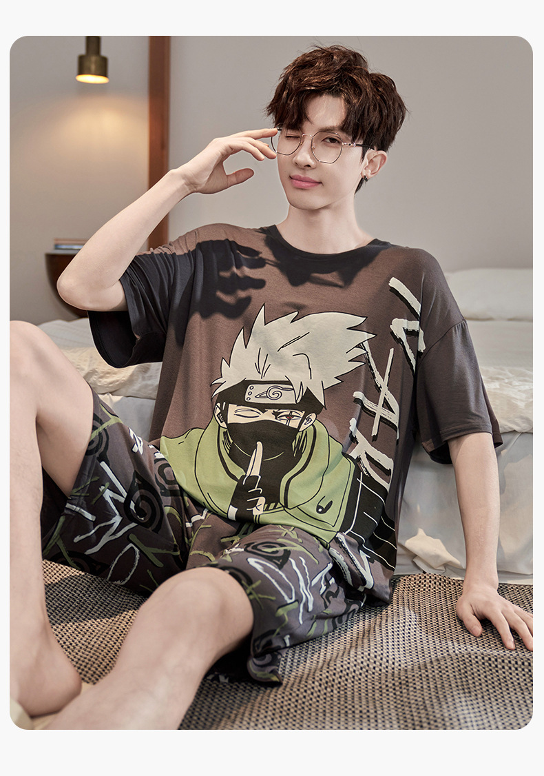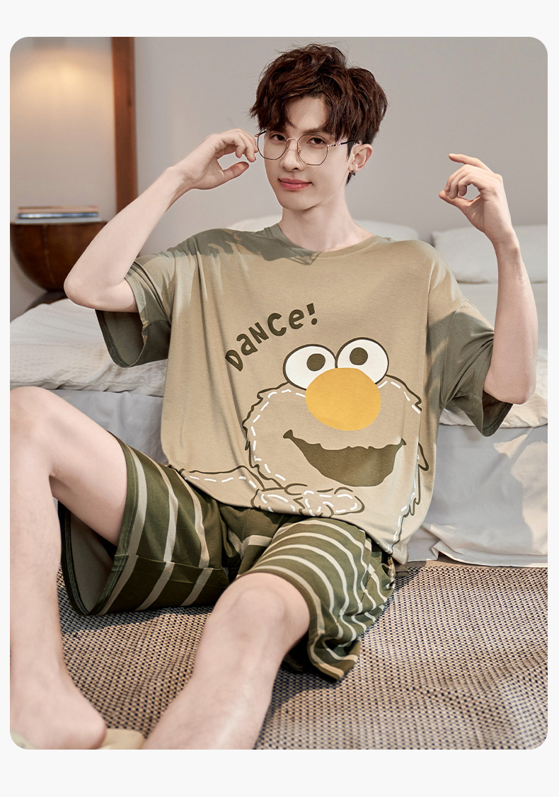 남자 잠옷 남자 여름 반팔 모달 2025 새 여름 청소년 쿨 홈 의류 반바지 세트