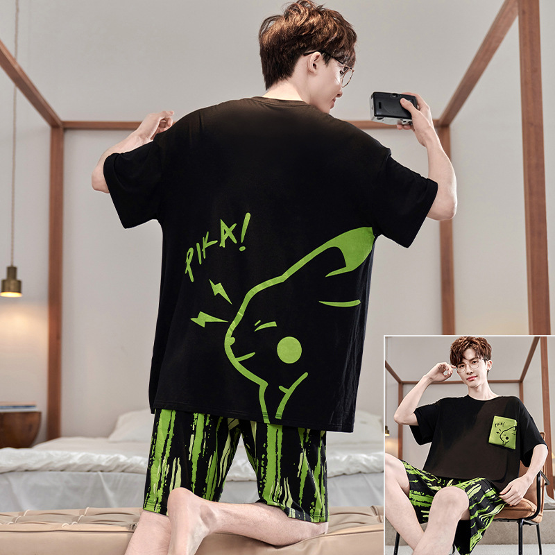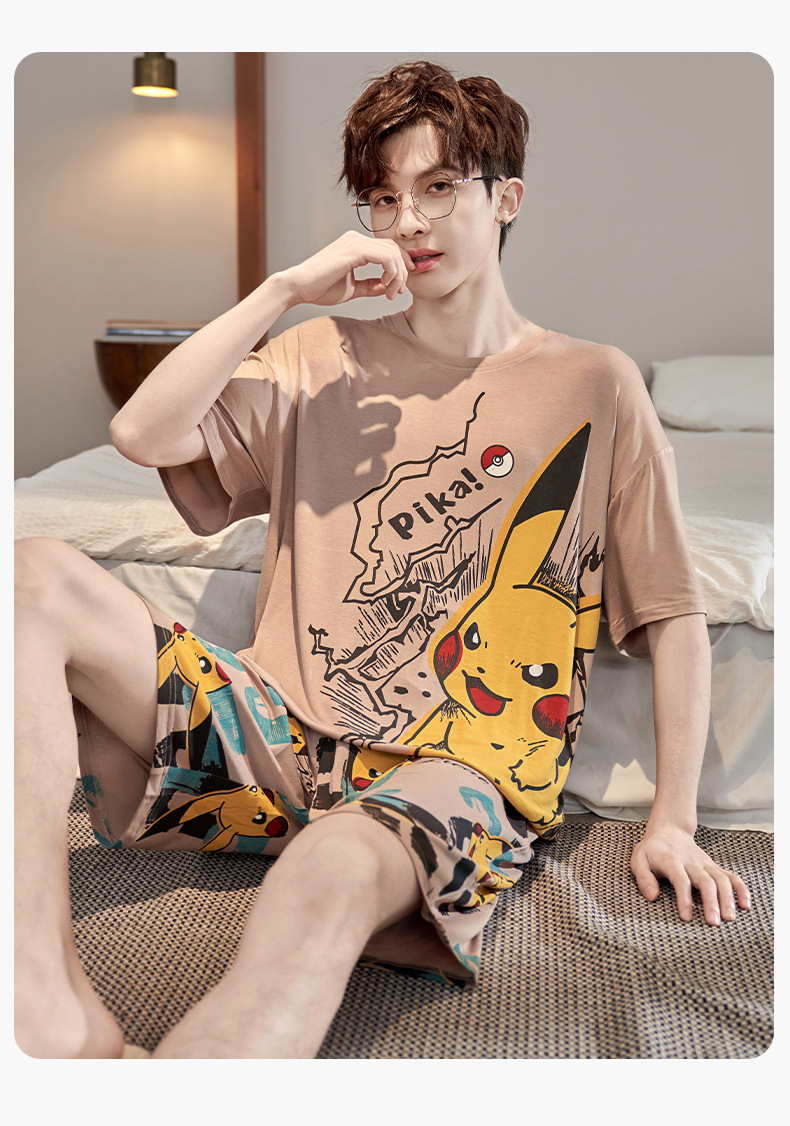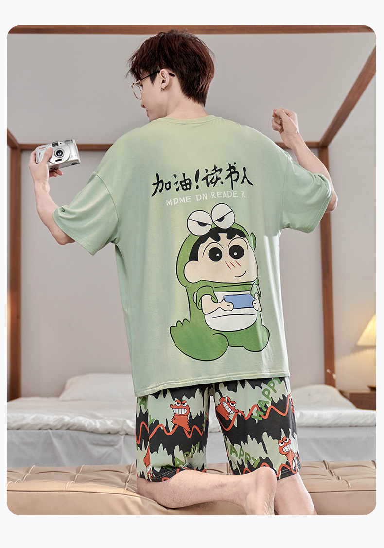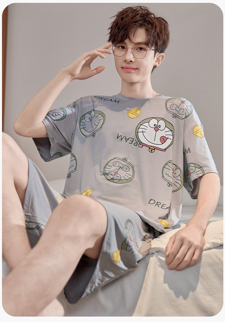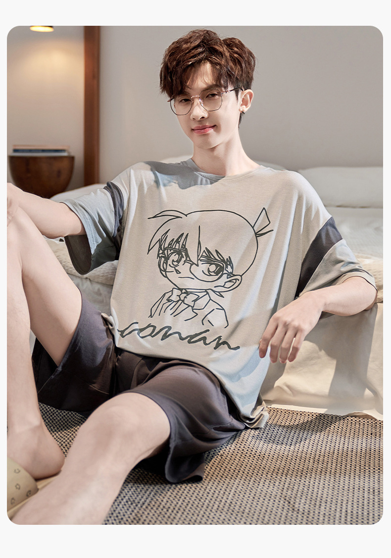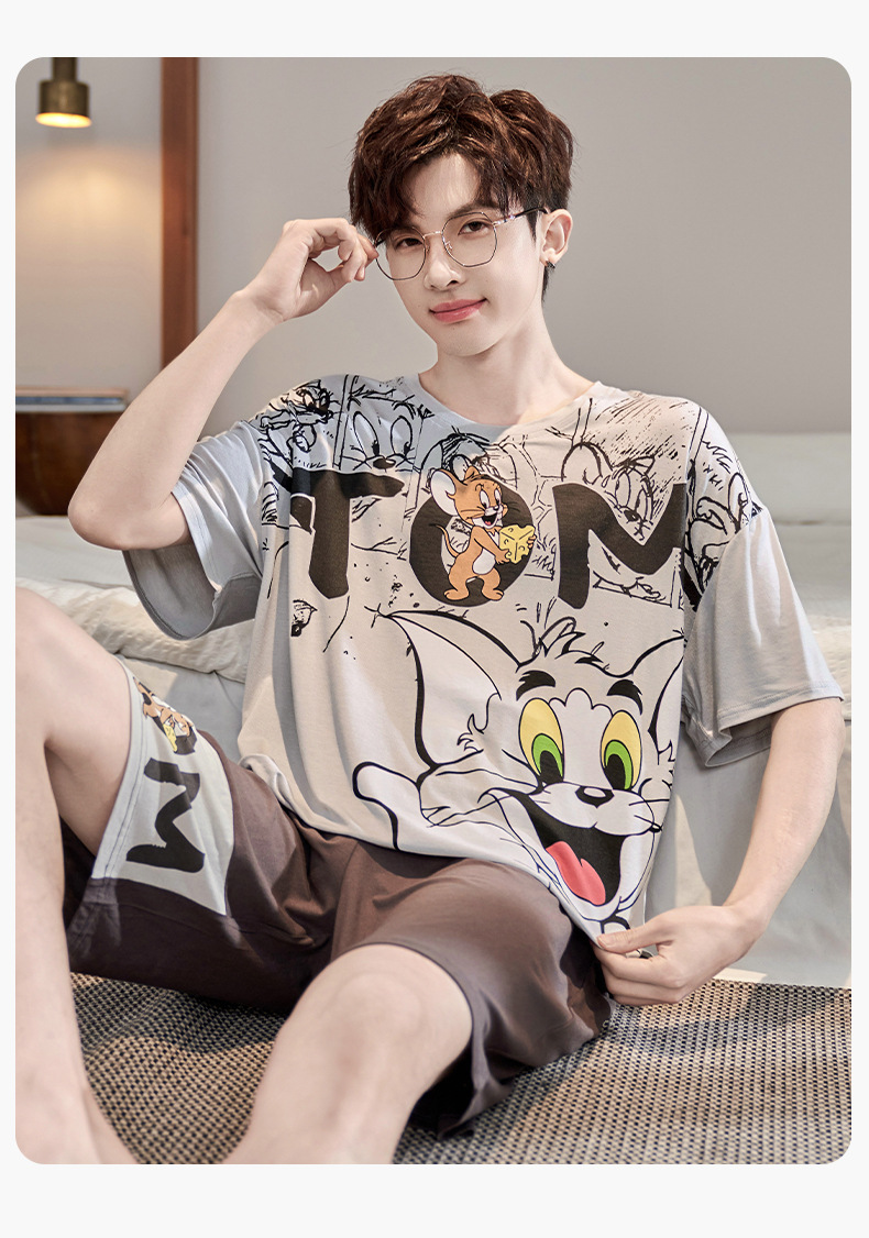 남자 잠옷 남자 여름 반팔 모달 2025 새 여름 청소년 쿨 홈 의류 반바지 세트
