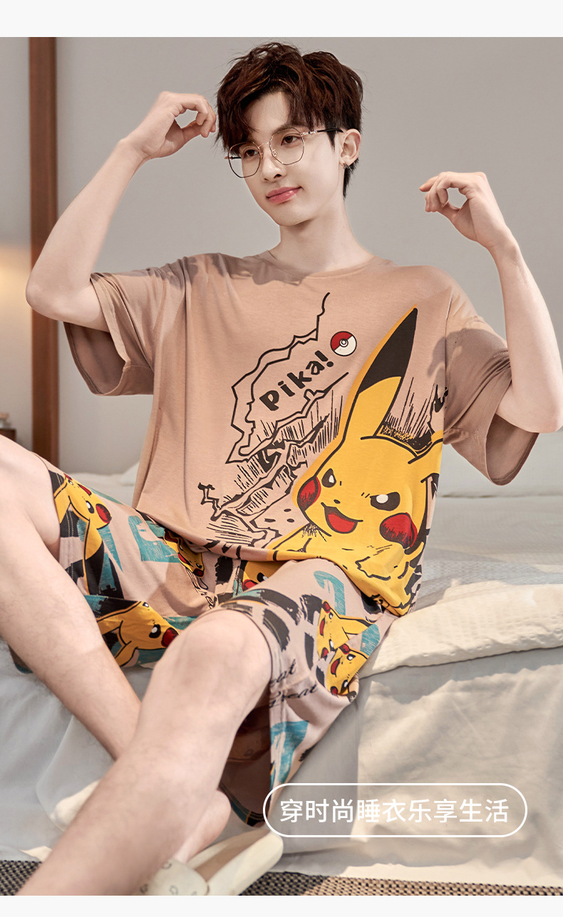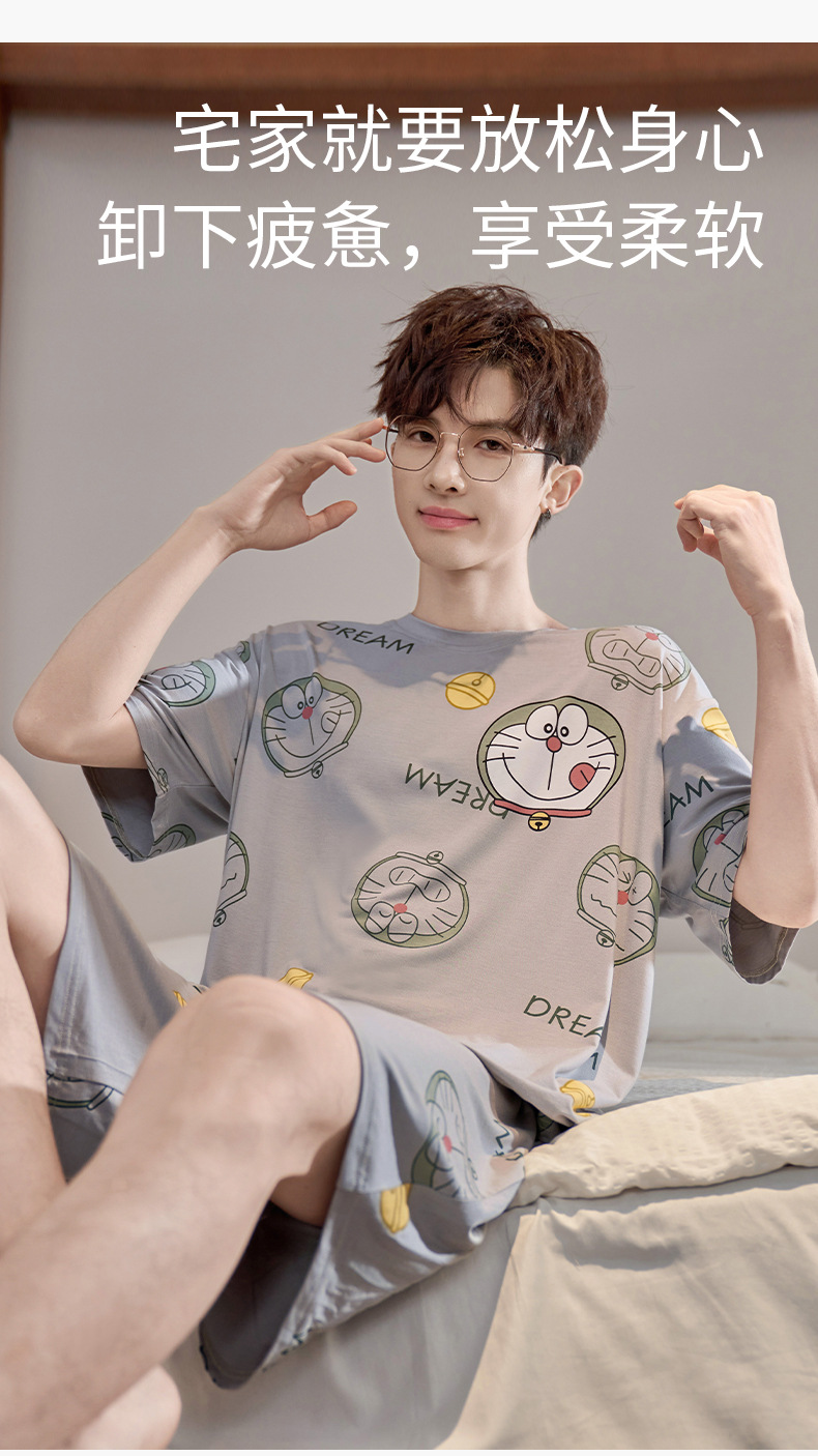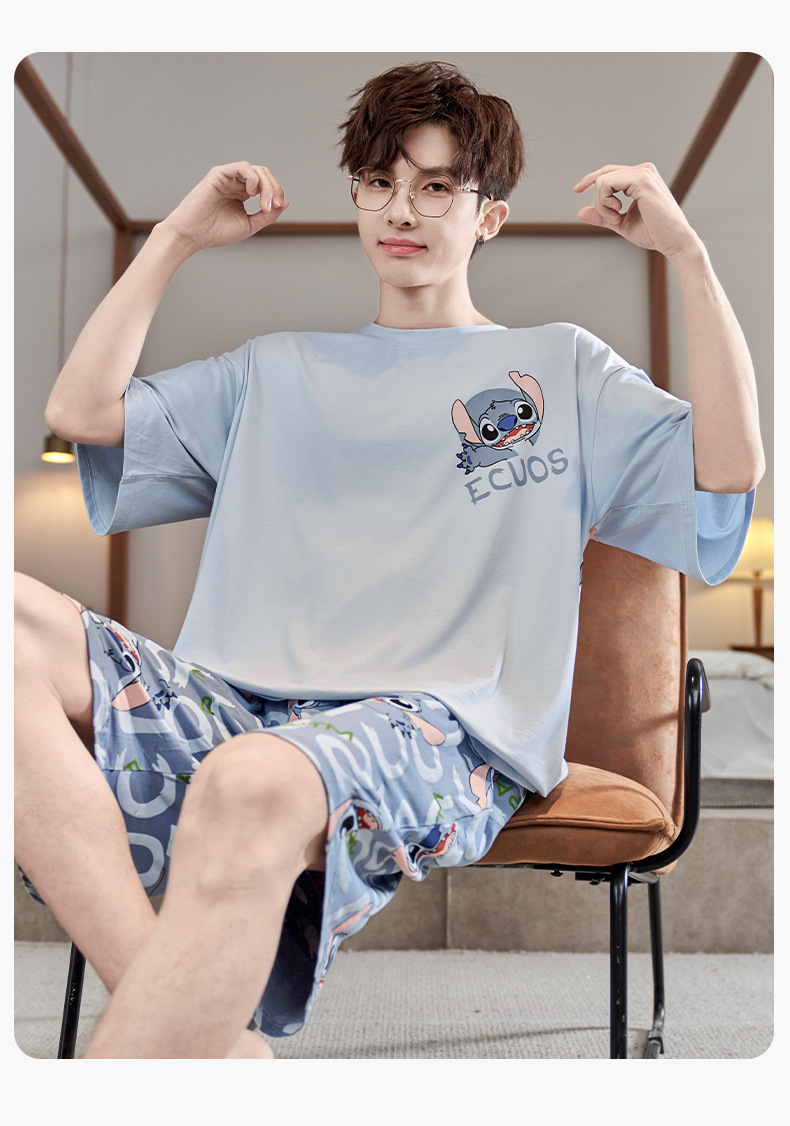 남자 잠옷 남자 여름 반팔 모달 2025 새 여름 청소년 쿨 홈 의류 반바지 세트스토어 가기