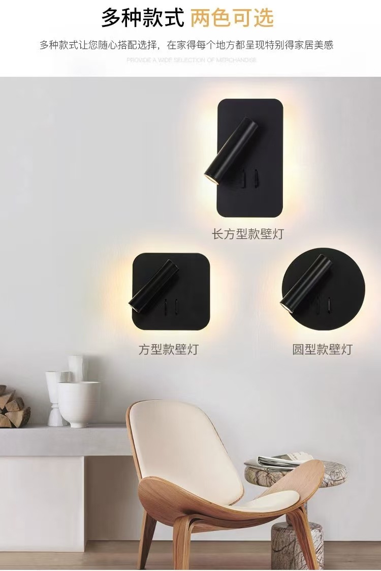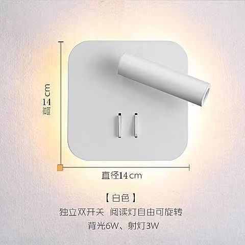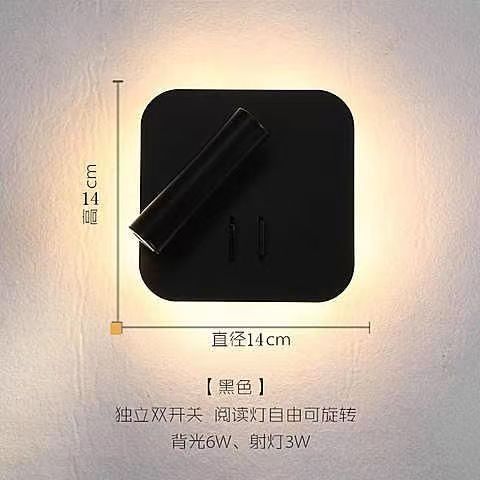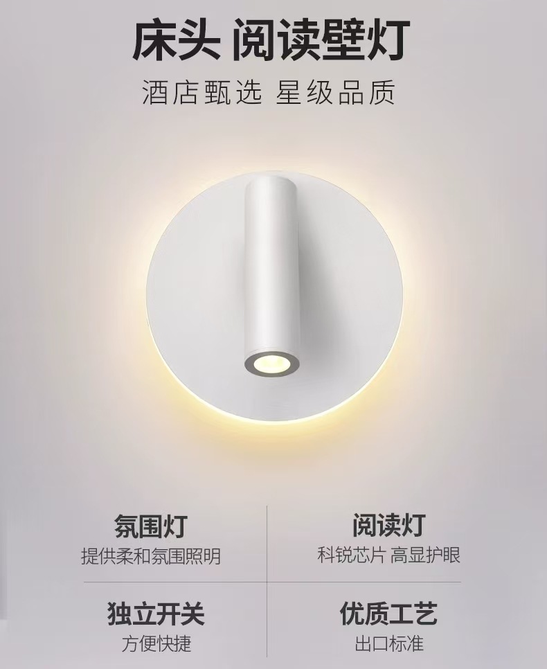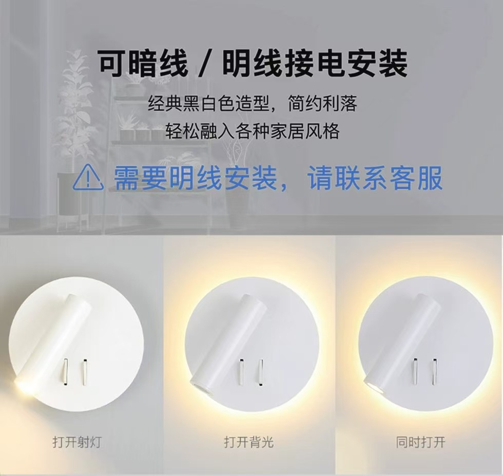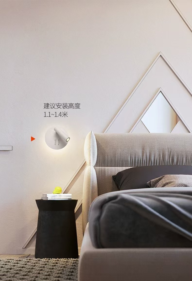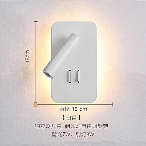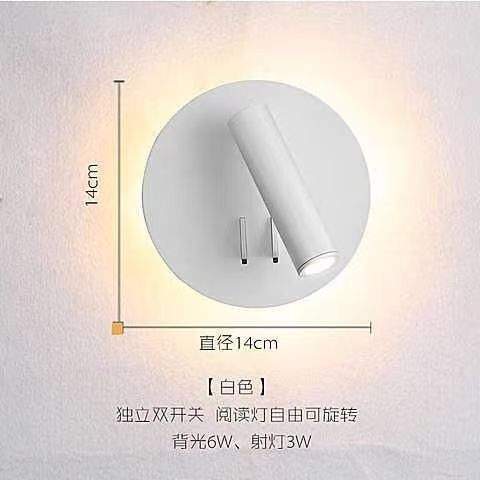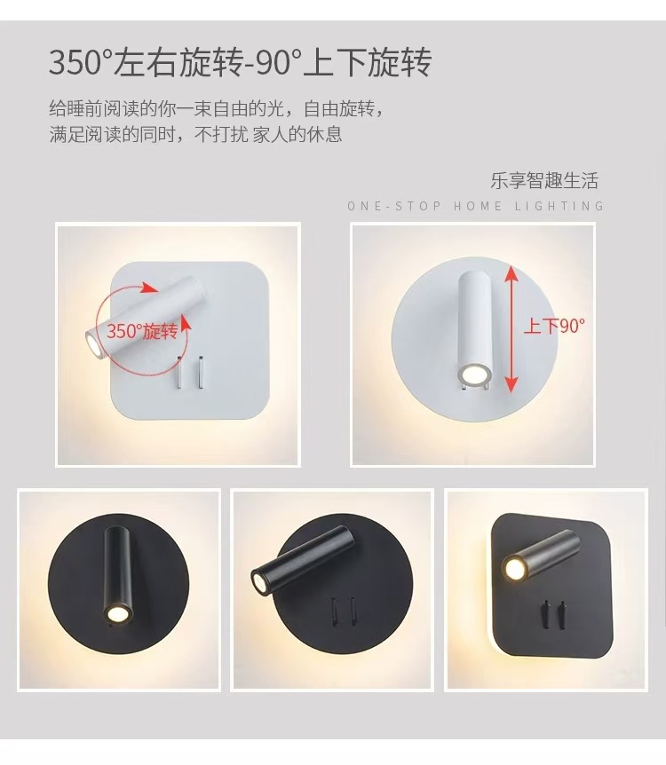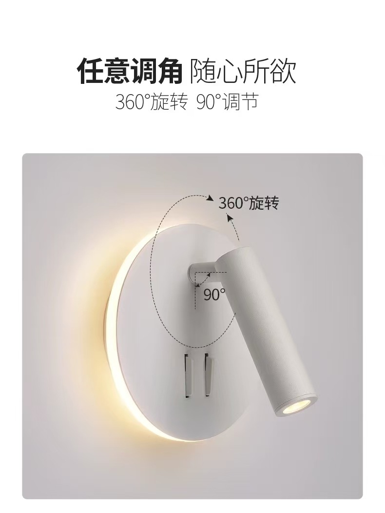 독서 벽 램프 led 더블 스위치 350도 회전 원형 호텔 침실 머리맡 배경 벽 분위기 램프 실내