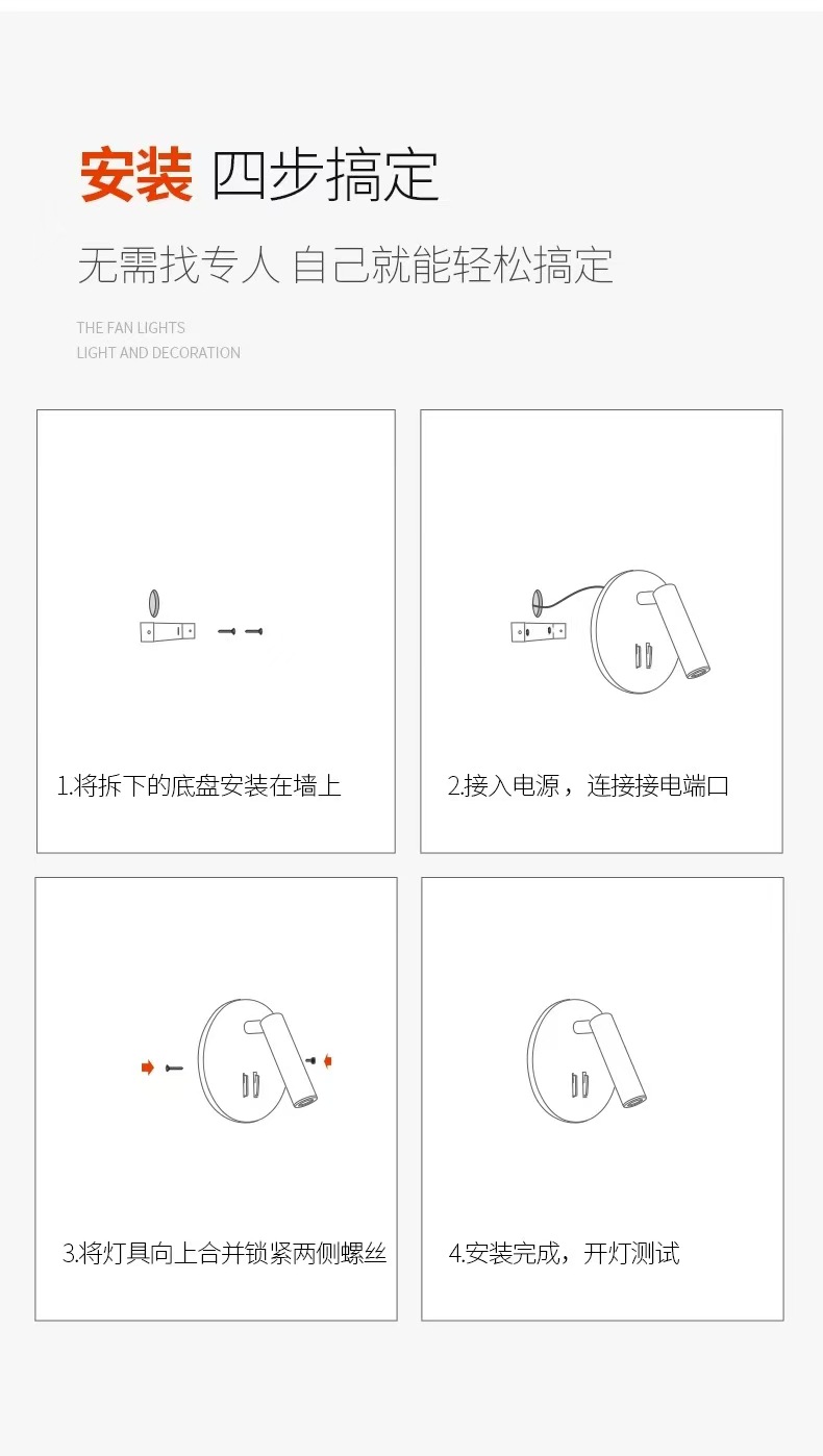 독서 벽 램프 led 더블 스위치 350도 회전 원형 호텔 침실 머리맡 배경 벽 분위기 램프 실내스토어 가기