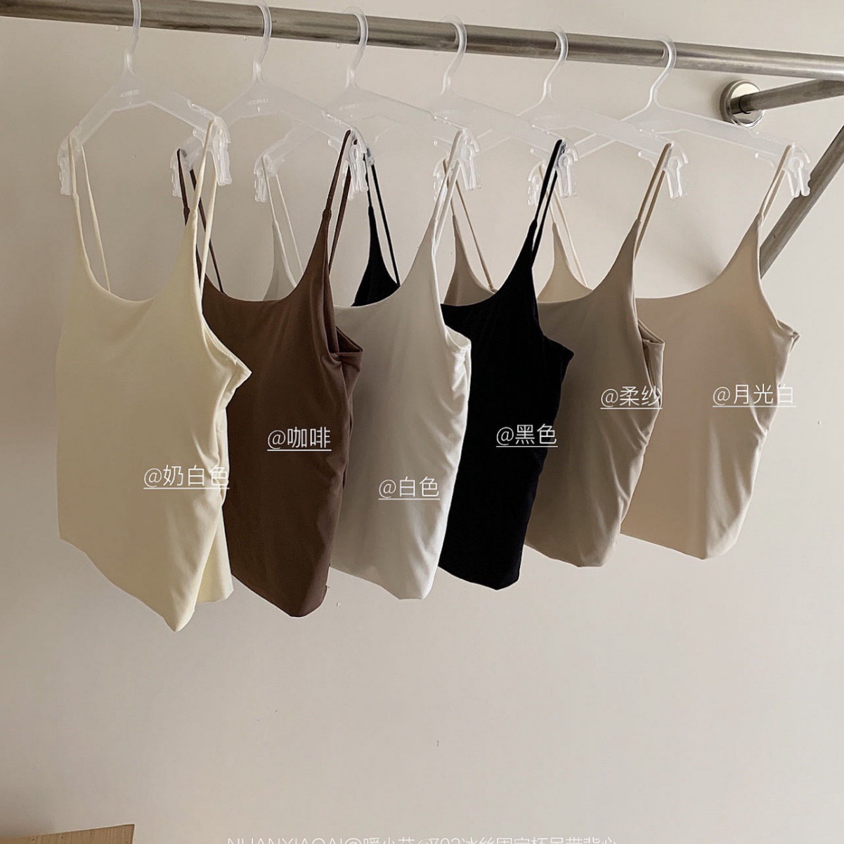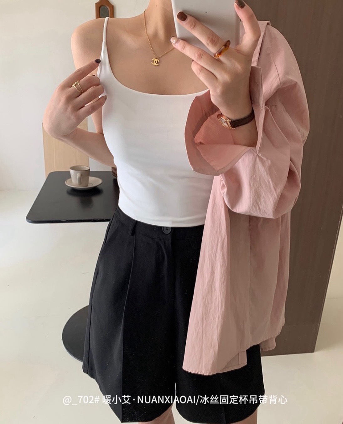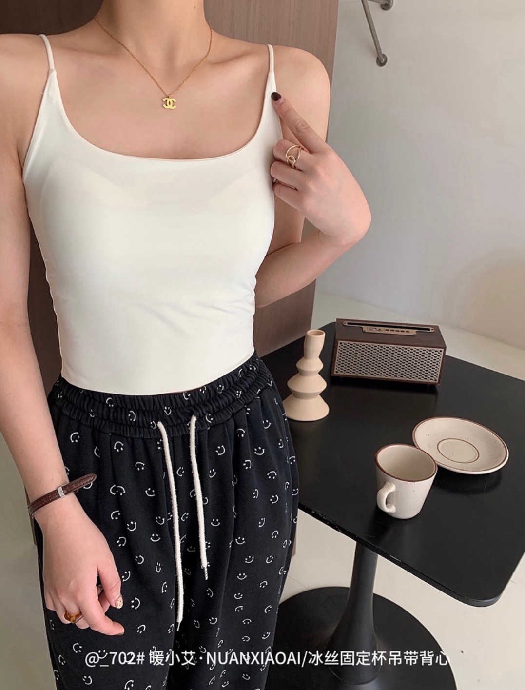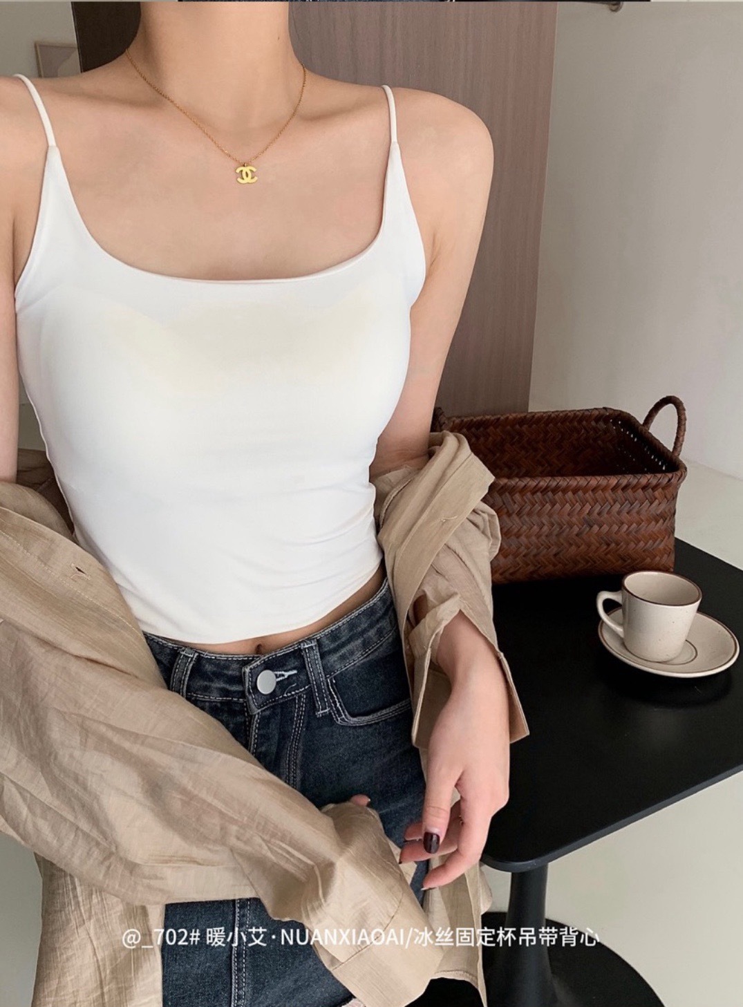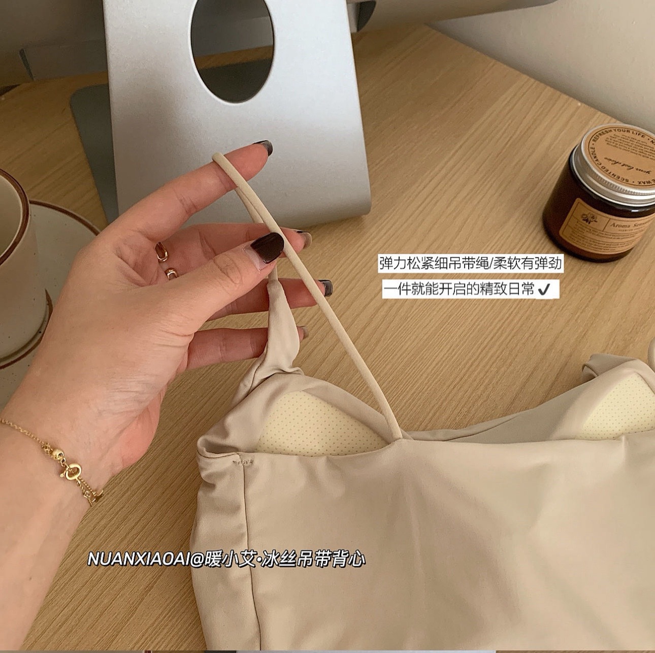 아이스 실크 고정 컵 카미 솔 여자 여름 슬림 핏 슬림 핏 가슴 패드 솔리드 컬러 올 매치 작은 조끼 병아리 민소매스토어 가기