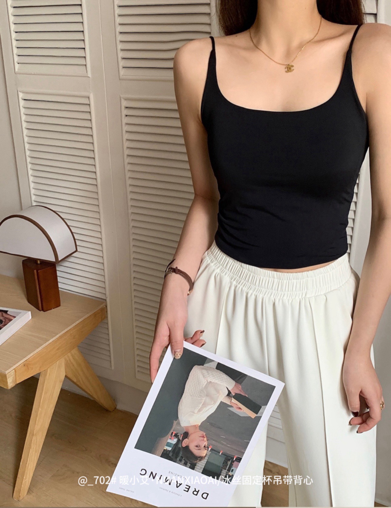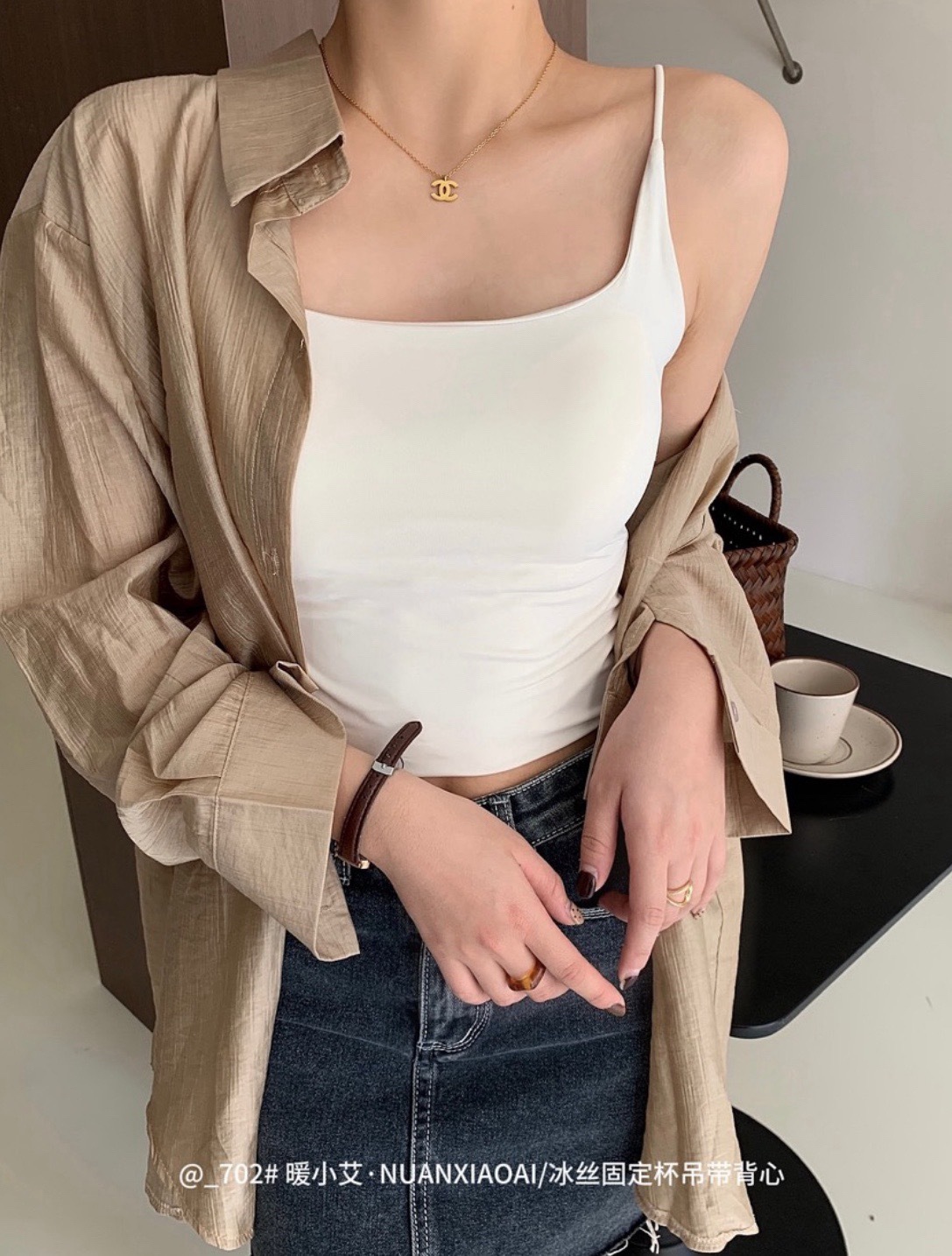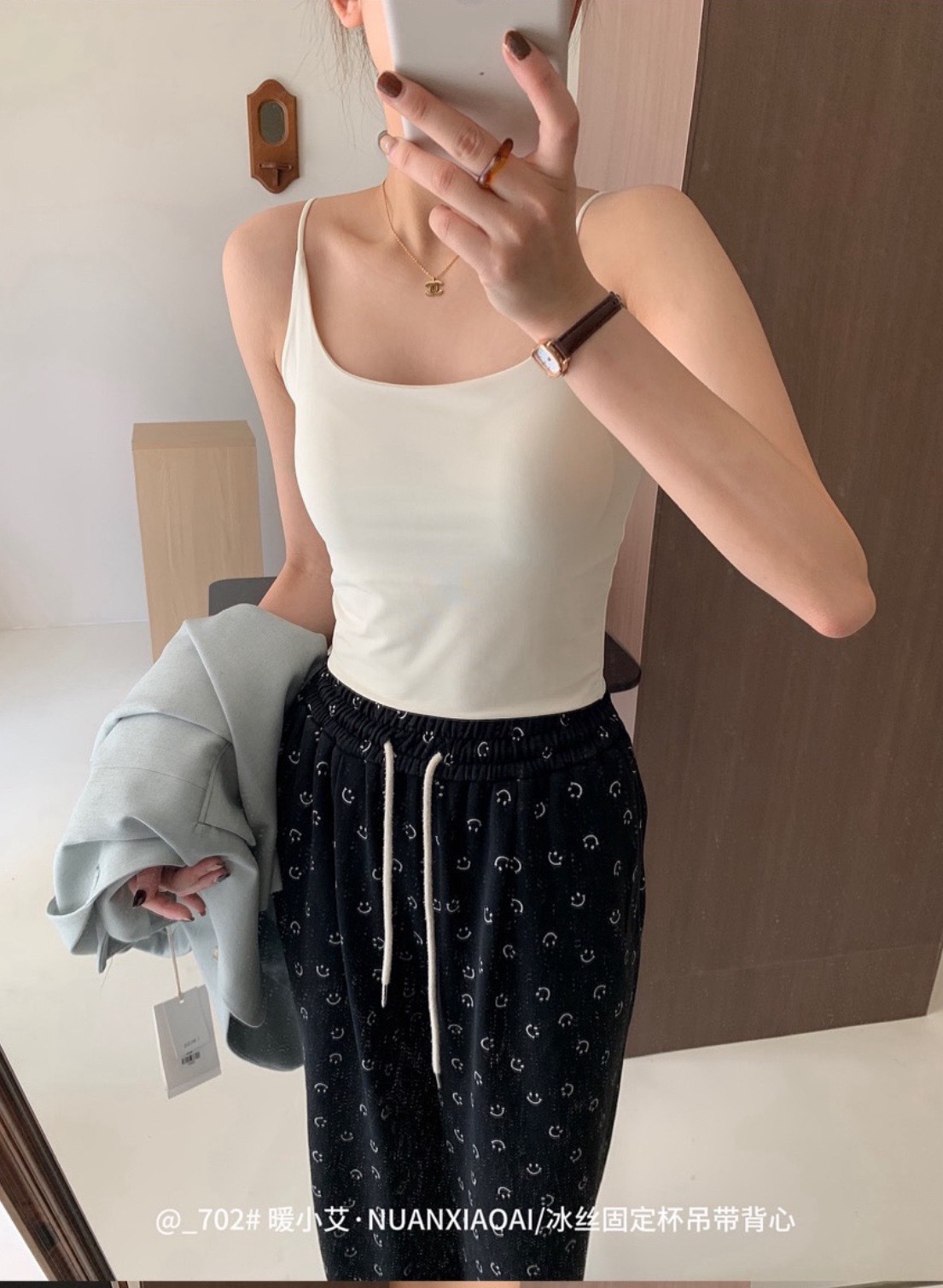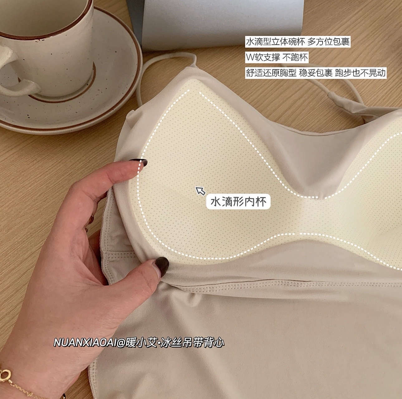 아이스 실크 고정 컵 카미 솔 여자 여름 슬림 핏 슬림 핏 가슴 패드 솔리드 컬러 올 매치 작은 조끼 병아리 민소매스토어 가기