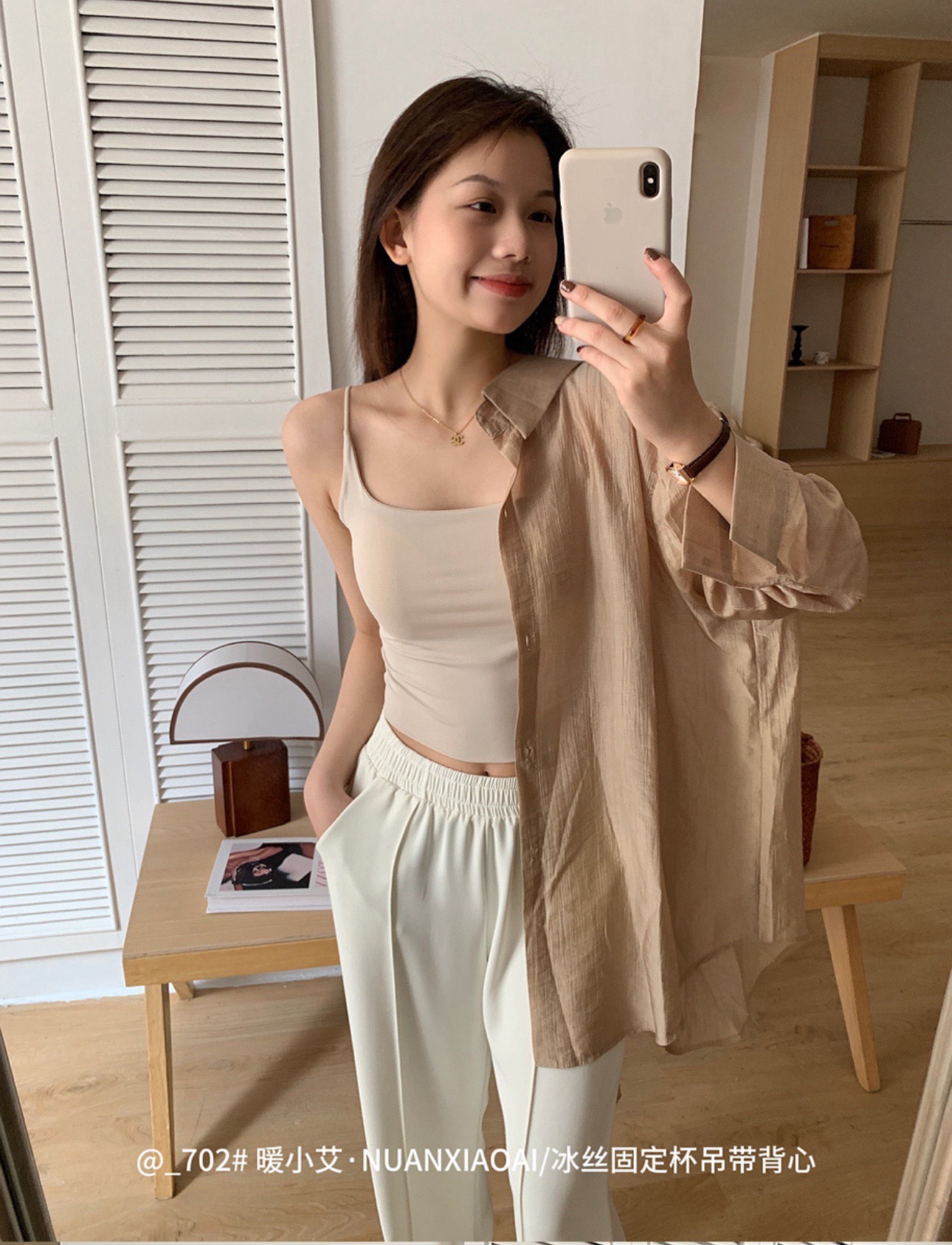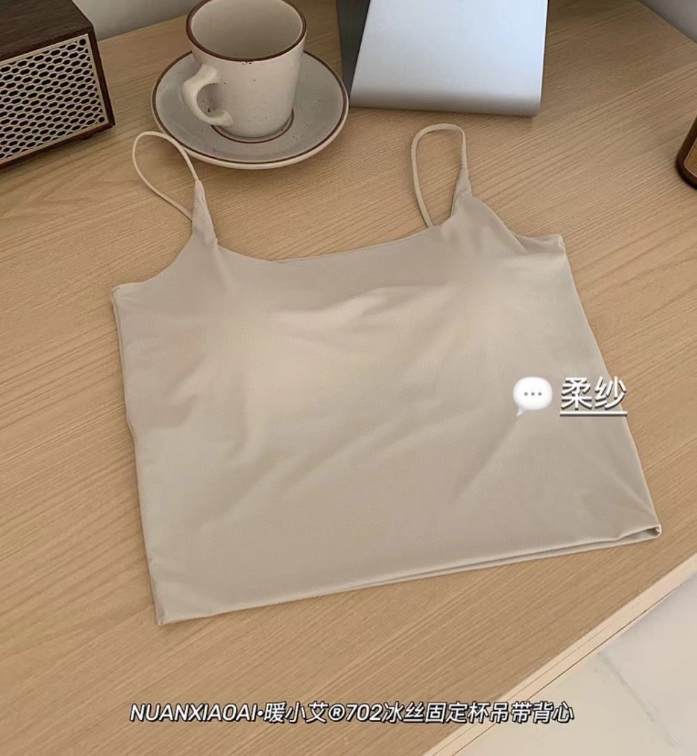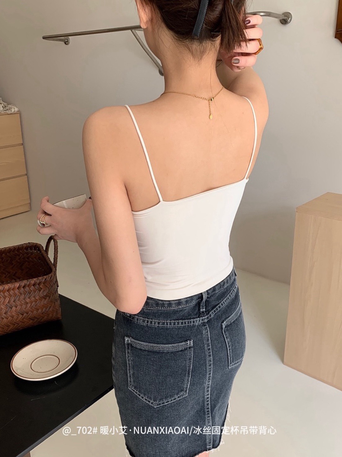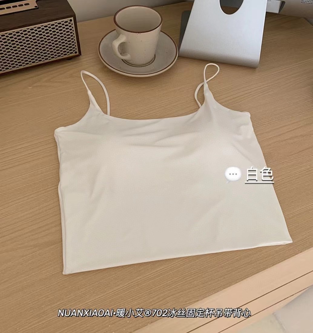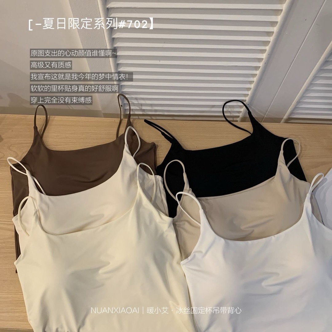 아이스 실크 고정 컵 카미 솔 여자 여름 슬림 핏 슬림 핏 가슴 패드 솔리드 컬러 올 매치 작은 조끼 병아리 민소매스토어 가기