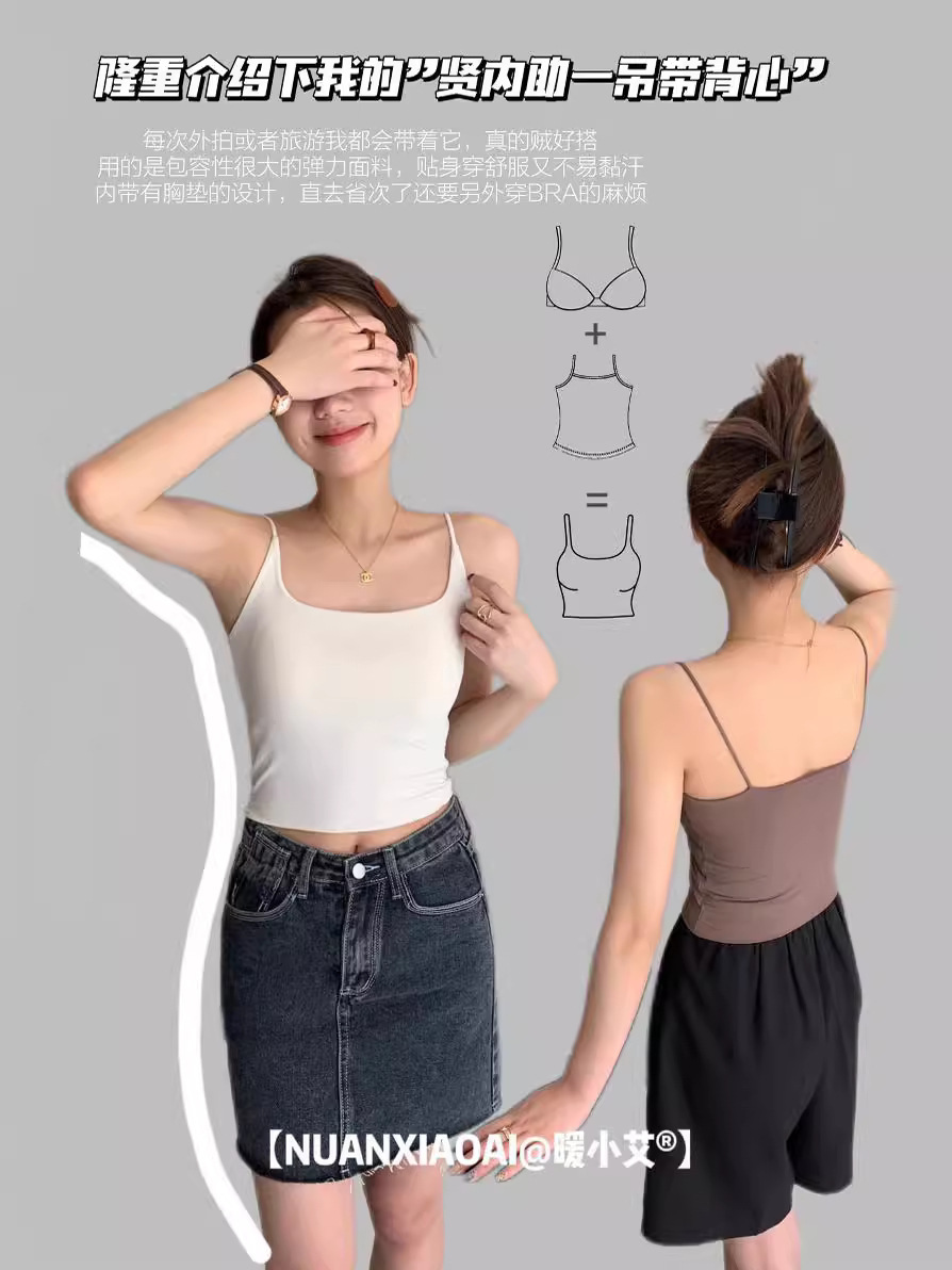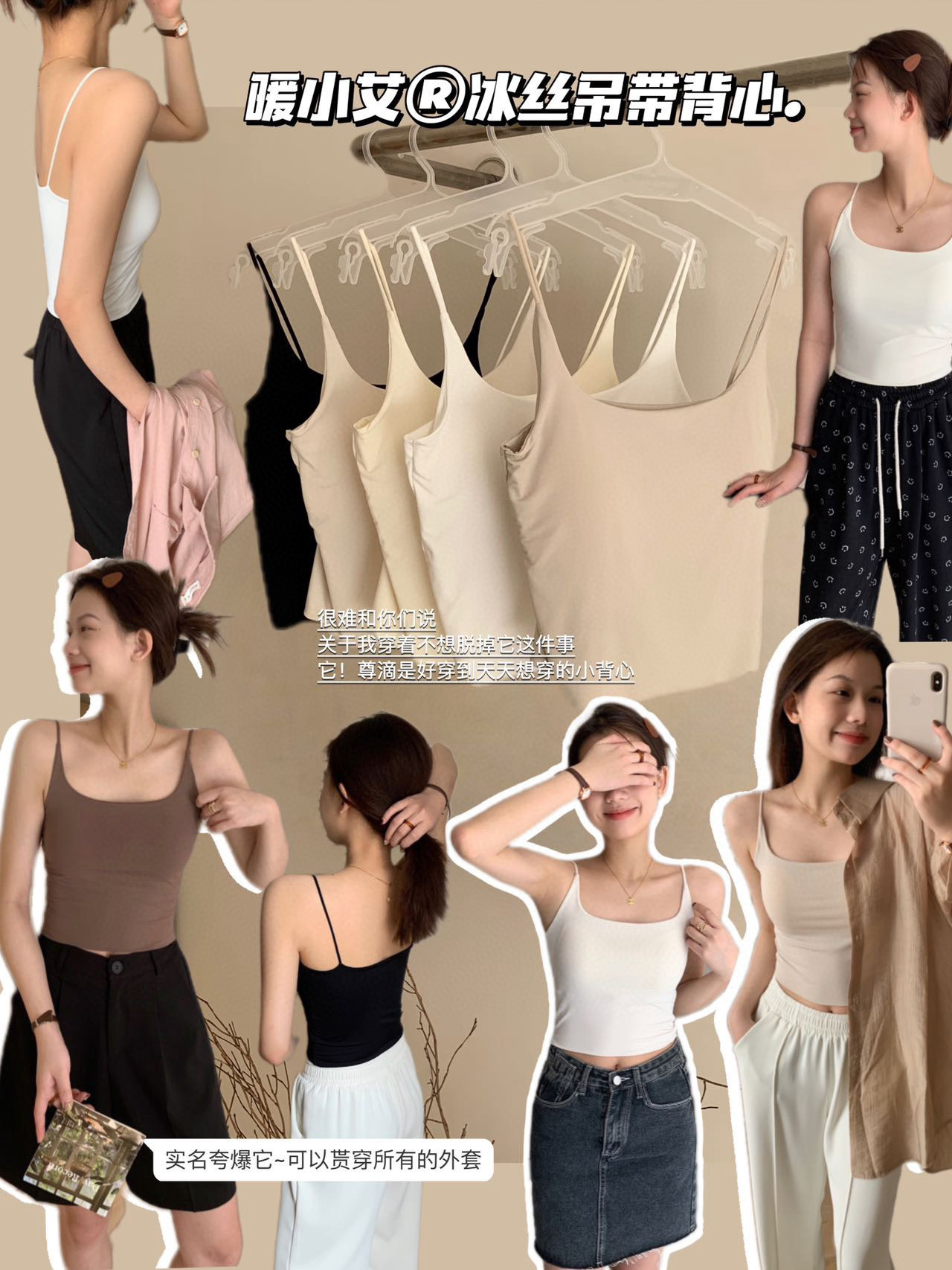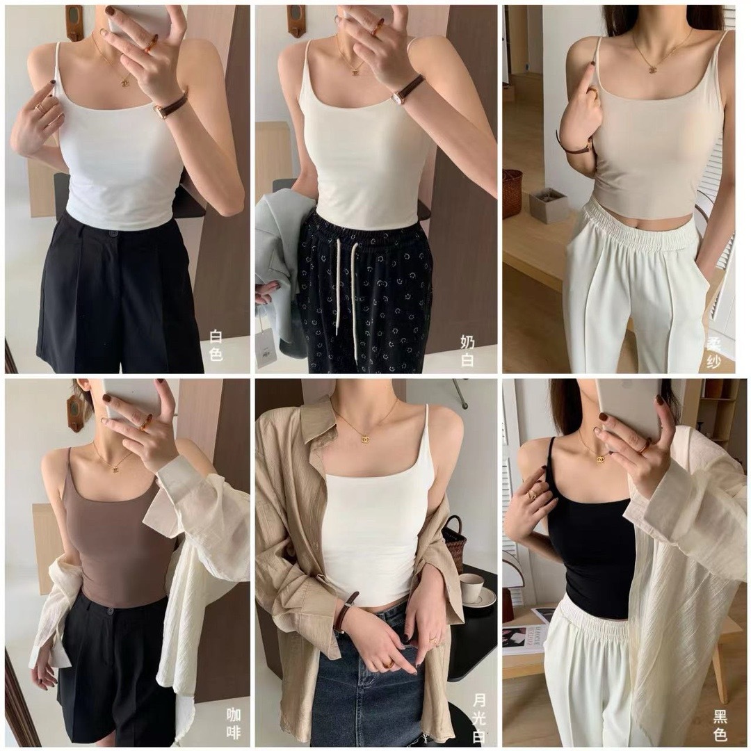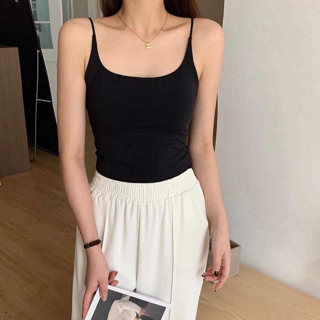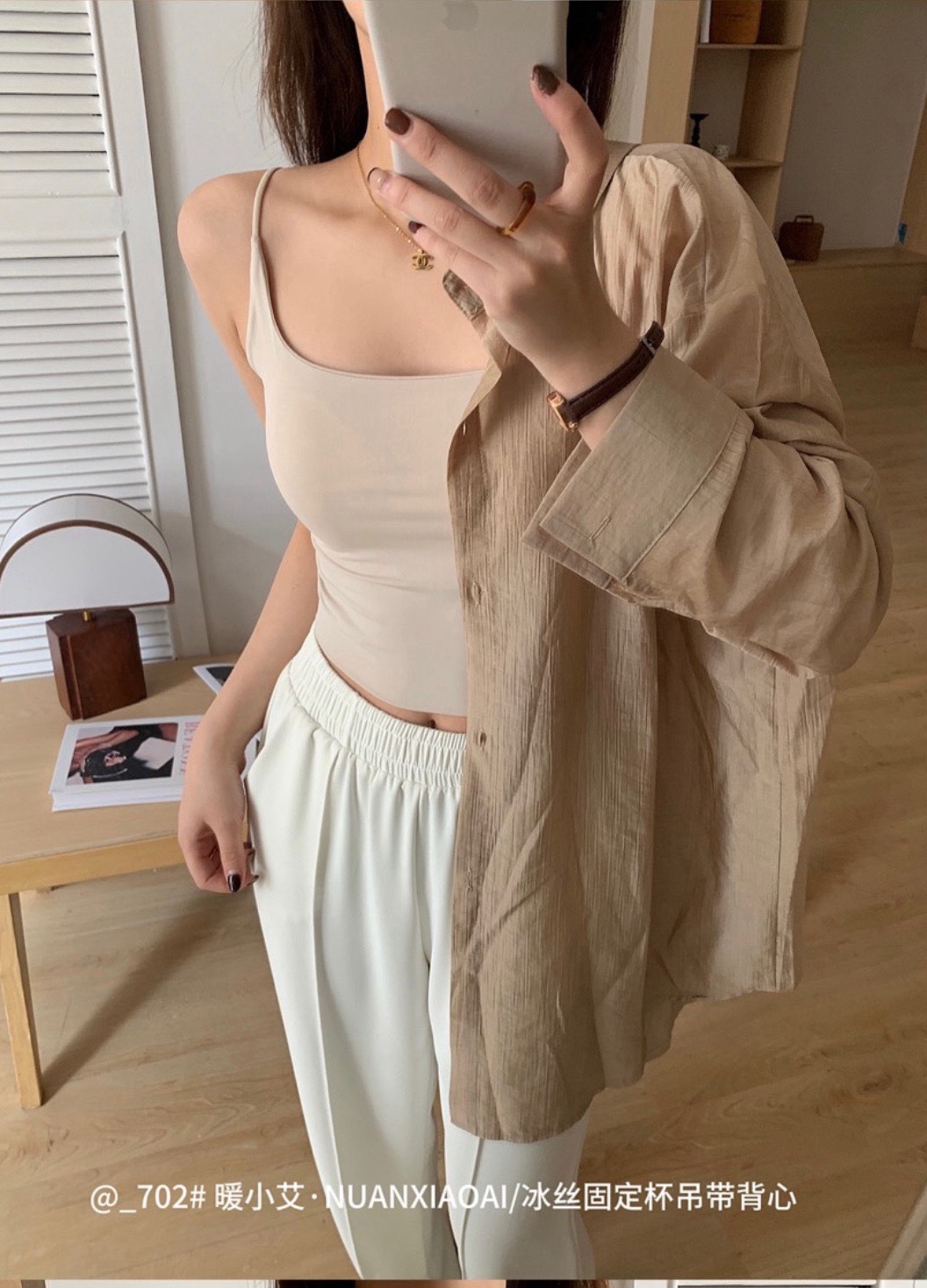 아이스 실크 고정 컵 카미 솔 여자 여름 슬림 핏 슬림 핏 가슴 패드 솔리드 컬러 올 매치 작은 조끼 병아리 민소매스토어 가기