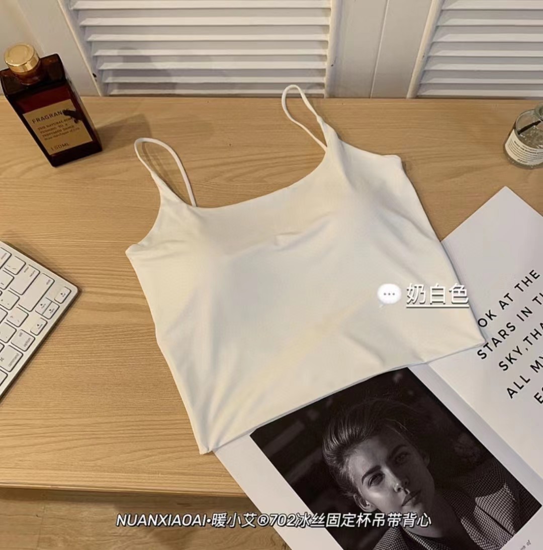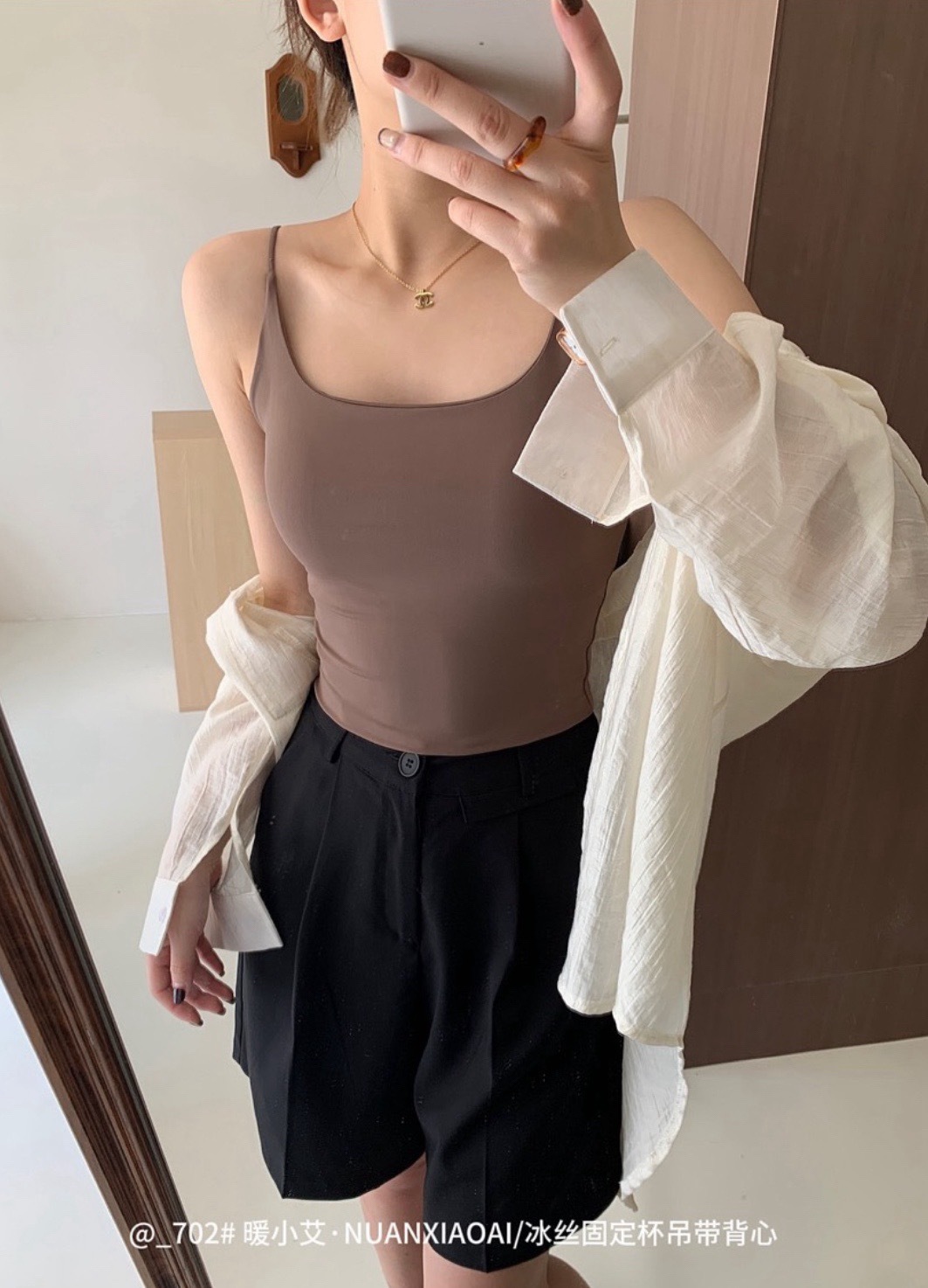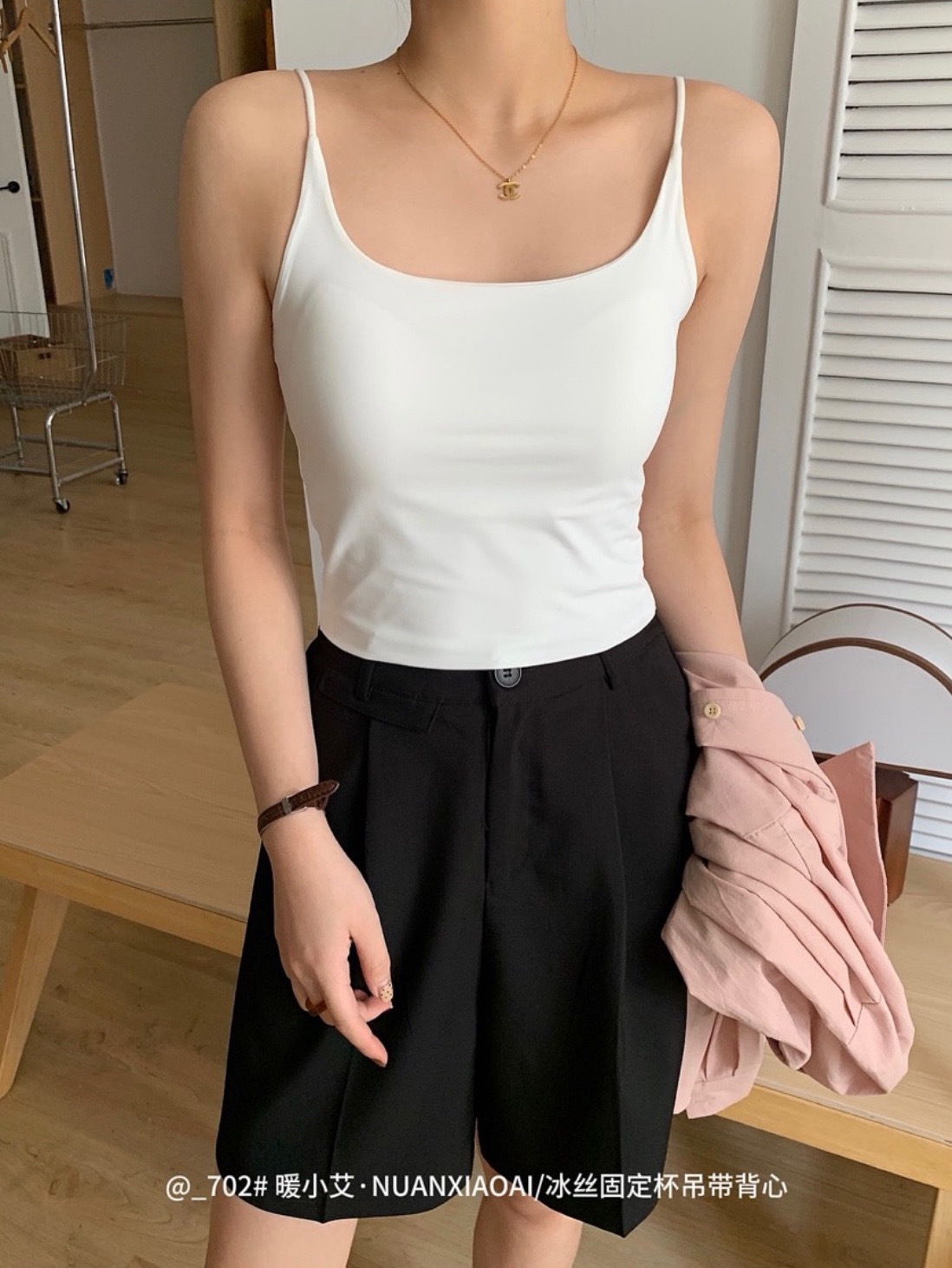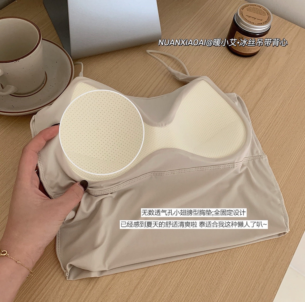 아이스 실크 고정 컵 카미 솔 여자 여름 슬림 핏 슬림 핏 가슴 패드 솔리드 컬러 올 매치 작은 조끼 병아리 민소매