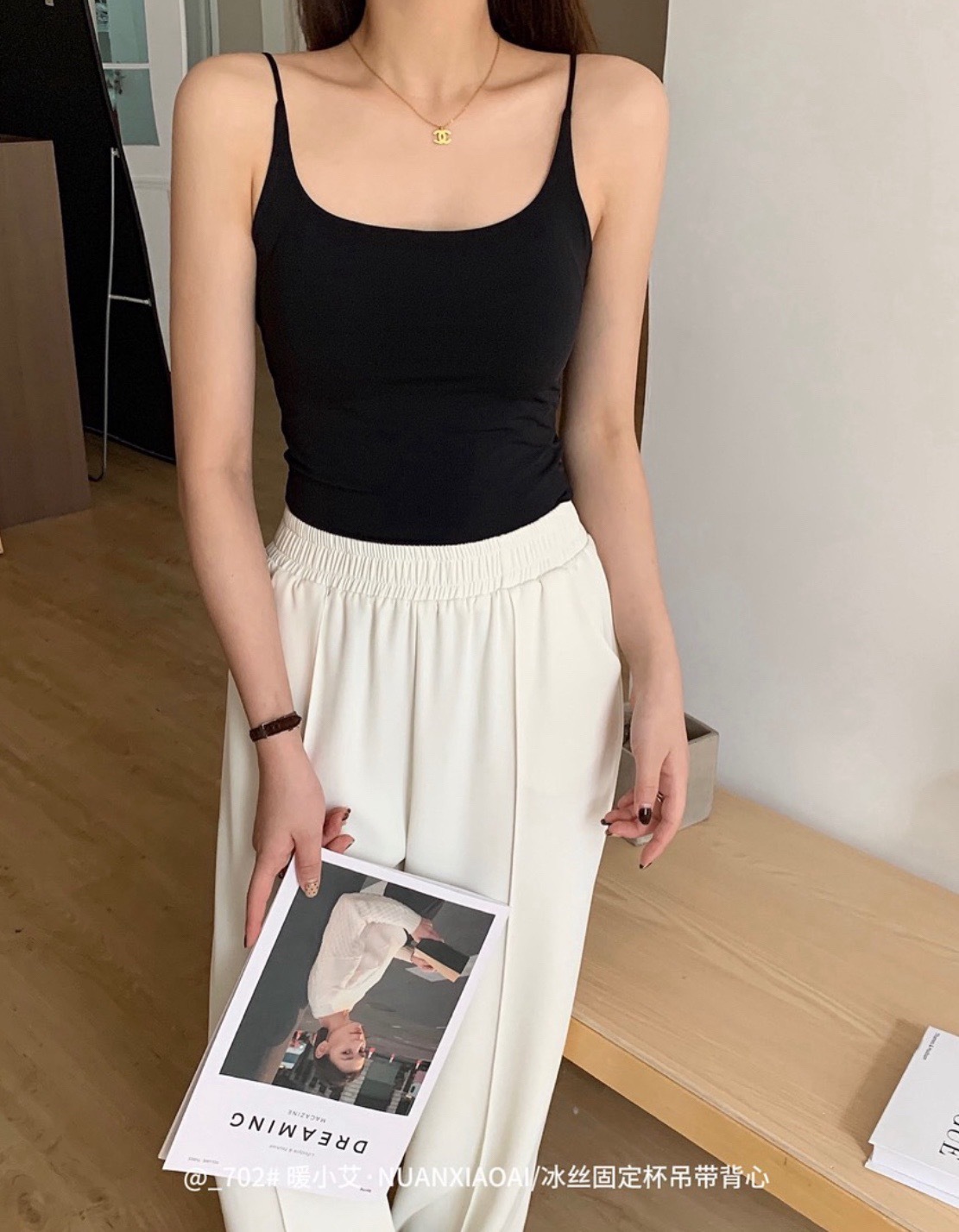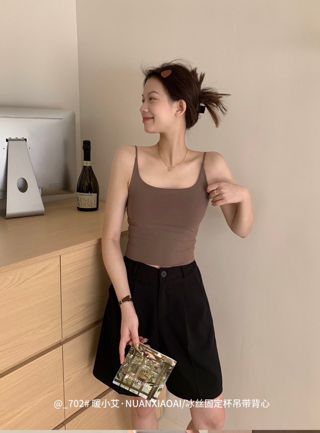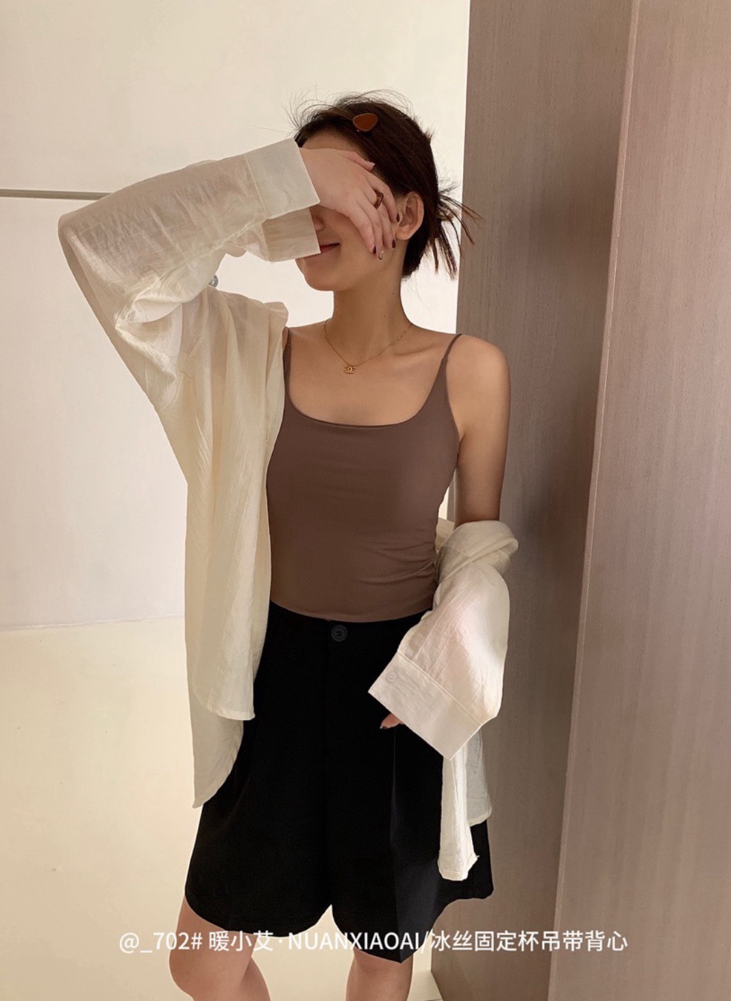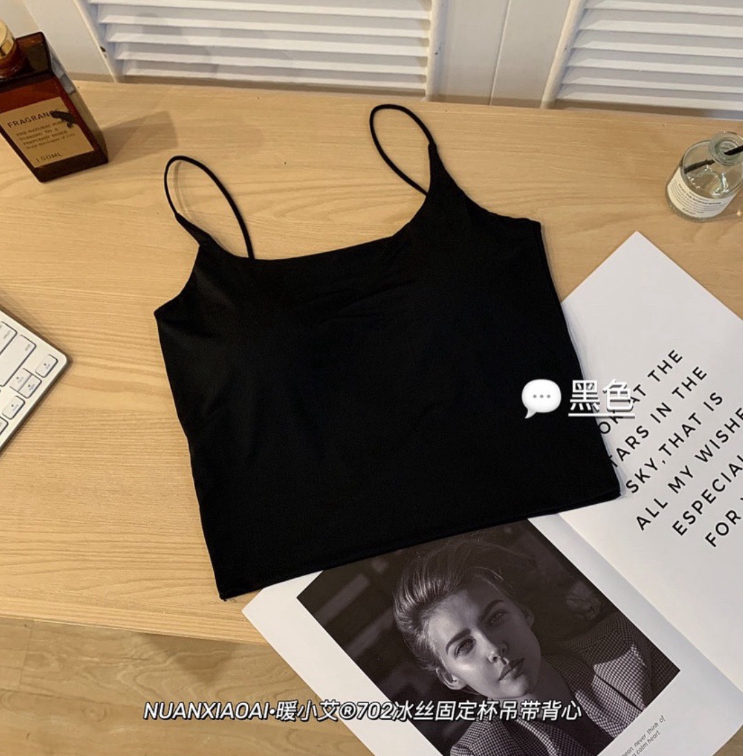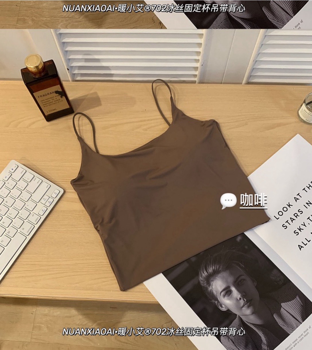아이스 실크 고정 컵 카미 솔 여자 여름 슬림 핏 슬림 핏 가슴 패드 솔리드 컬러 올 매치 작은 조끼 병아리 민소매