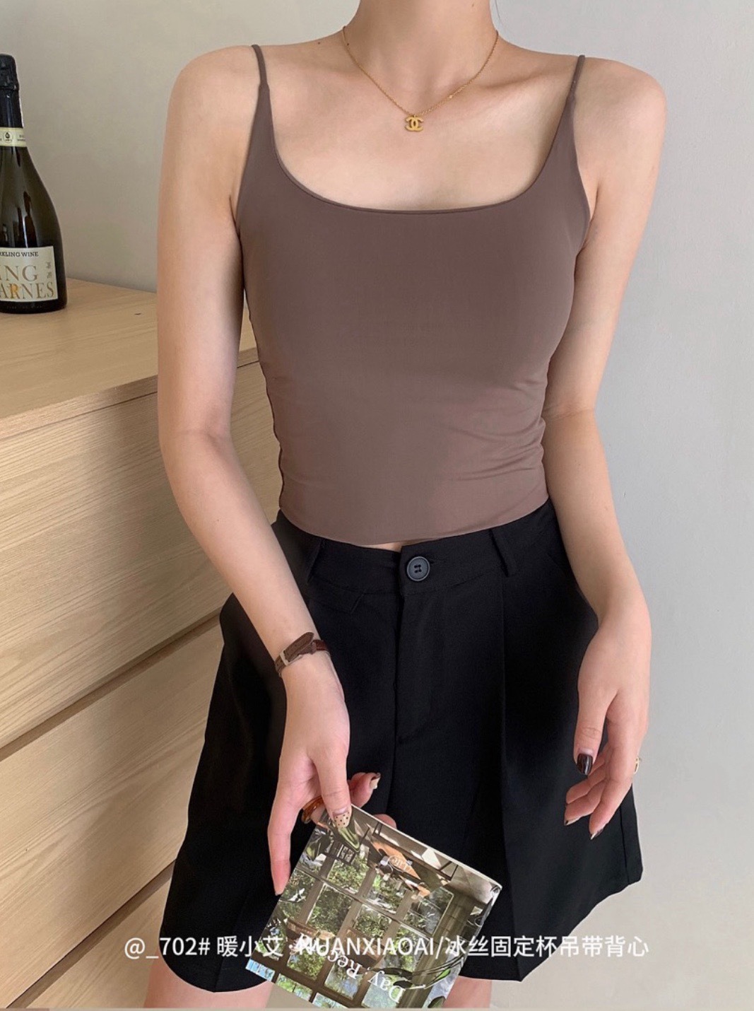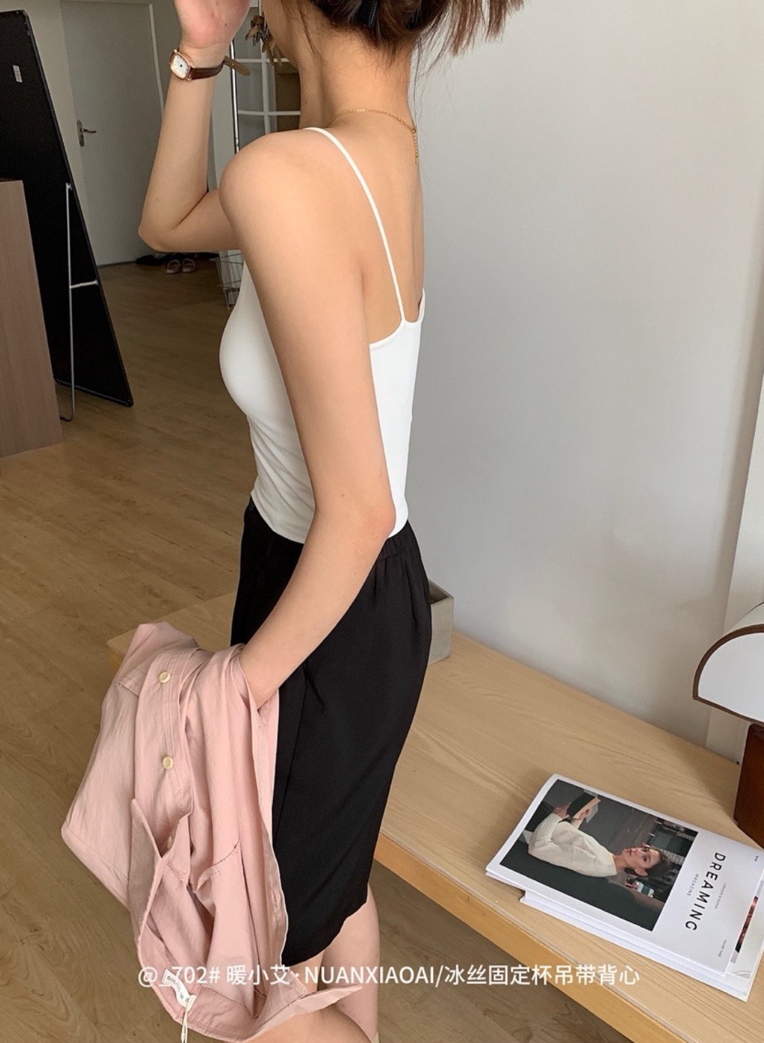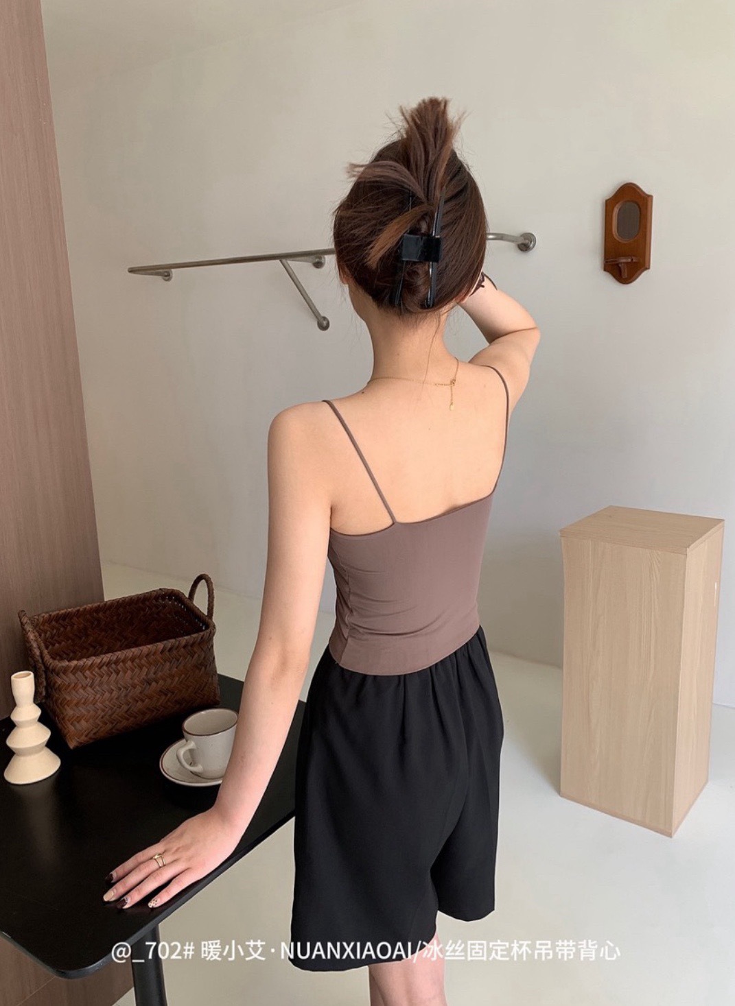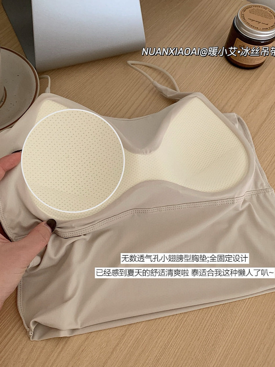 아이스 실크 고정 컵 카미 솔 여자 여름 슬림 핏 슬림 핏 가슴 패드 솔리드 컬러 올 매치 작은 조끼 병아리 민소매