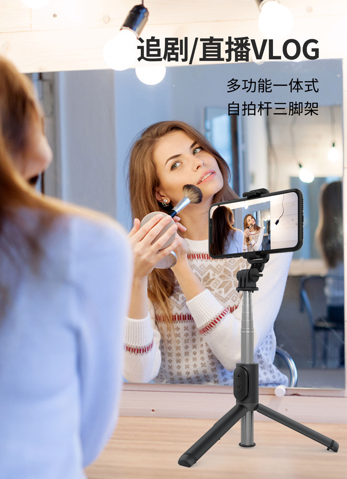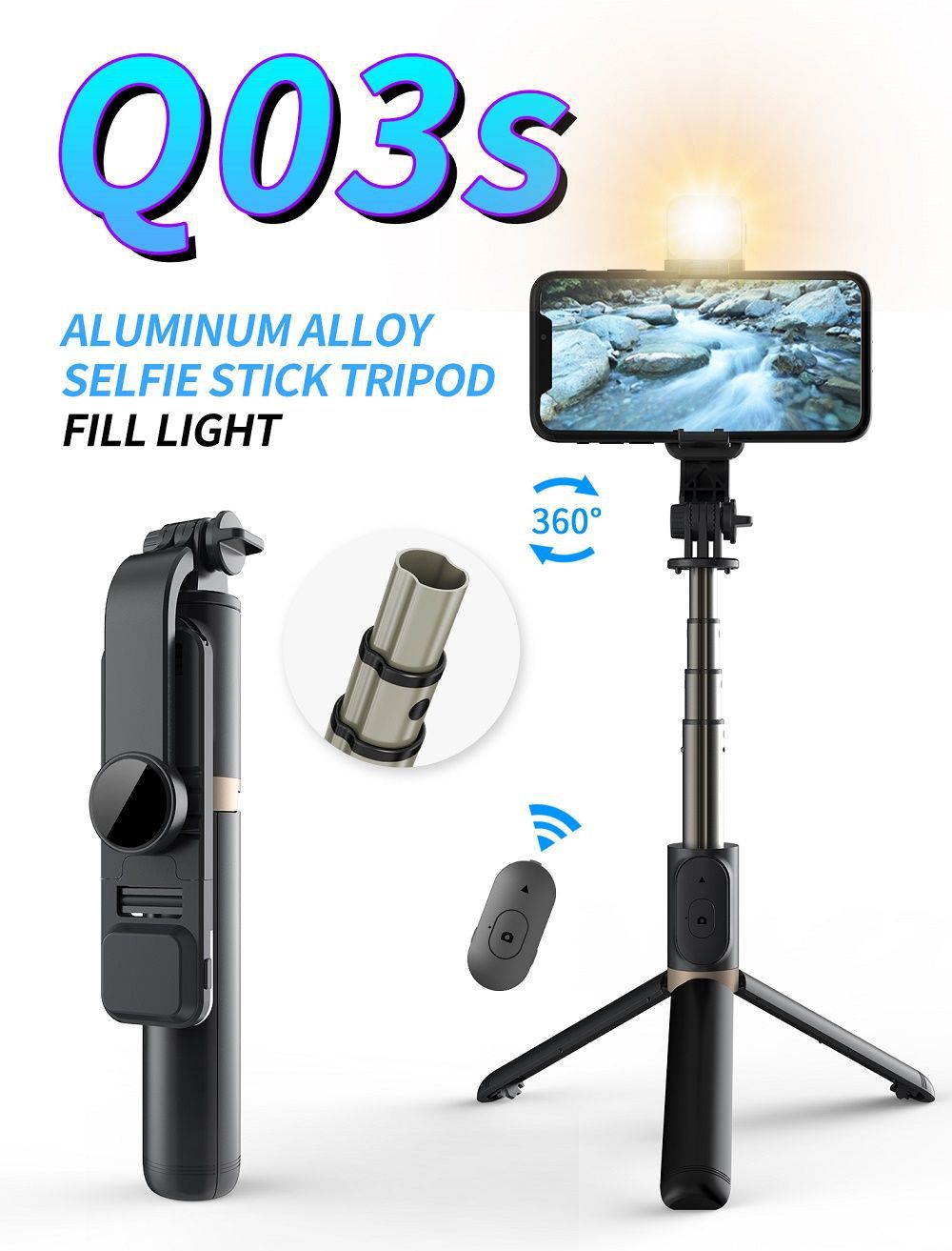 알루미늄 합금 통합 셀카 봉 손떨림 방지 개폐식 휴대 전화 촬영 브래킷 라이브 방송 블루투스 셀카 봉 삼각대