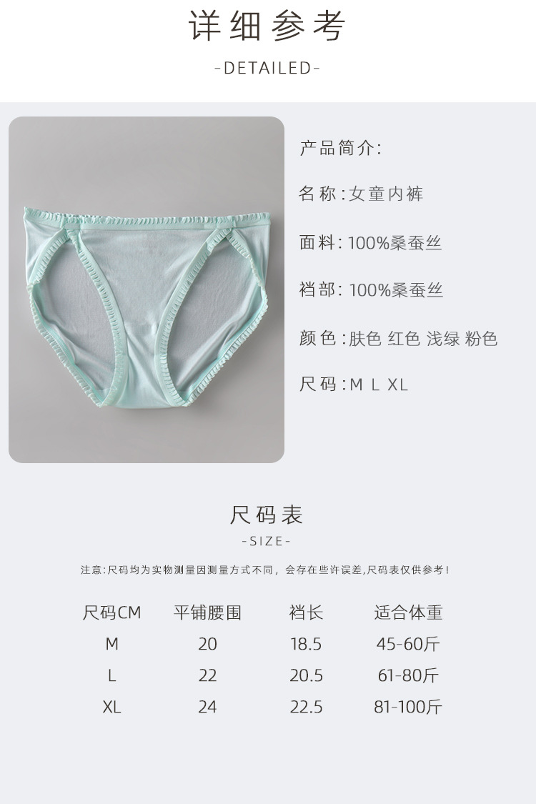하이 퀄리티 100% 뽕나무 실크 브리프 소녀를위한 귀여운 레이스 편안한 통기성 실크 아기 중간 허리 속옷스토어 가기