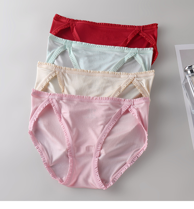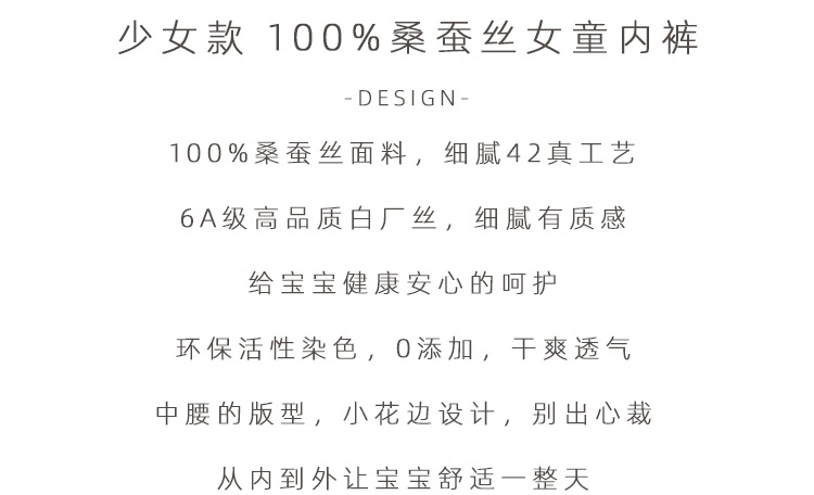 하이 퀄리티 100% 뽕나무 실크 브리프 소녀를위한 귀여운 레이스 편안한 통기성 실크 아기 중간 허리 속옷