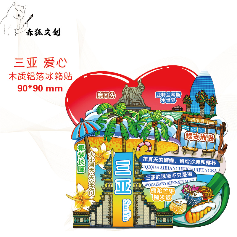 국내 트렌디한 창의적인 도시 목재 냉장고 자석 여행용 자석 스티커 도매 만화 네자 해양을 뒤덮는 자극의 해양을 뒤덮는 자극(네자) 기념 자석 스티커