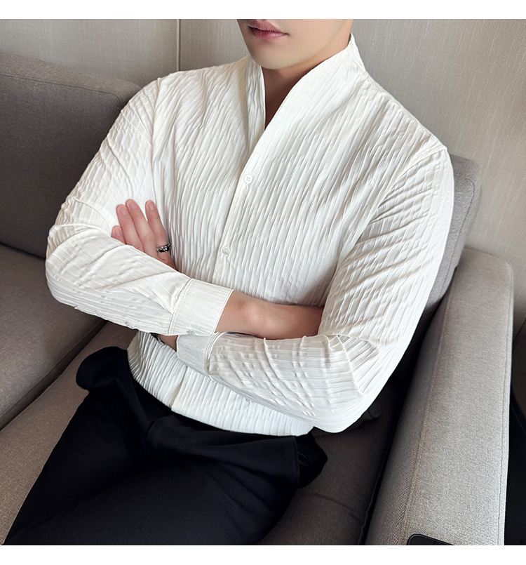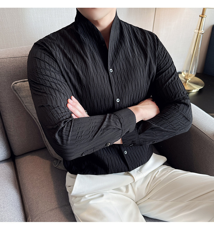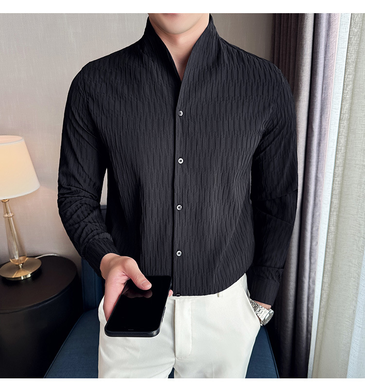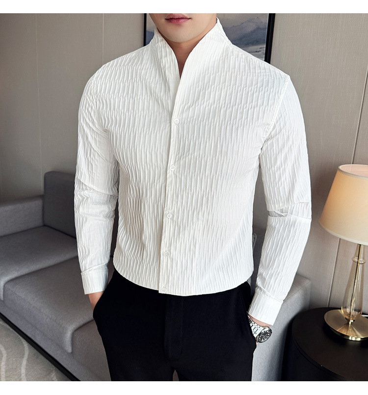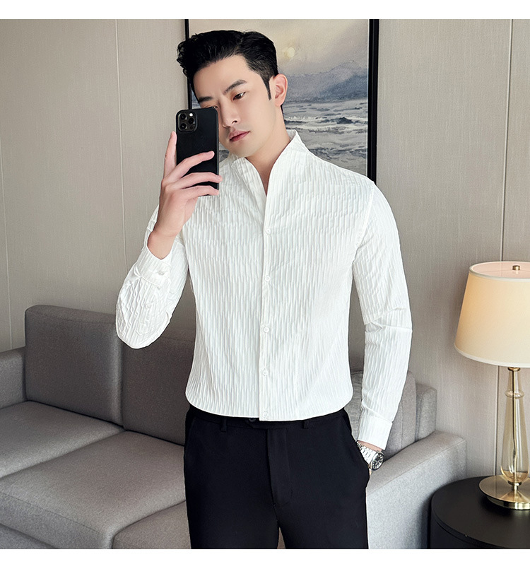 새로운 중국 스타일 수직 칼라 셔츠 남자의 긴 소매 높은 수준의 슬림-새로운 적합 중국 스타일 남자의 유행 중국 스타일 세트 셔츠 봄