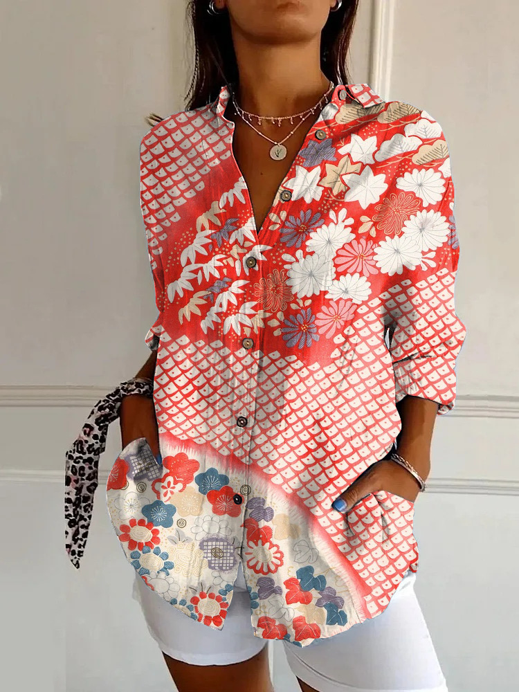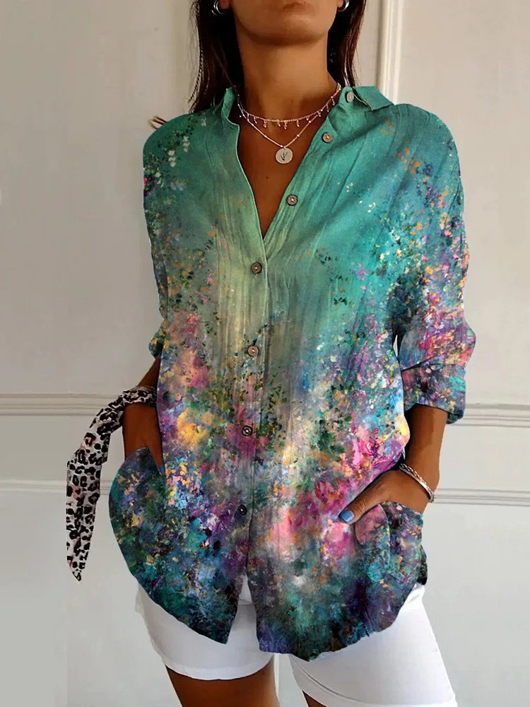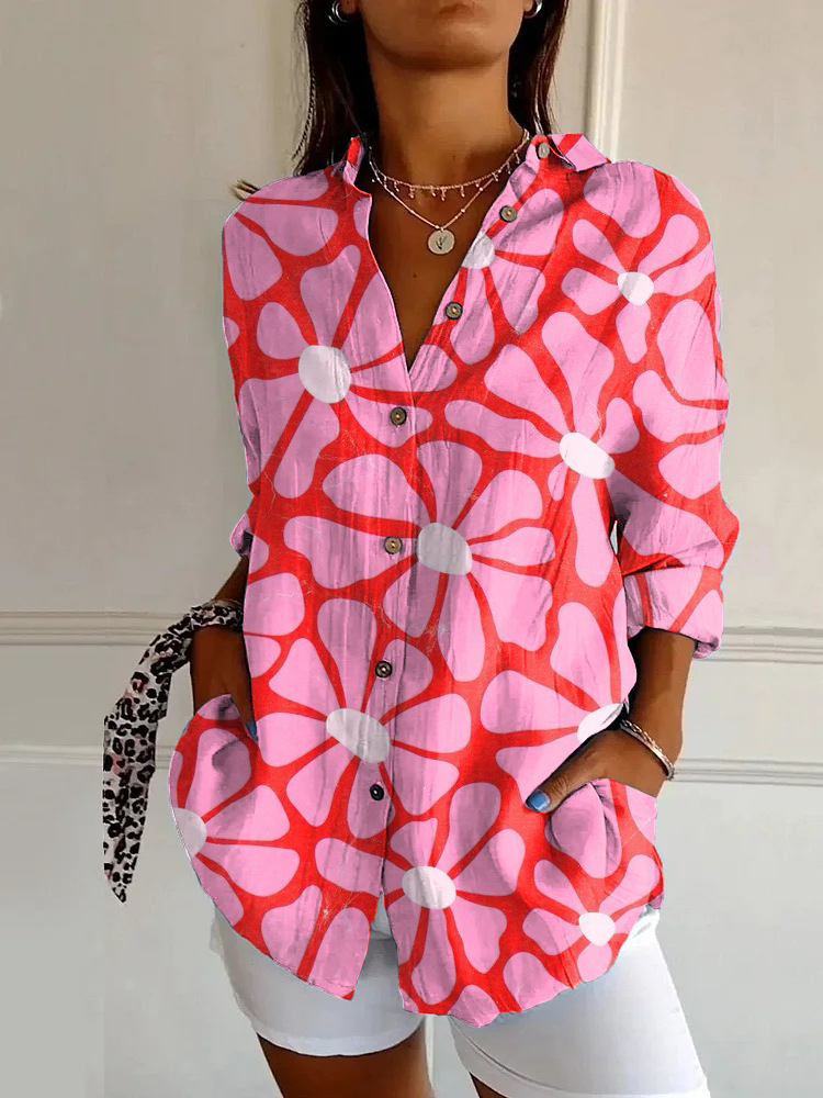 독립 역 폭발 여성 여름 셔츠 새로운 유럽과 미국의 트렌드 7 점 소매 셔츠 꽃 패턴 인쇄 3D 셔츠스토어 가기