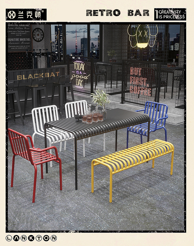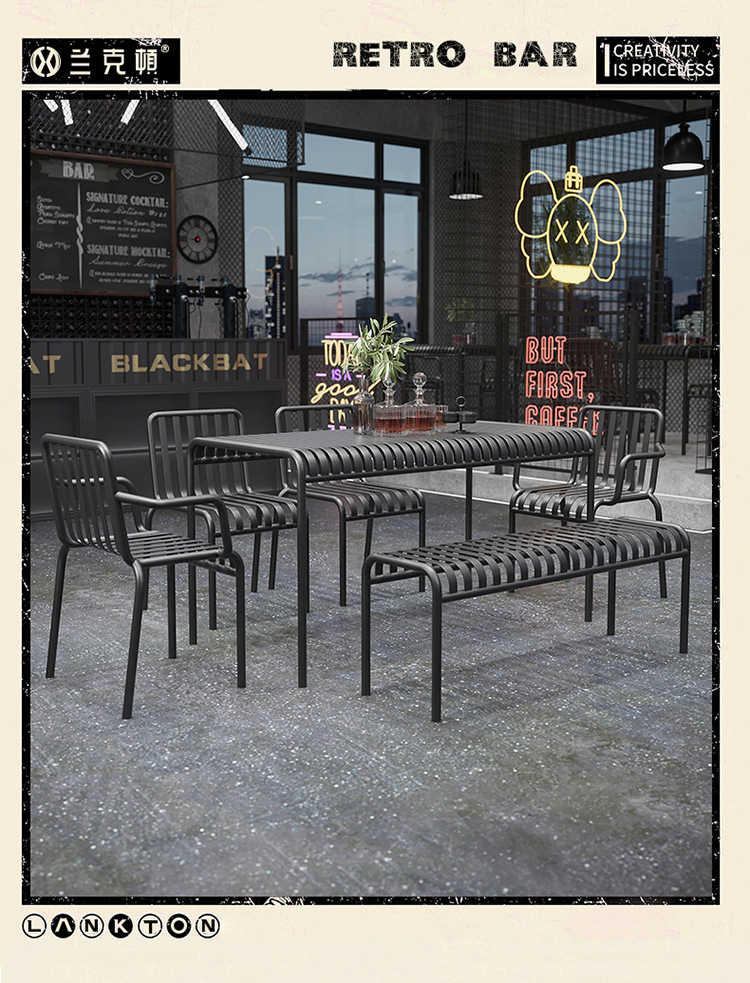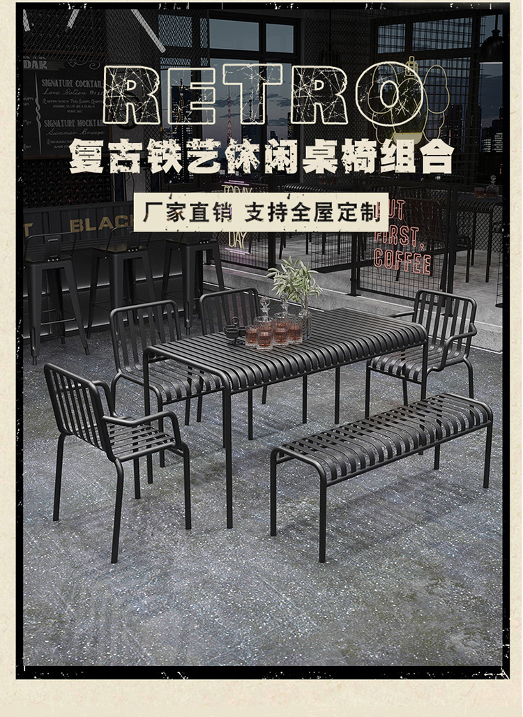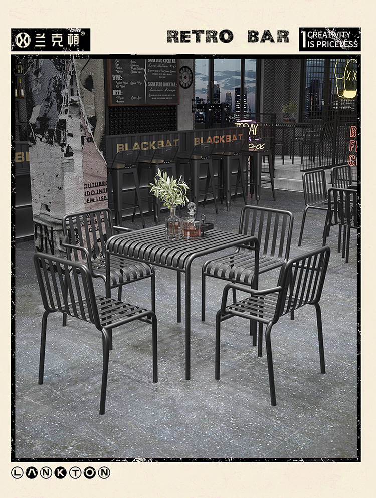 야외 철 테이블과 의자 캐주얼 안뜰 세트 야외 테이블 현대 간단한 테라스 차 테이블 발코니 식탁 및 의자 조합스토어 가기