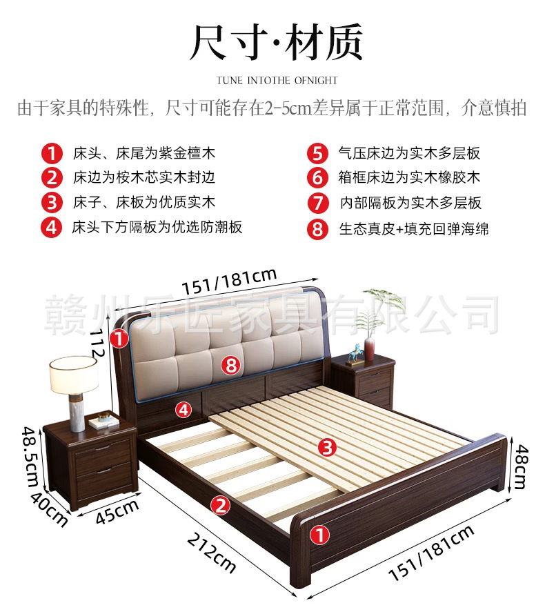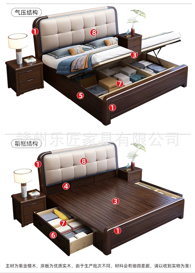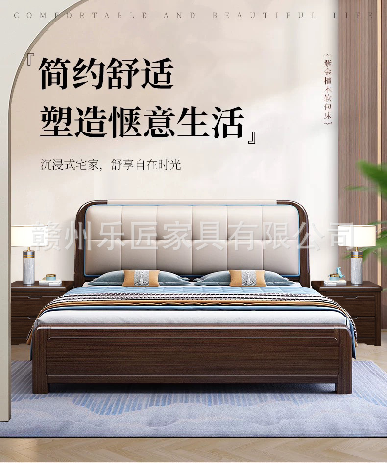 보라색 황금 백단 새로운 중국 스타일 단단한 나무 침대 홈 침실 1.68m 더블 침대 공장 직접 저장 침대스토어 가기