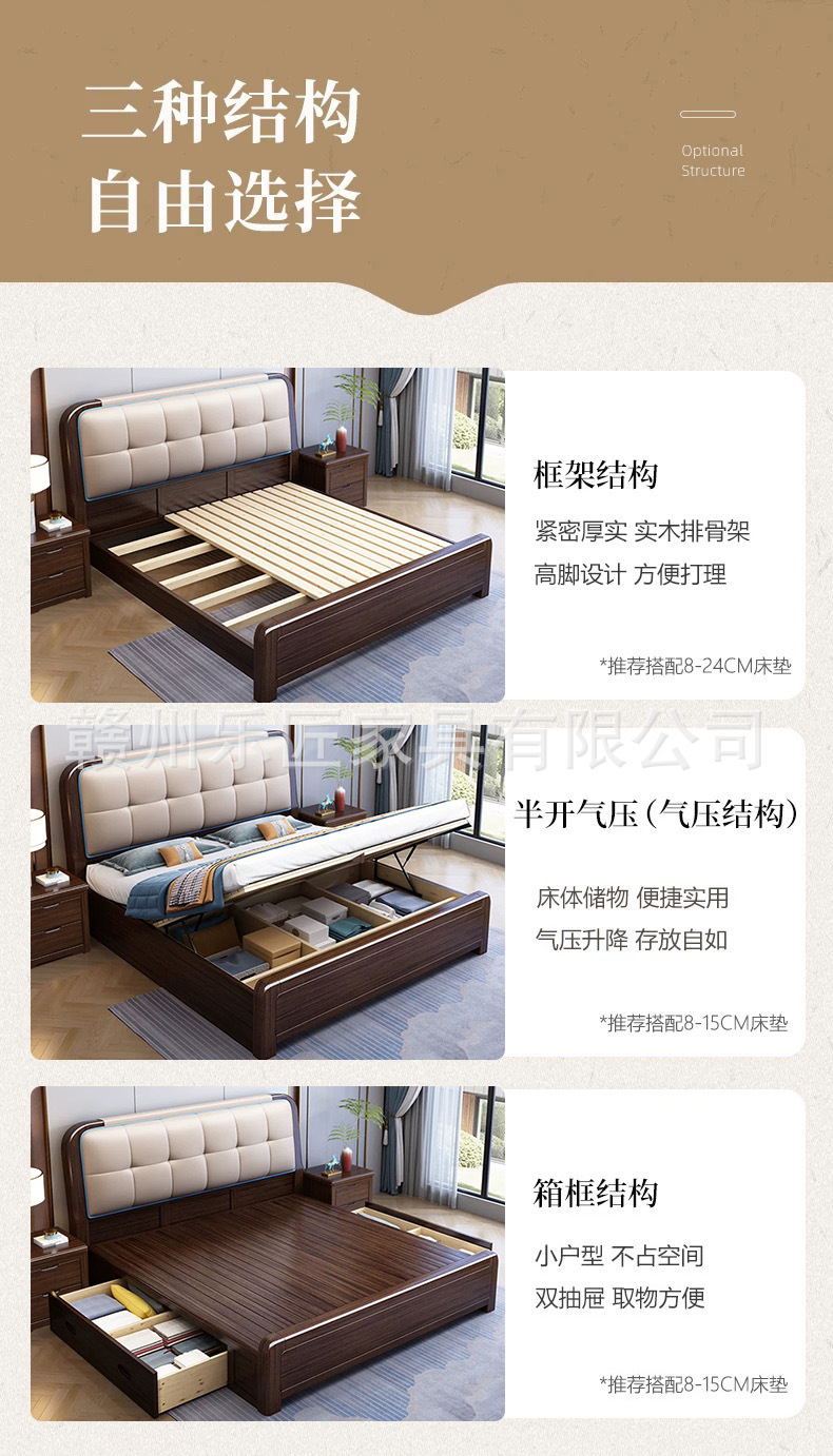 • 원목 침대 + 침대 옆 탁자 2개 + 10cm 3D 얼음 실크 겨울 및 여름 부드럽고 단단한 갈색 매트